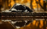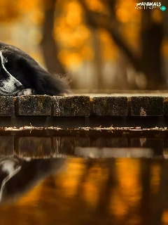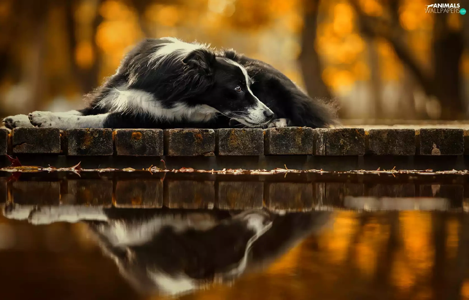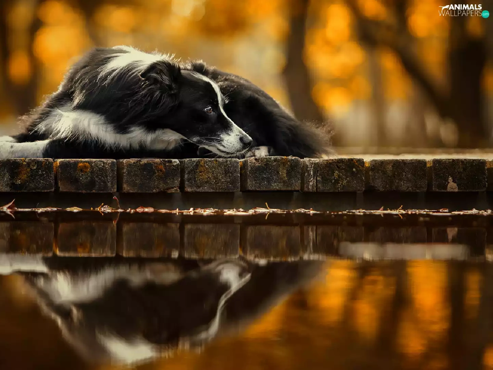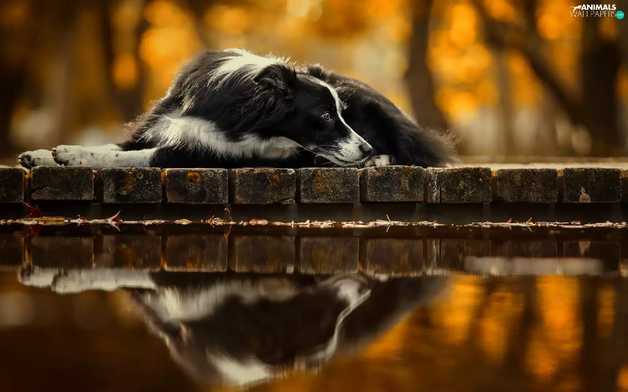 dog, lying, ledge, reflection, Border Collie, White and Black