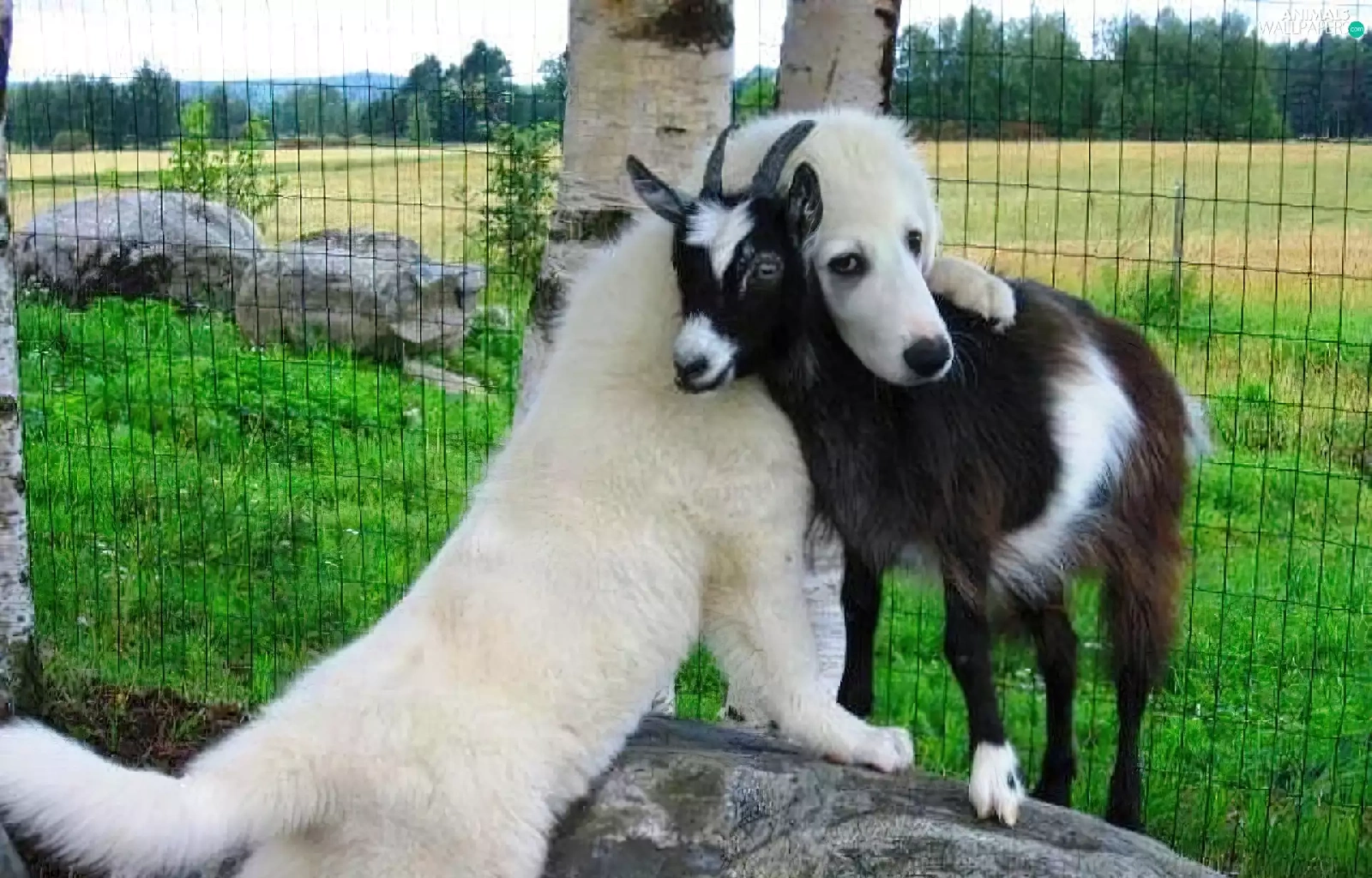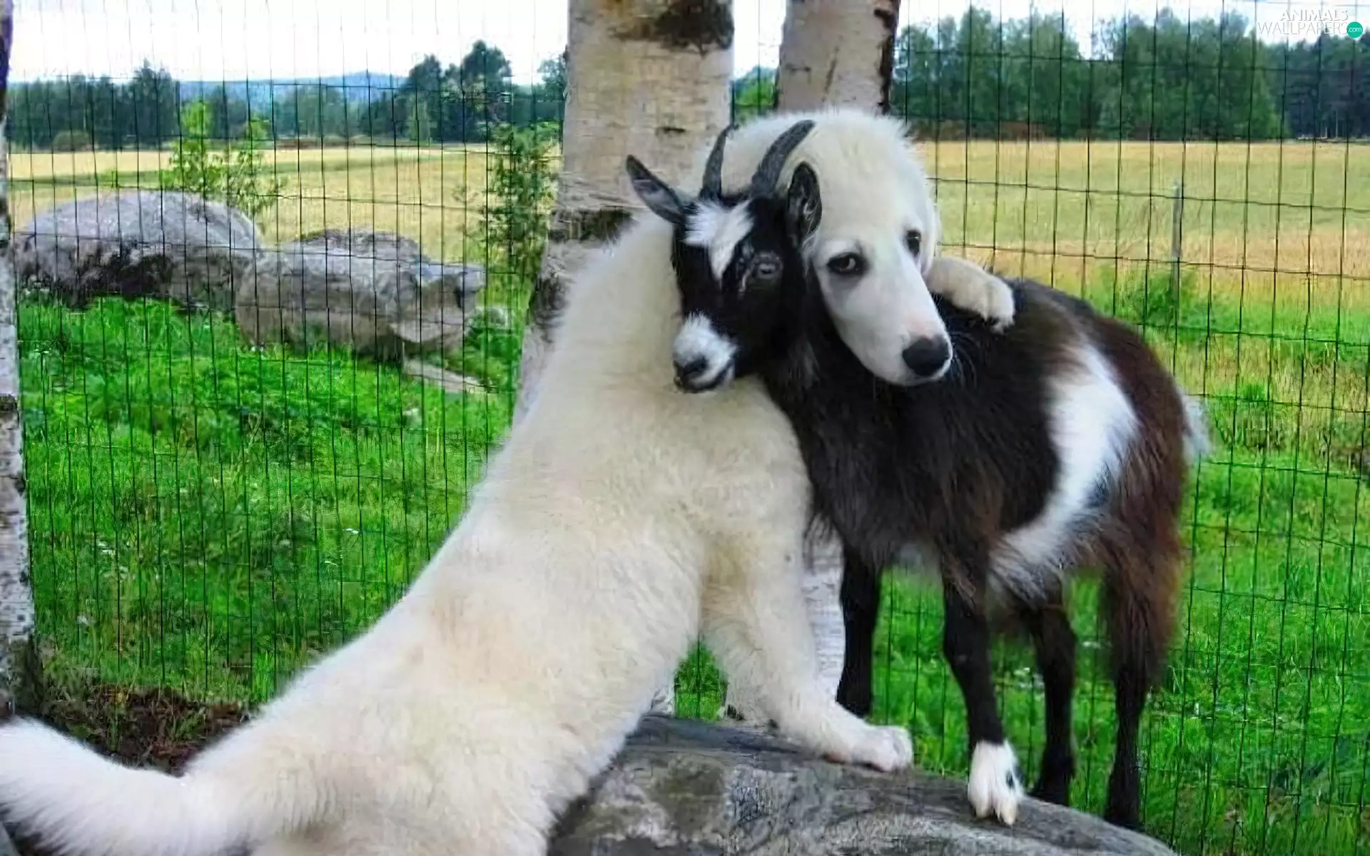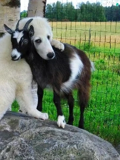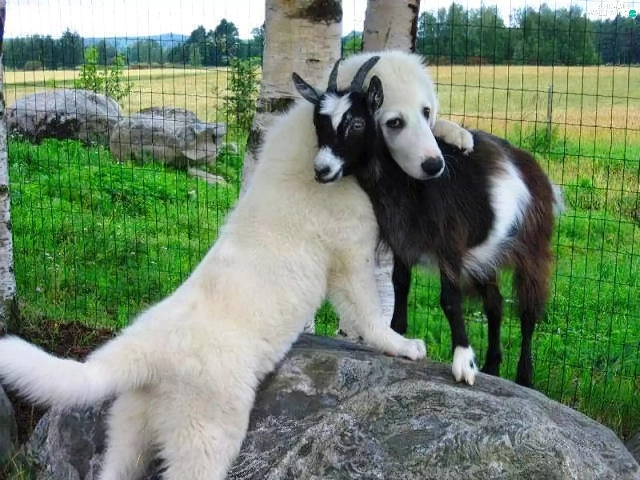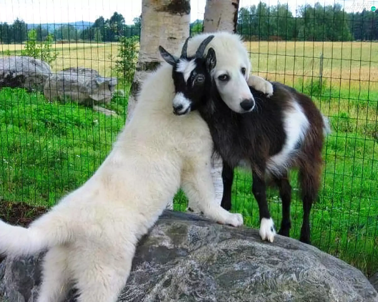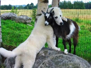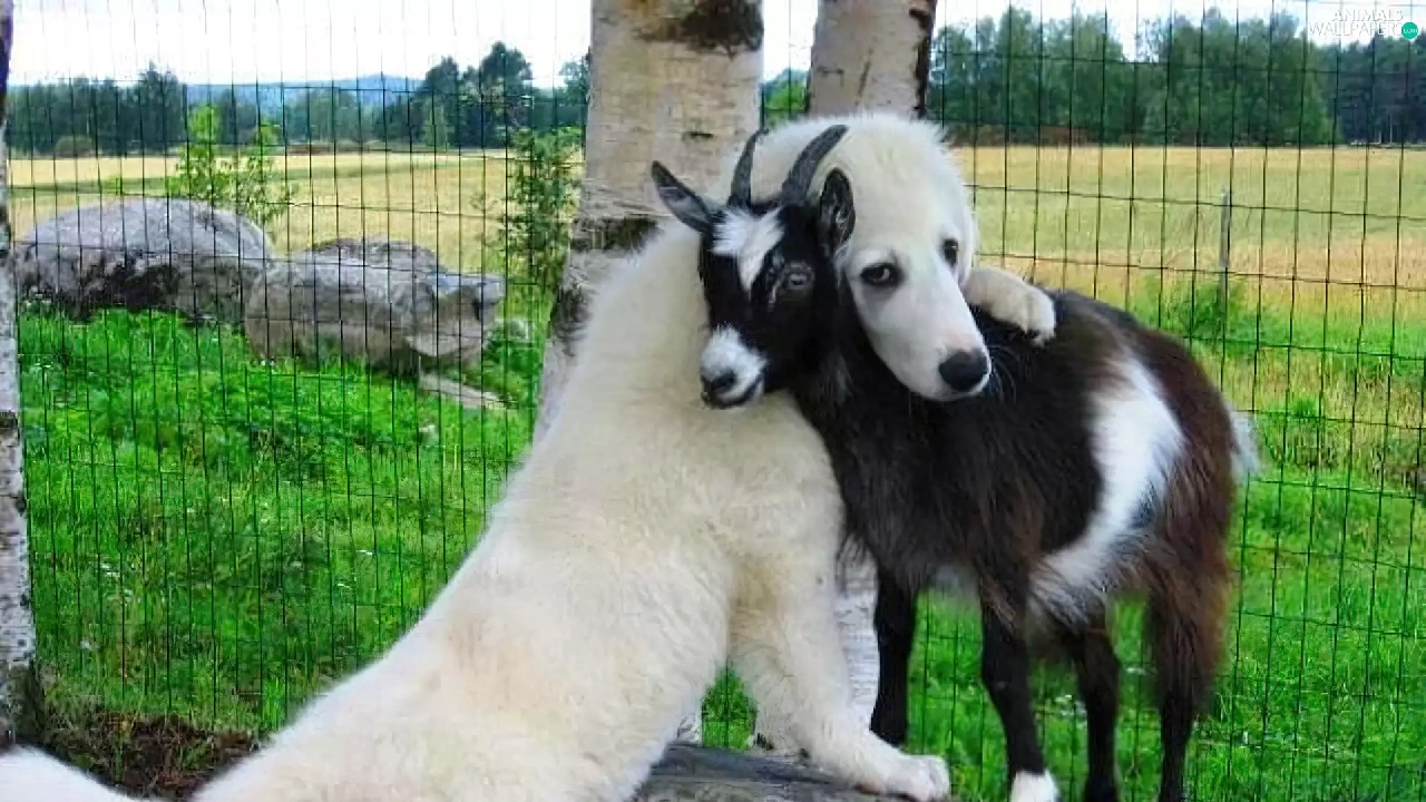 dog, goat, White