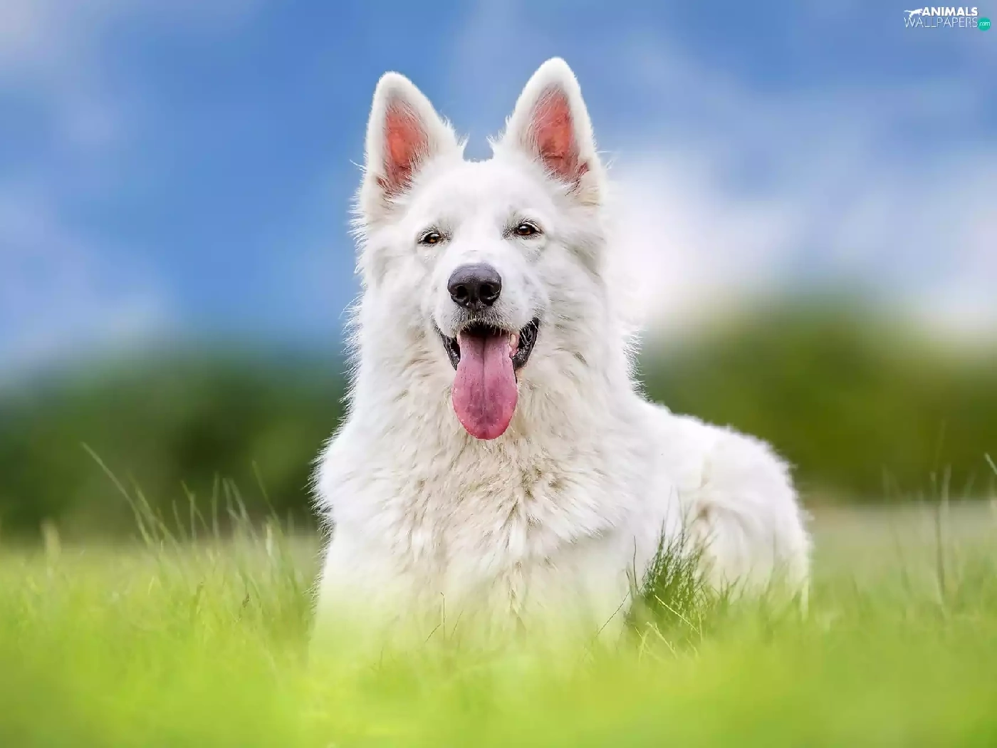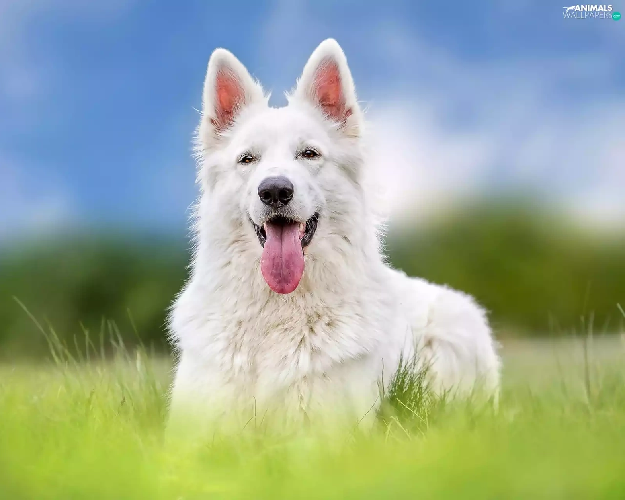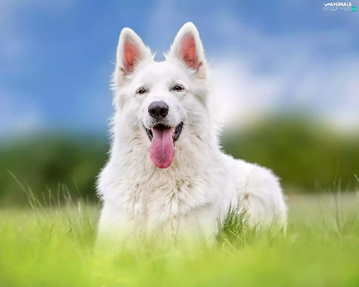 Meadow, grass, sheep-dog, Swiss, White