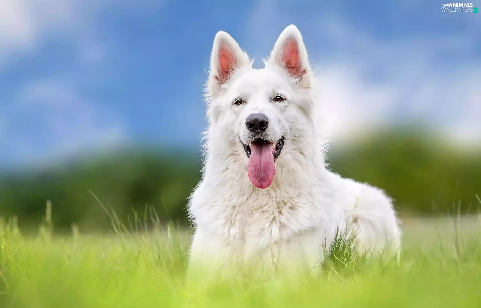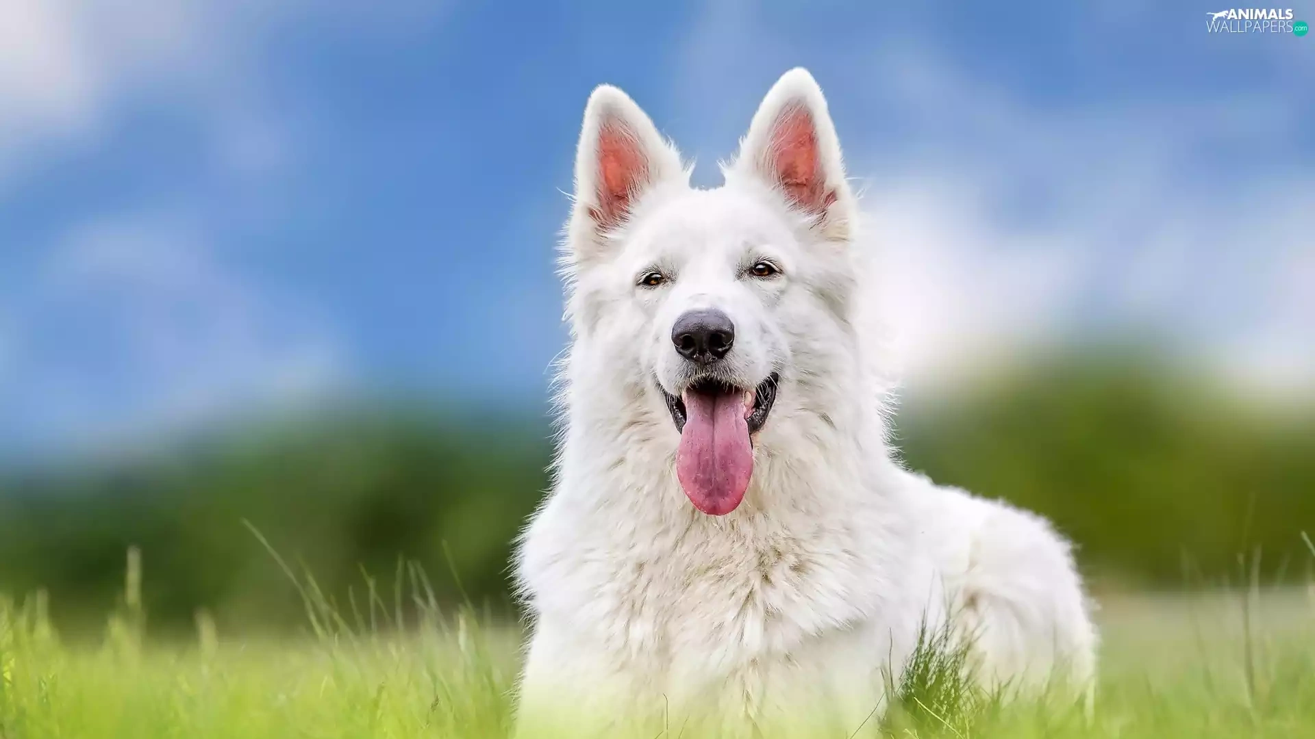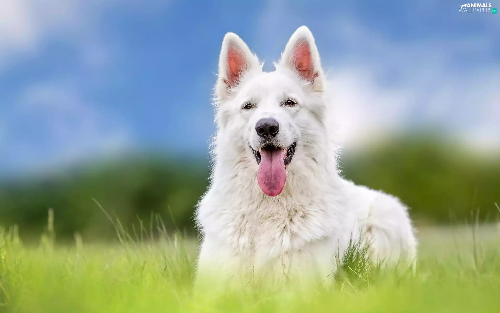 Meadow, grass, sheep-dog, Swiss, White