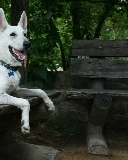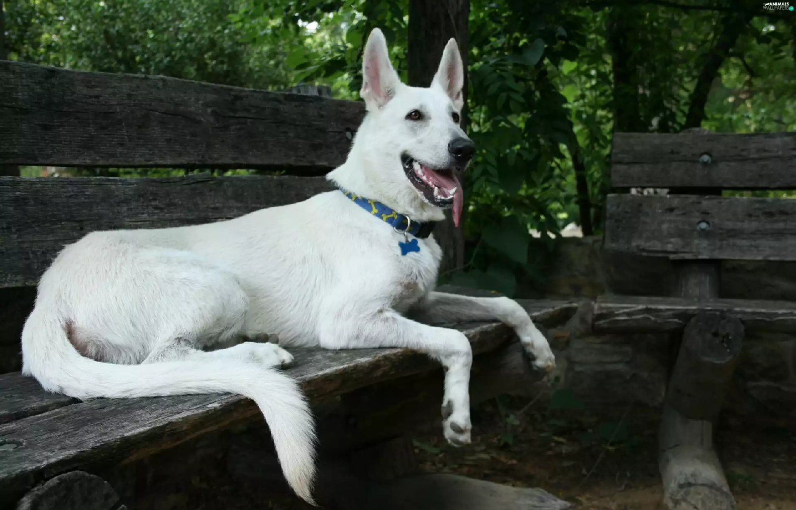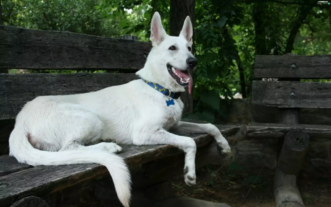 Wooden, Bench, sheep-dog, Swiss, White