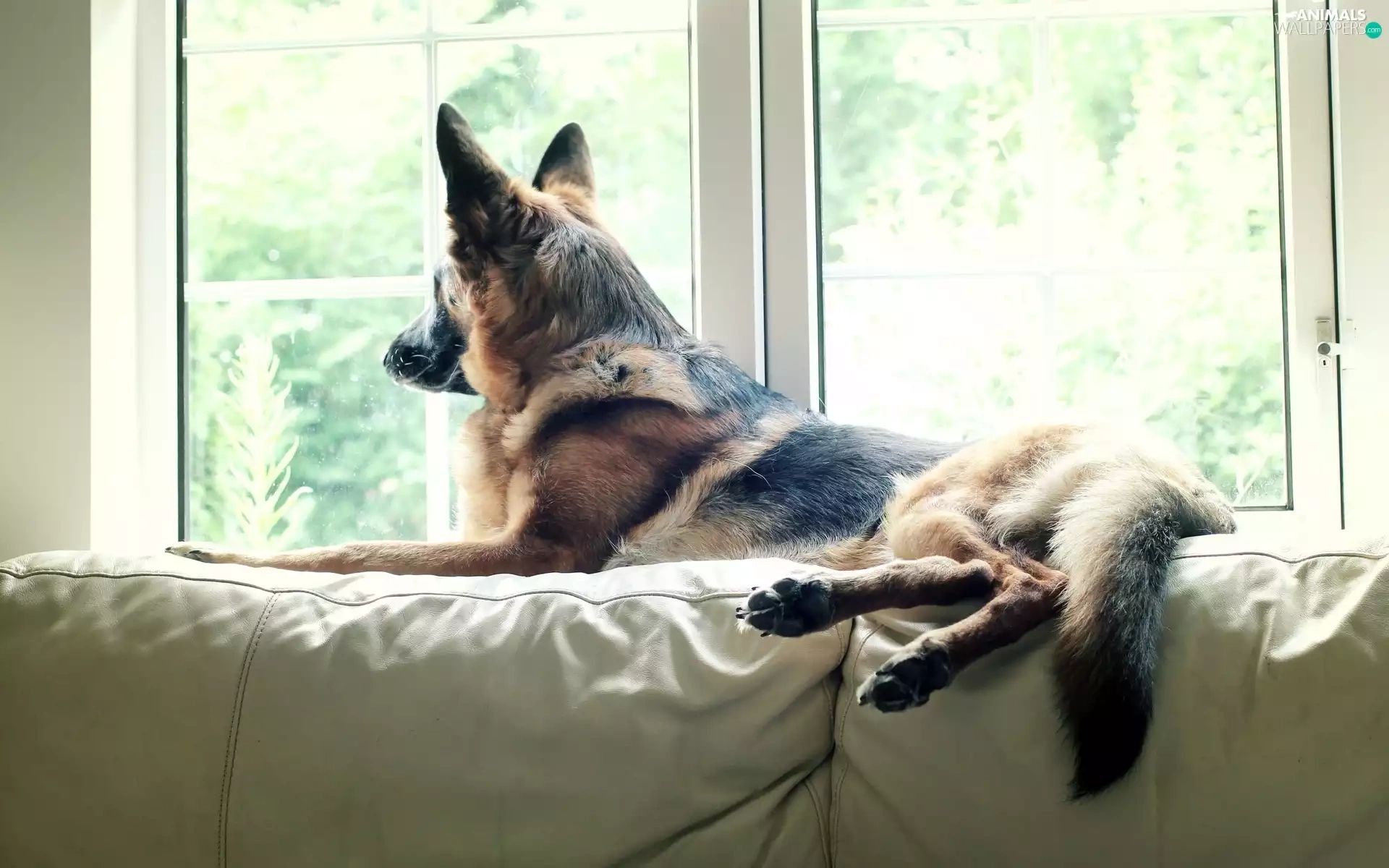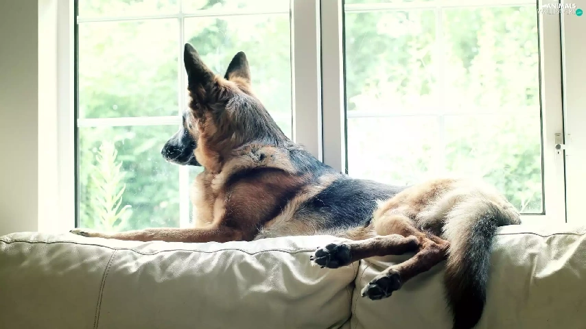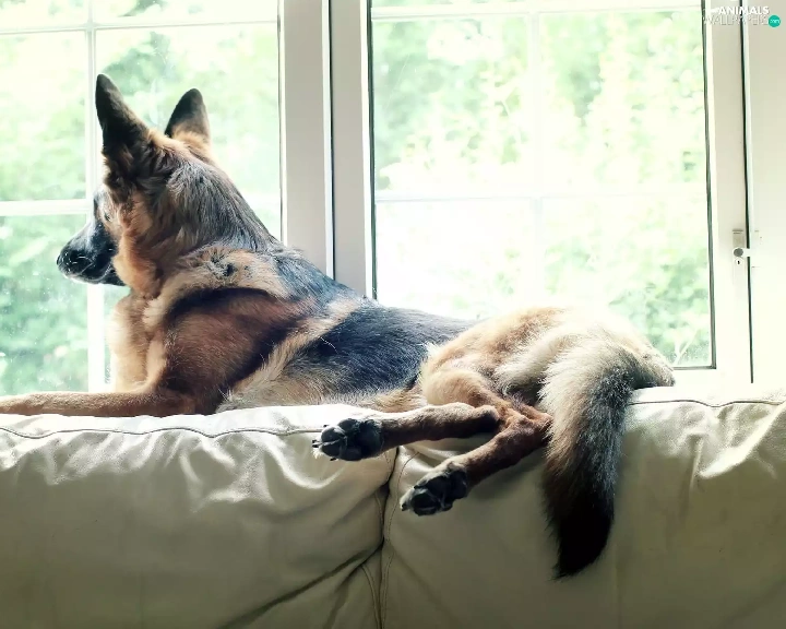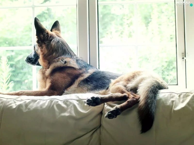 sheep-dog, Window, Sofa, german