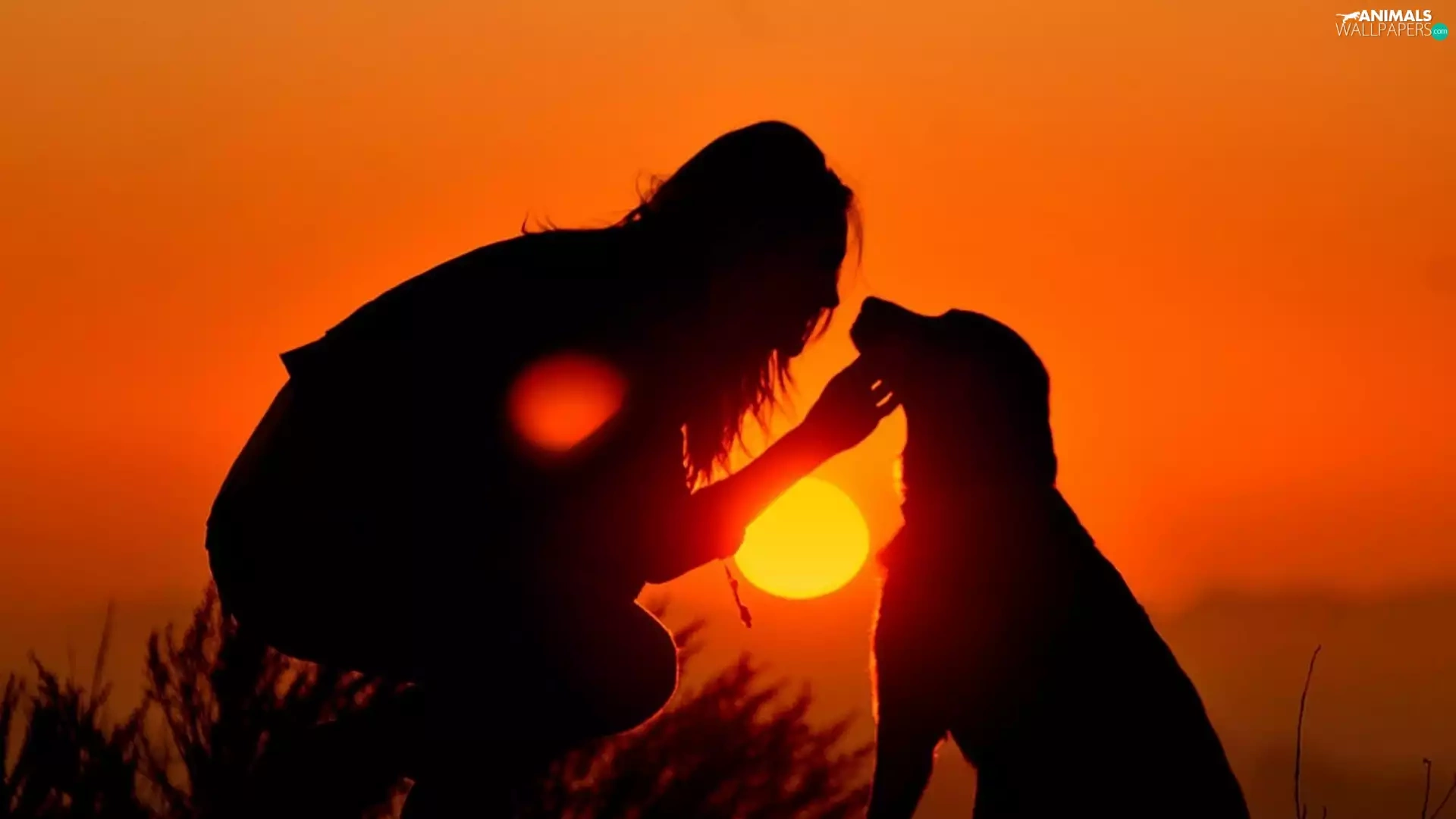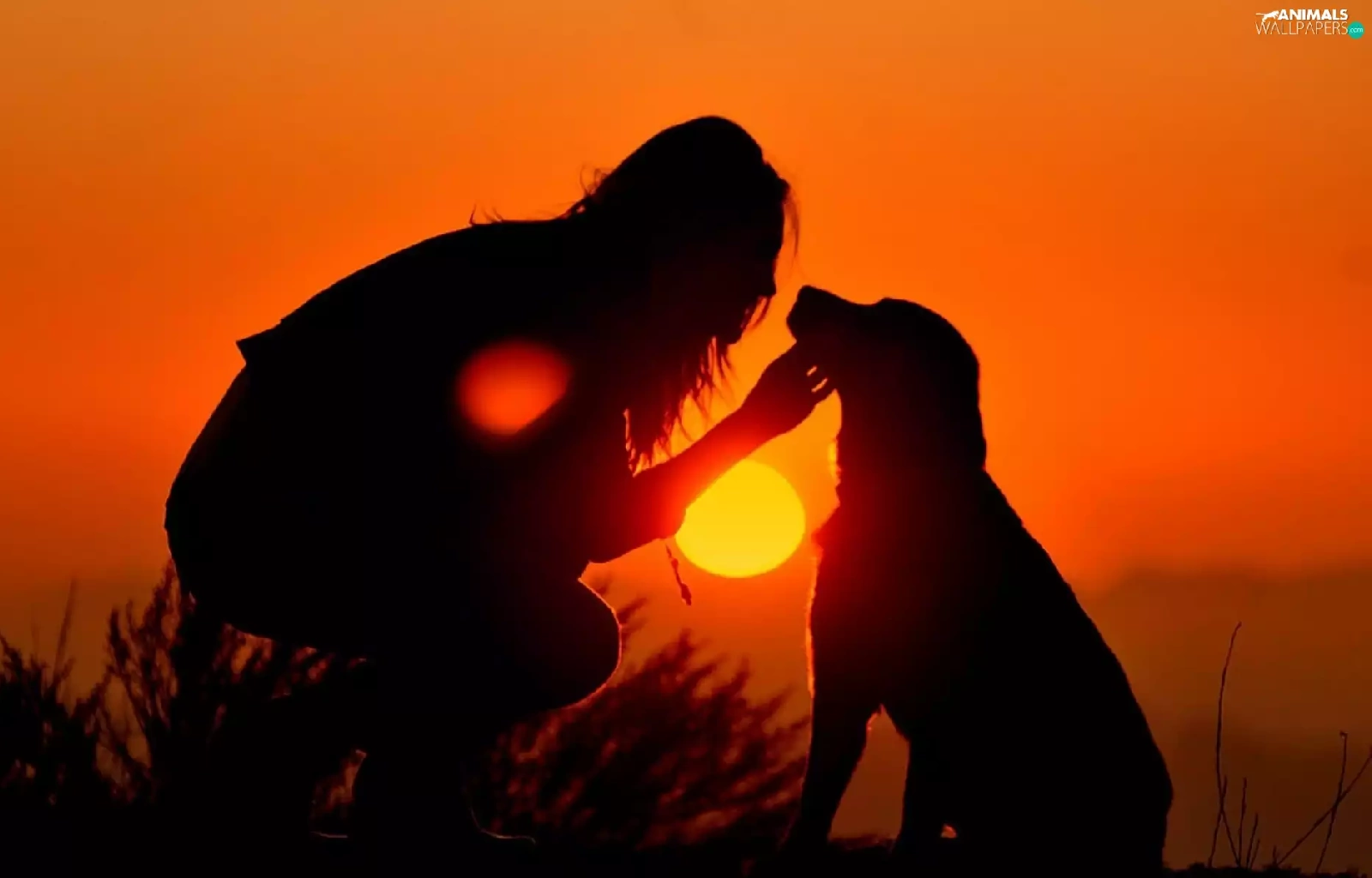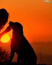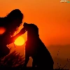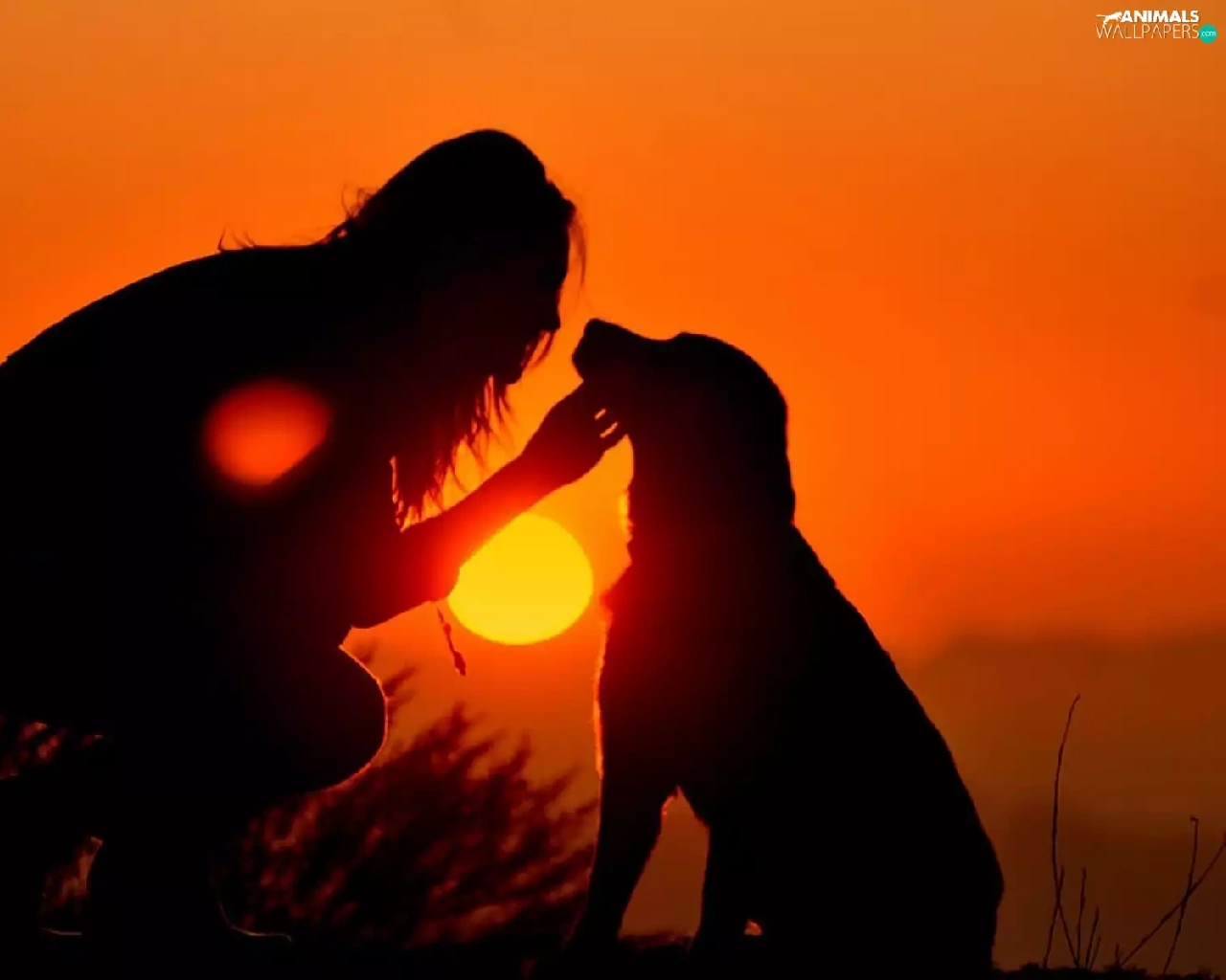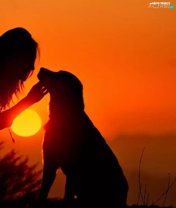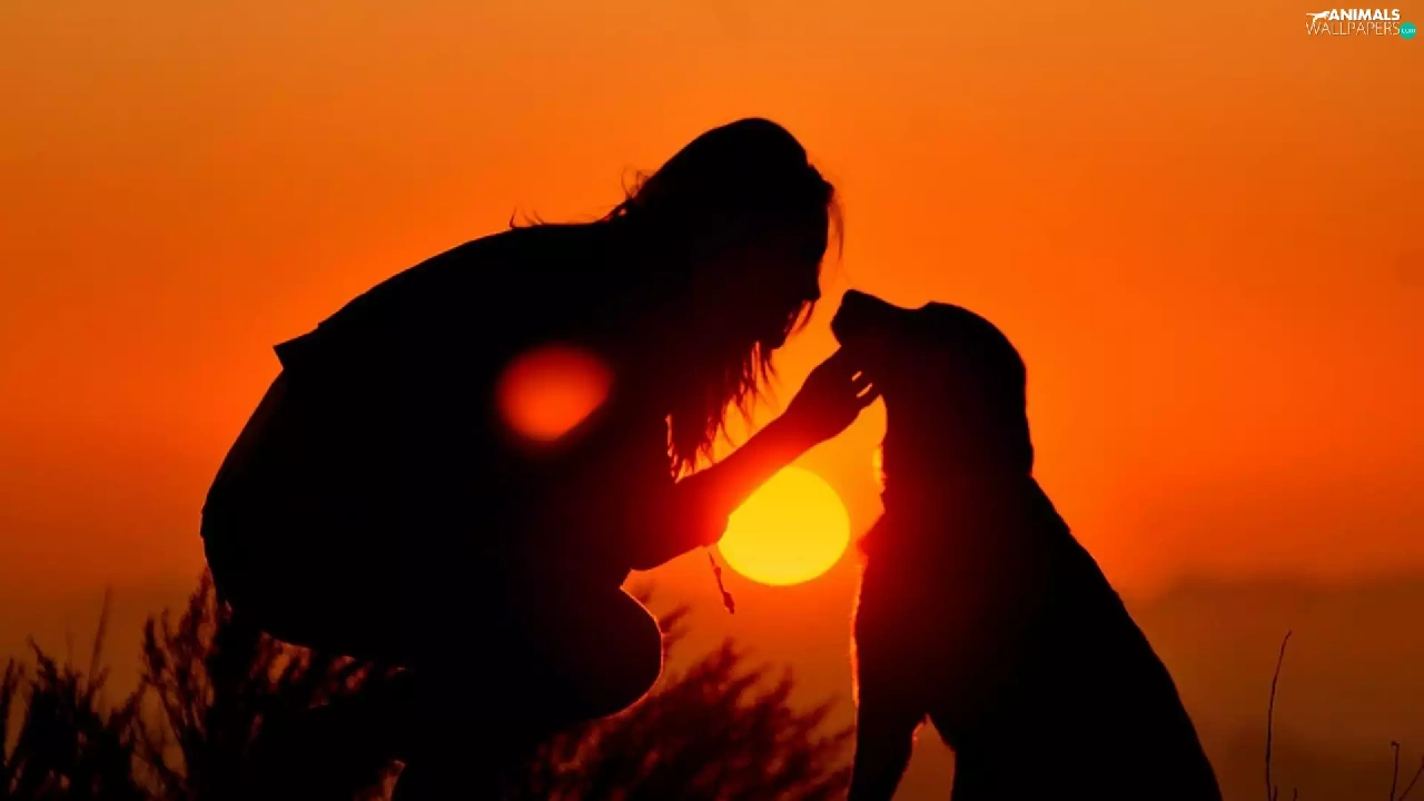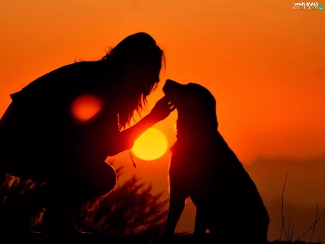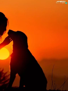 Women, west, sun, dog
