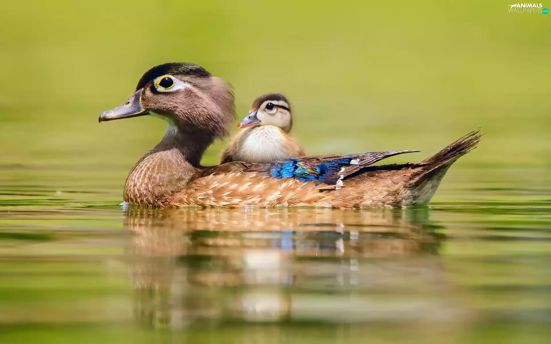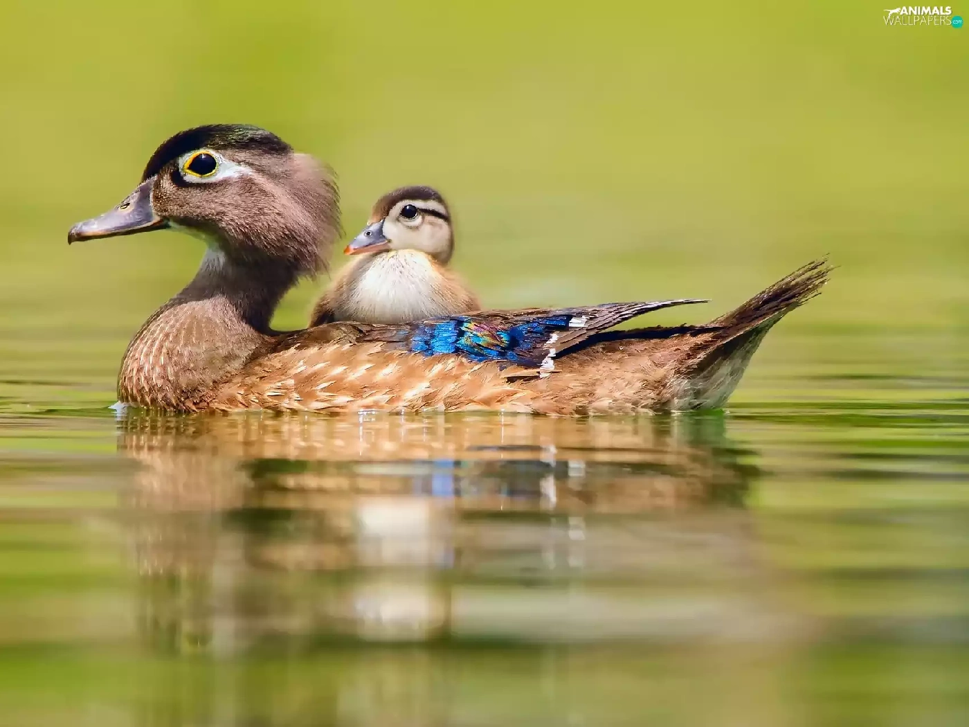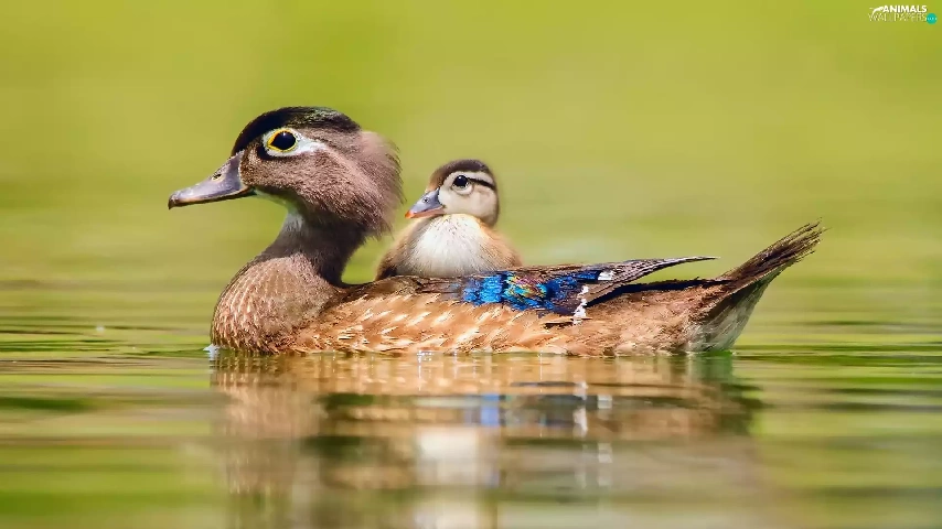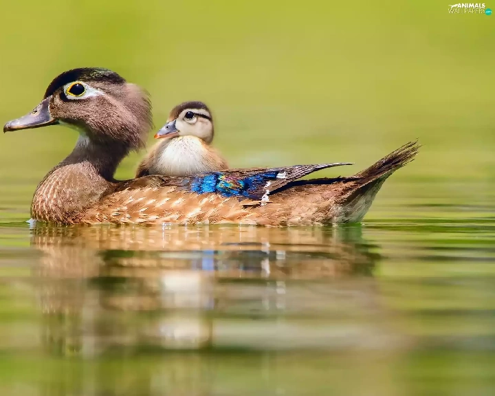 lake, swimming, little doggies, duckling, duck