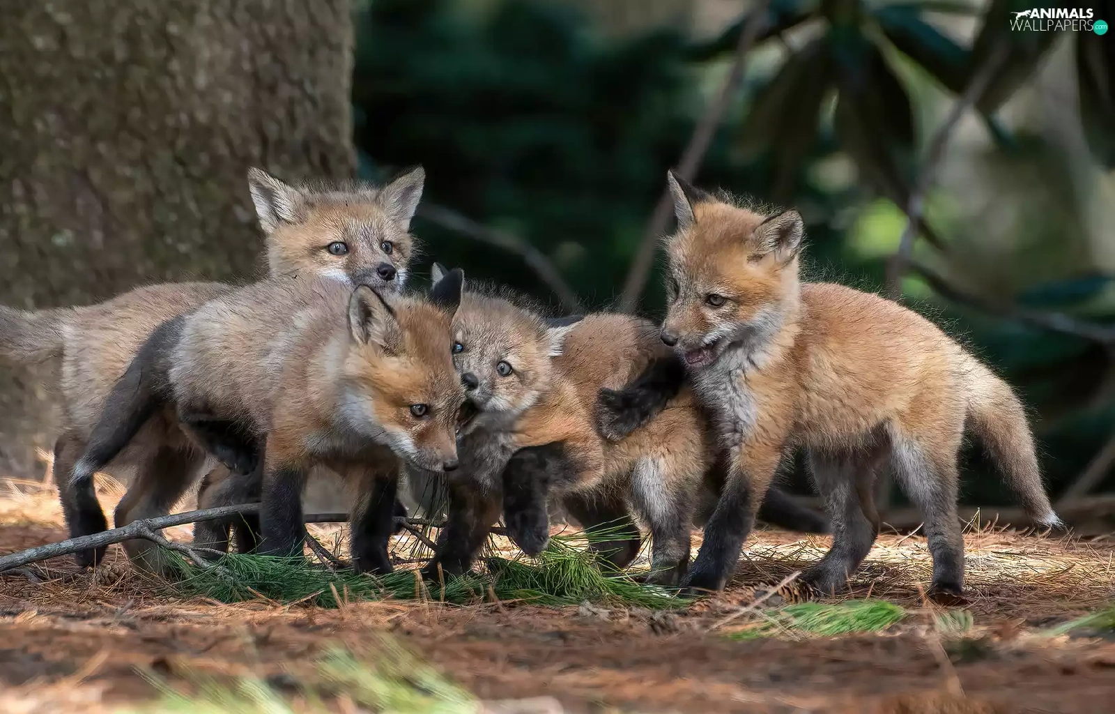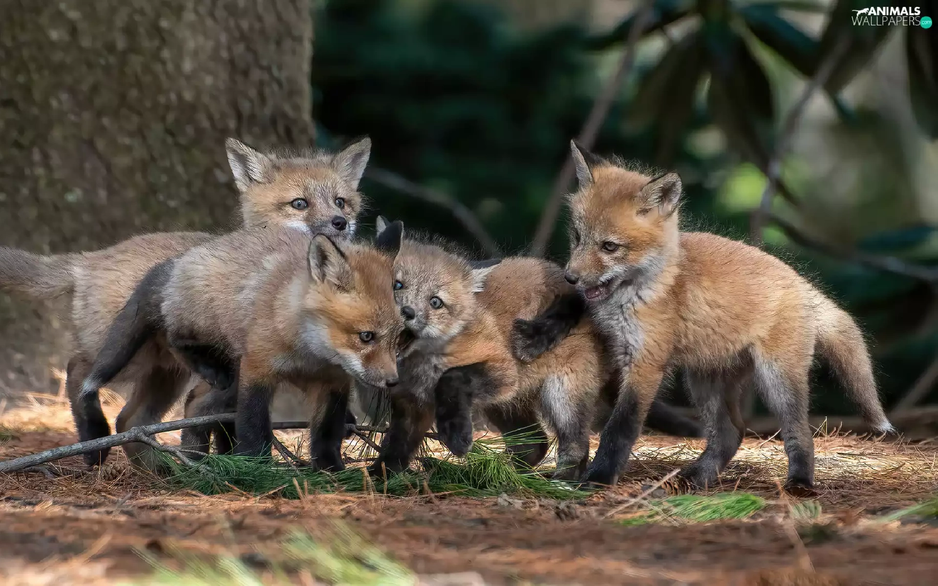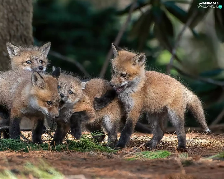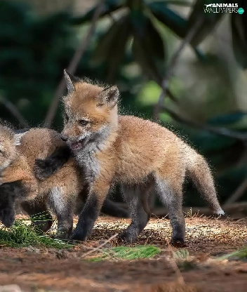 foxes, playing, little doggies