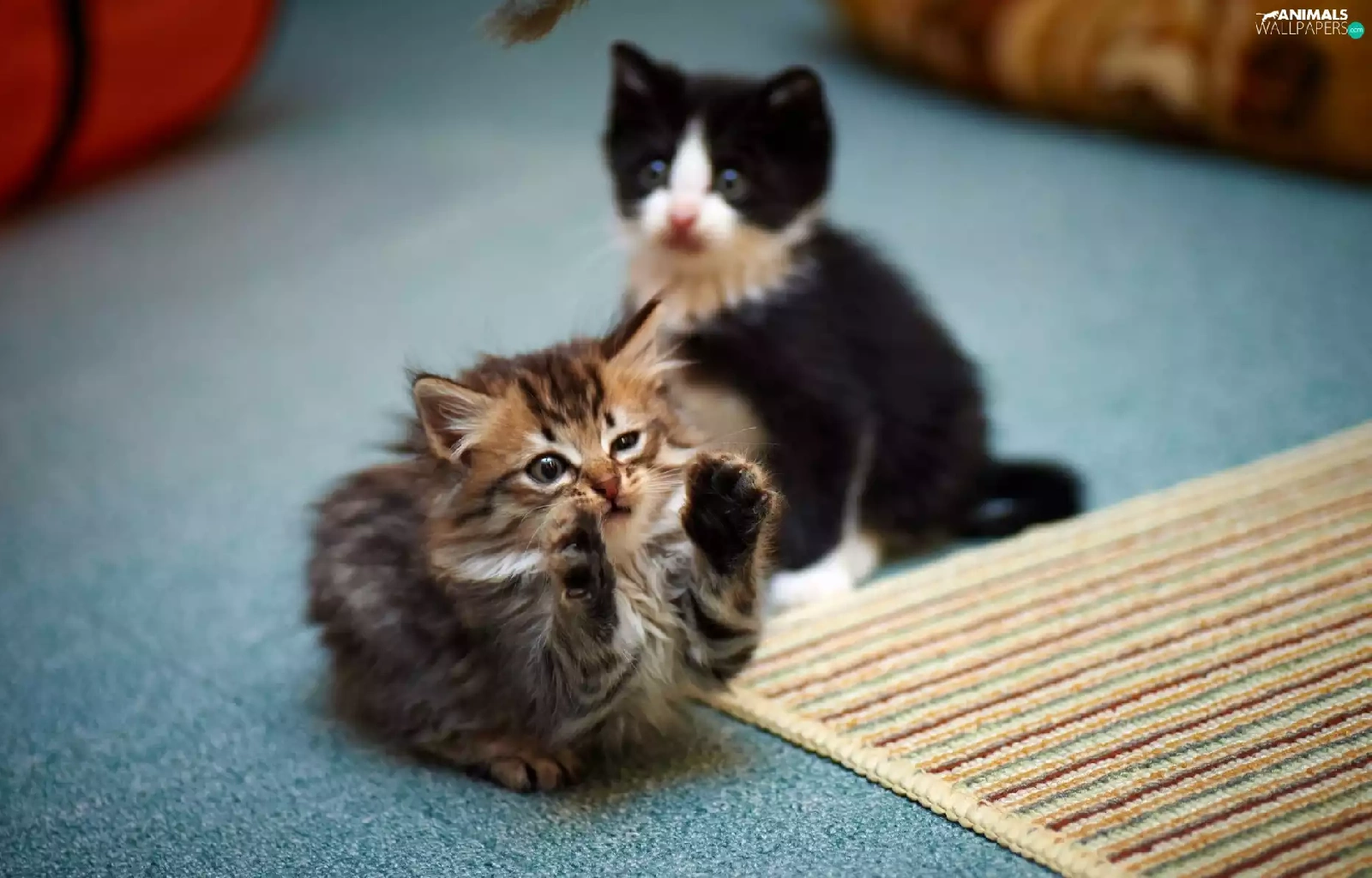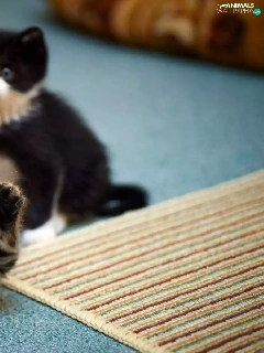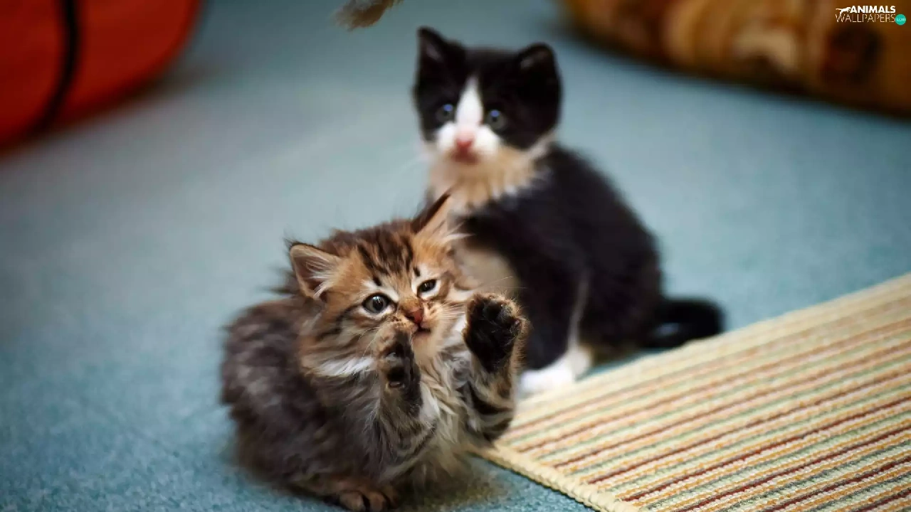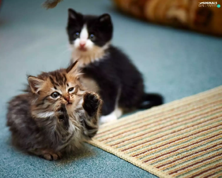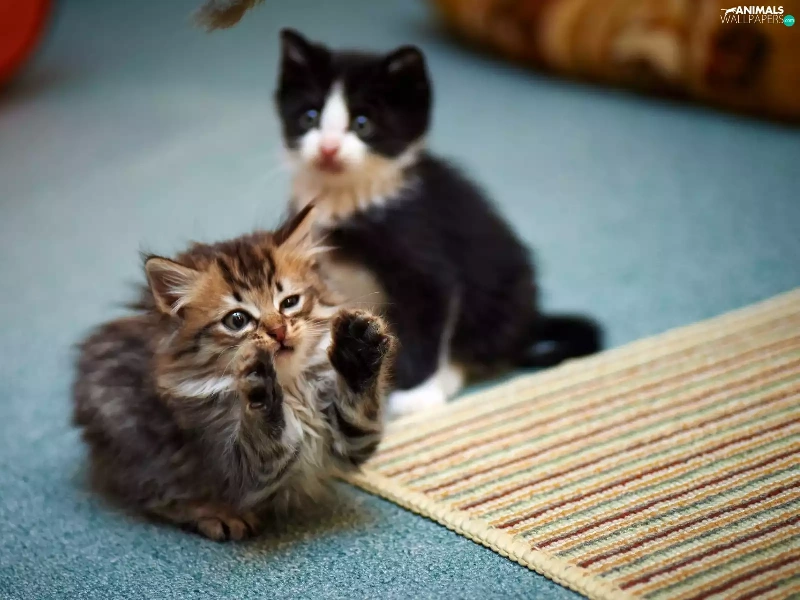 play, carpet, little doggies, kitty, Two cars