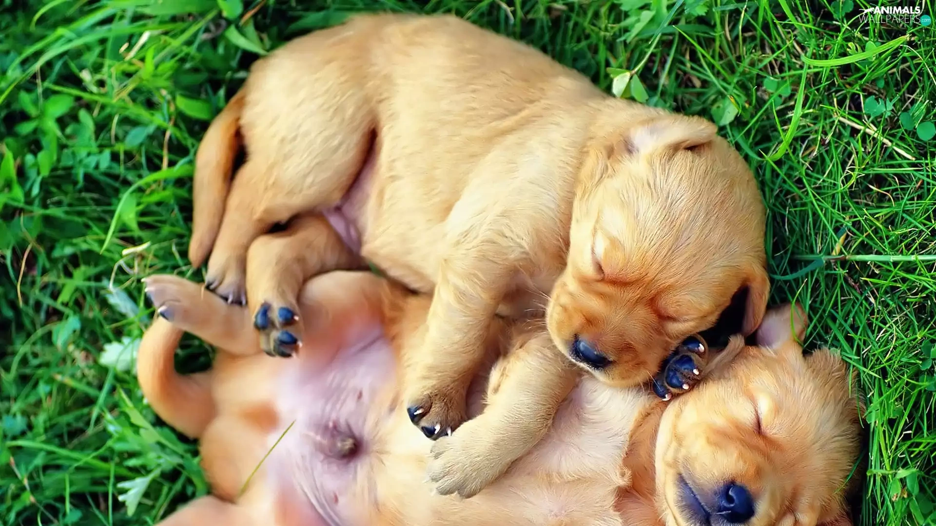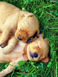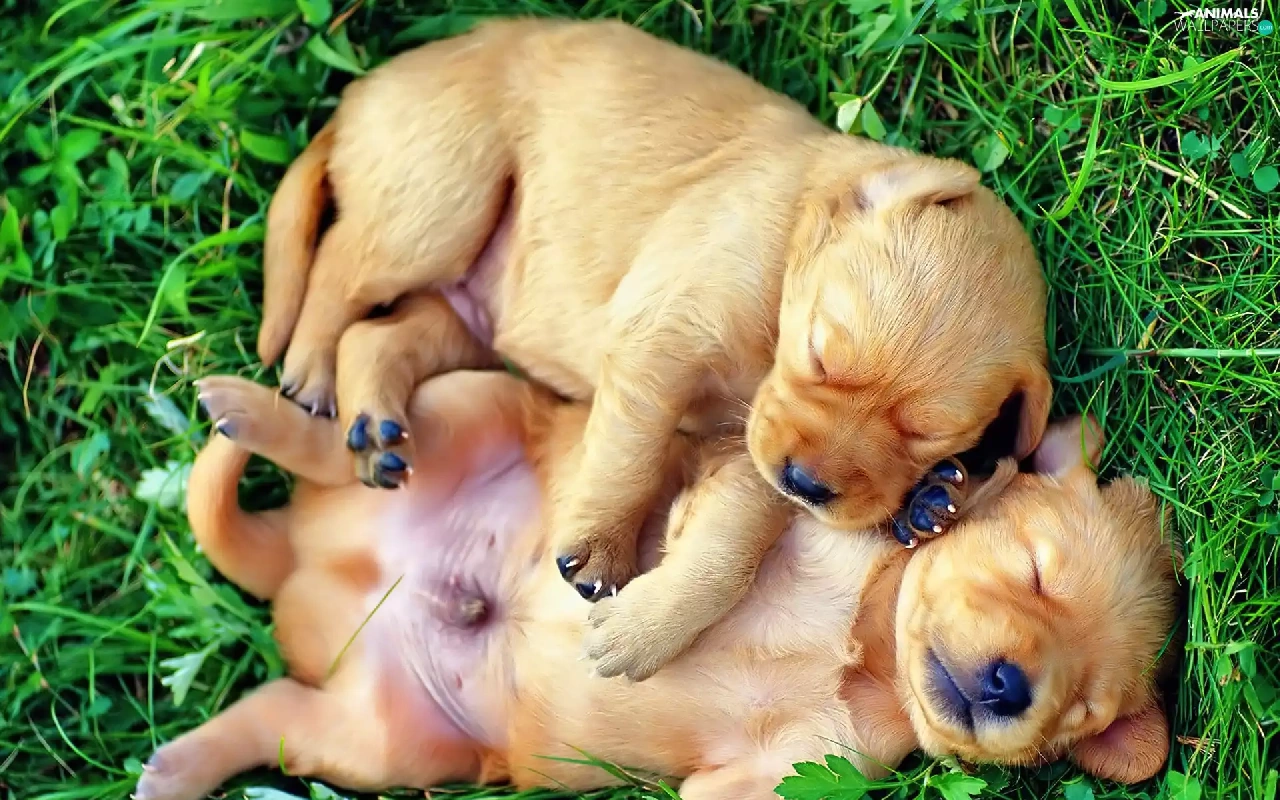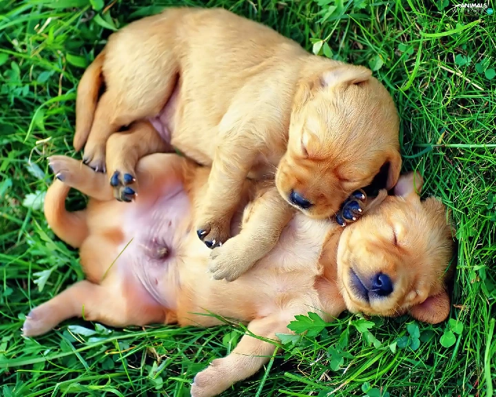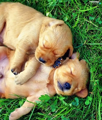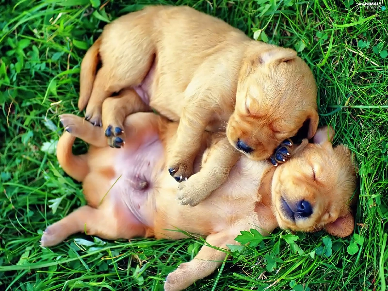 puppies, grass, little doggies, Sleeping, Two cars