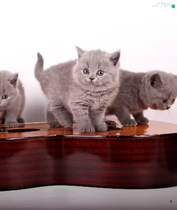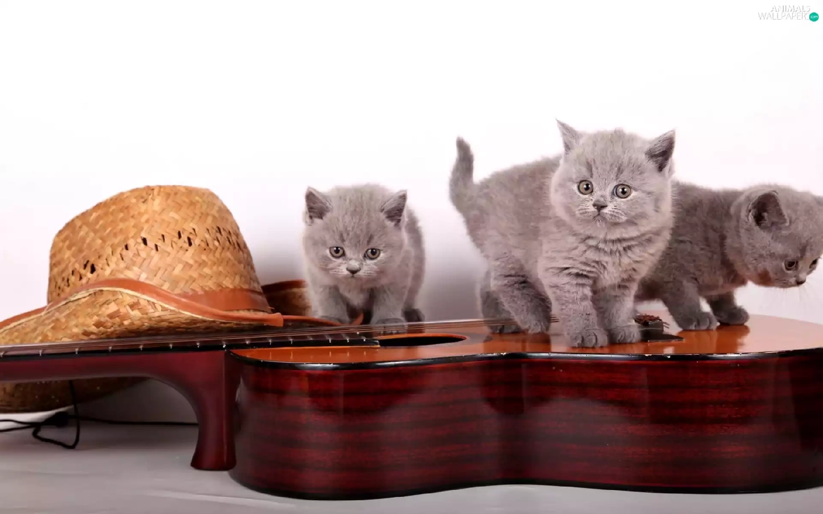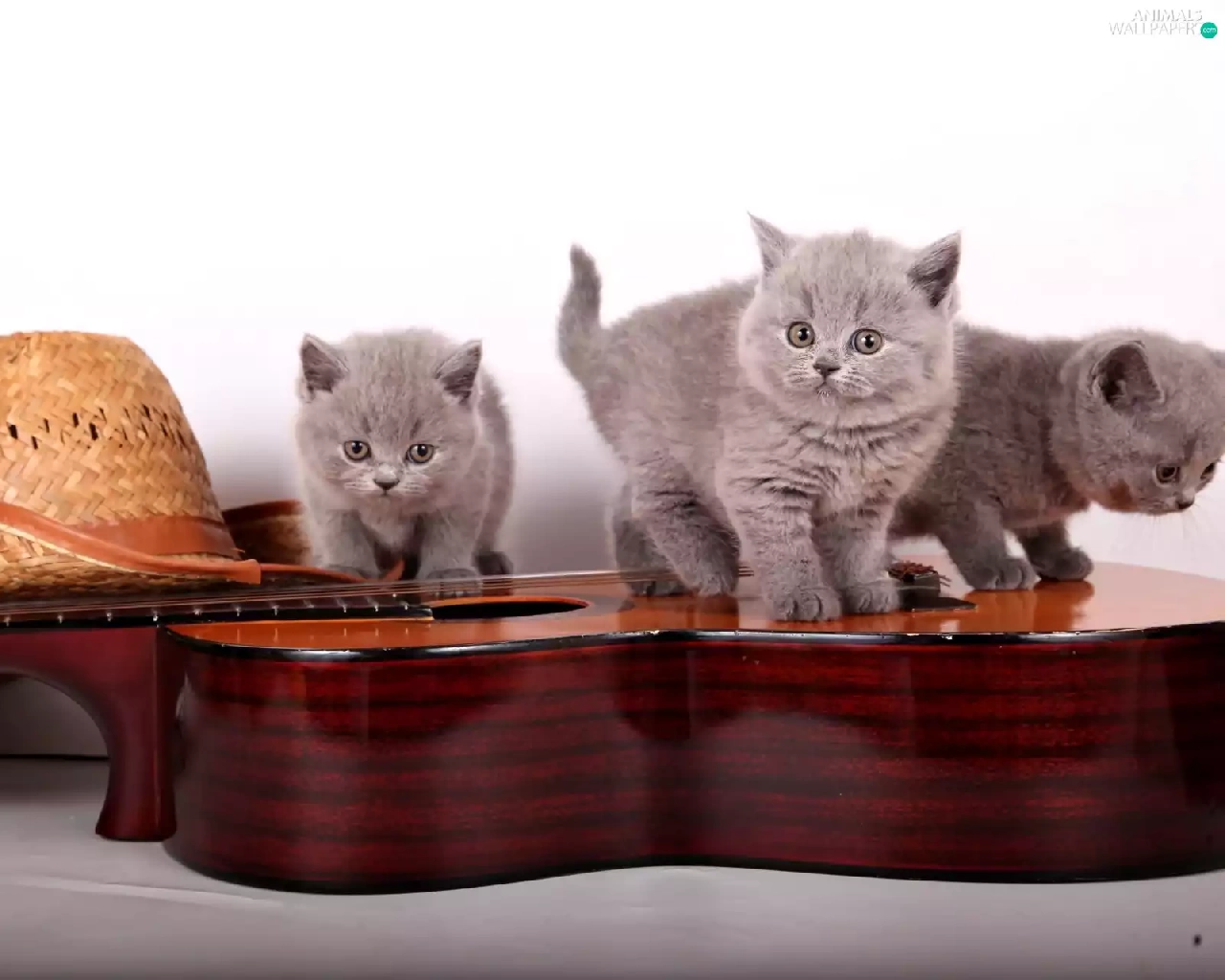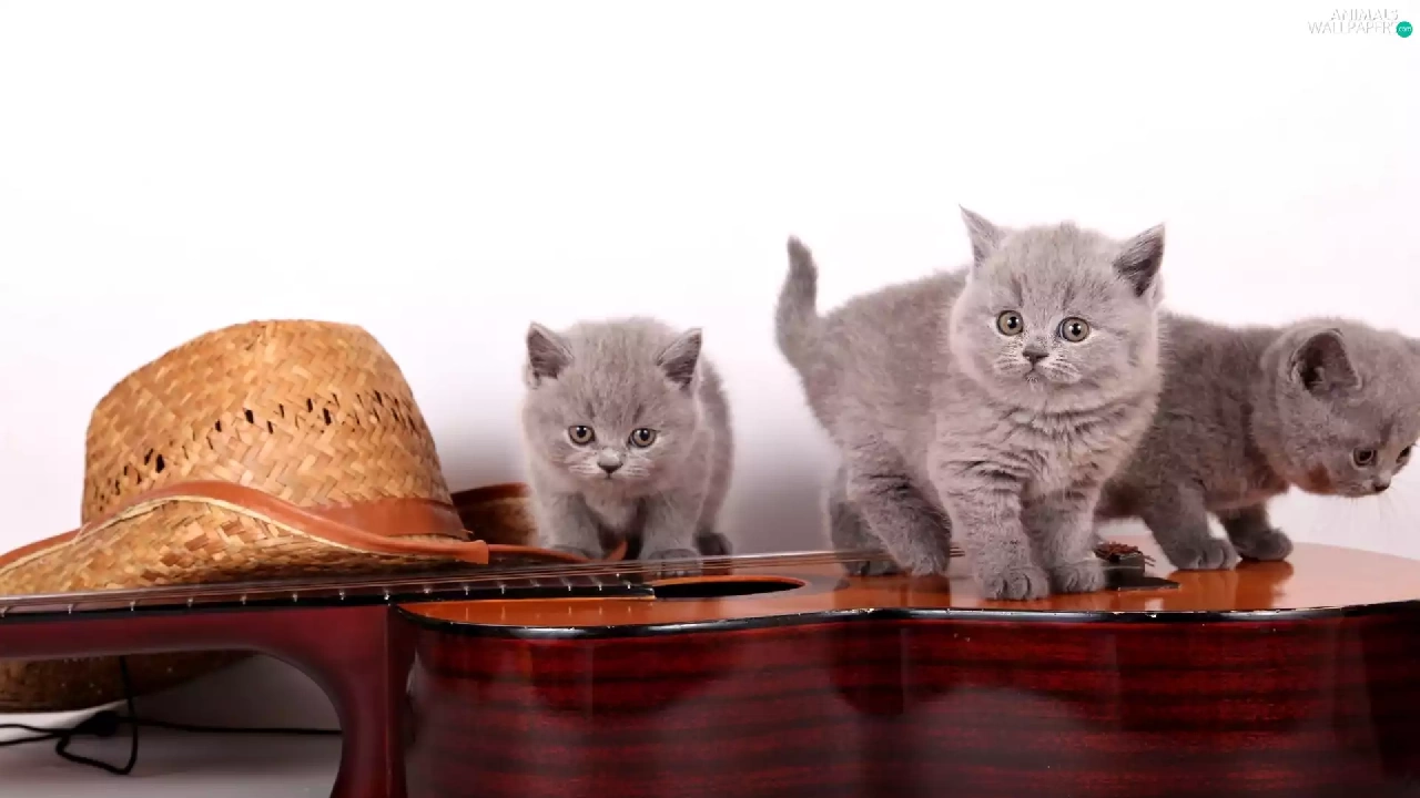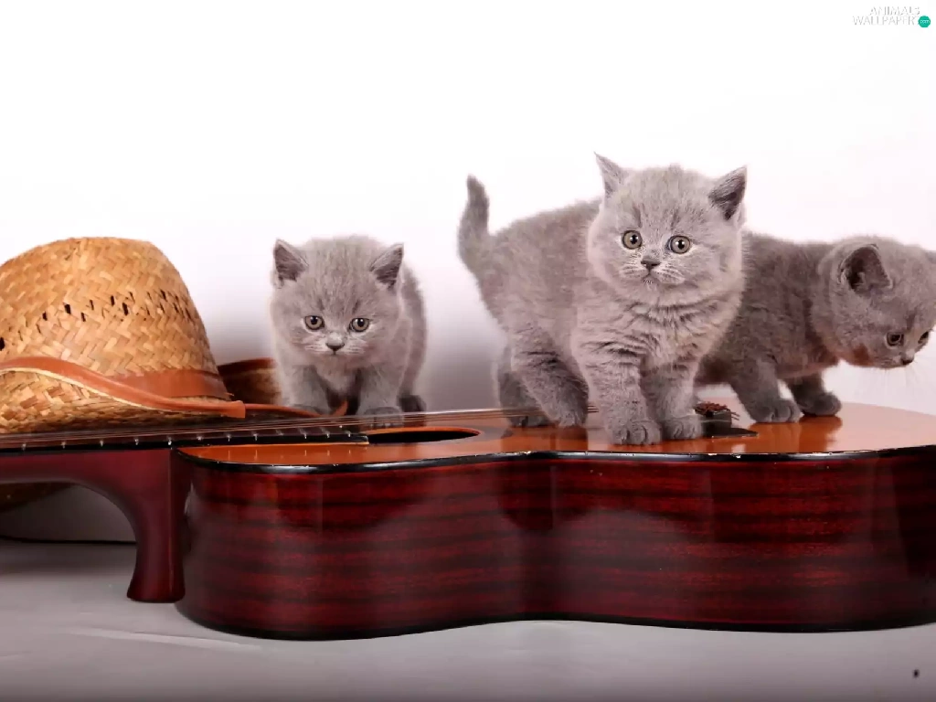 Guitar, Hat, little doggies, British Cats, Three