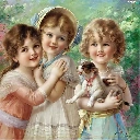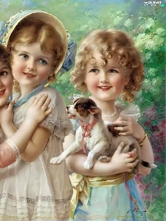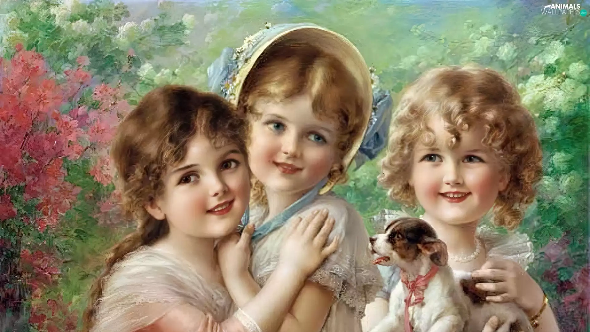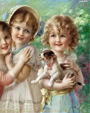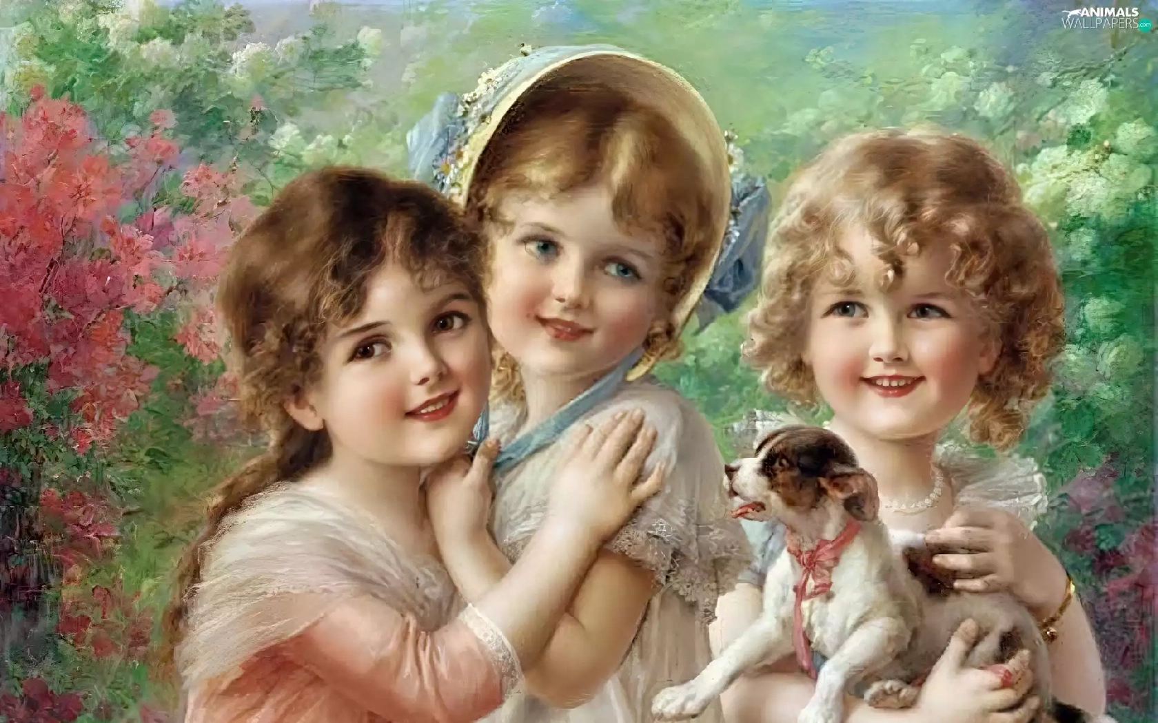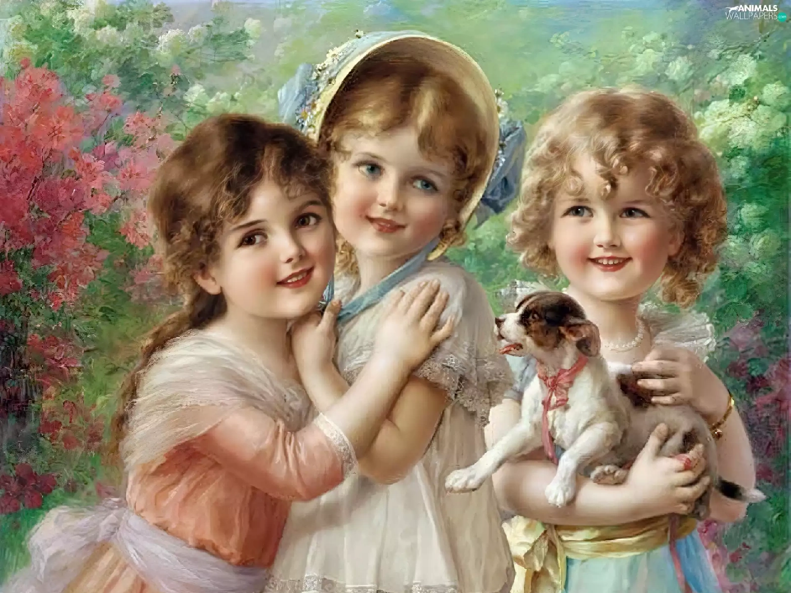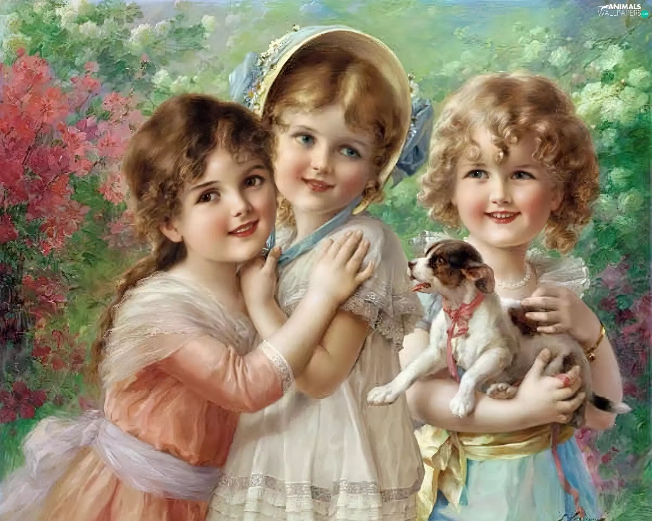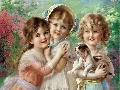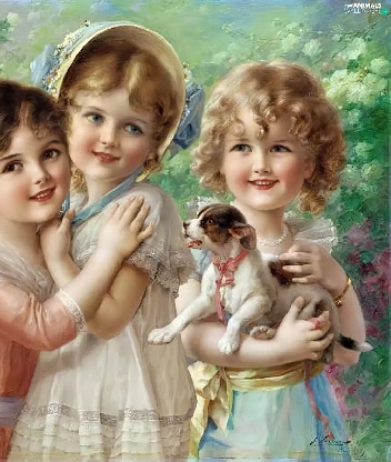 small, doggy, Three, girls, Kids
