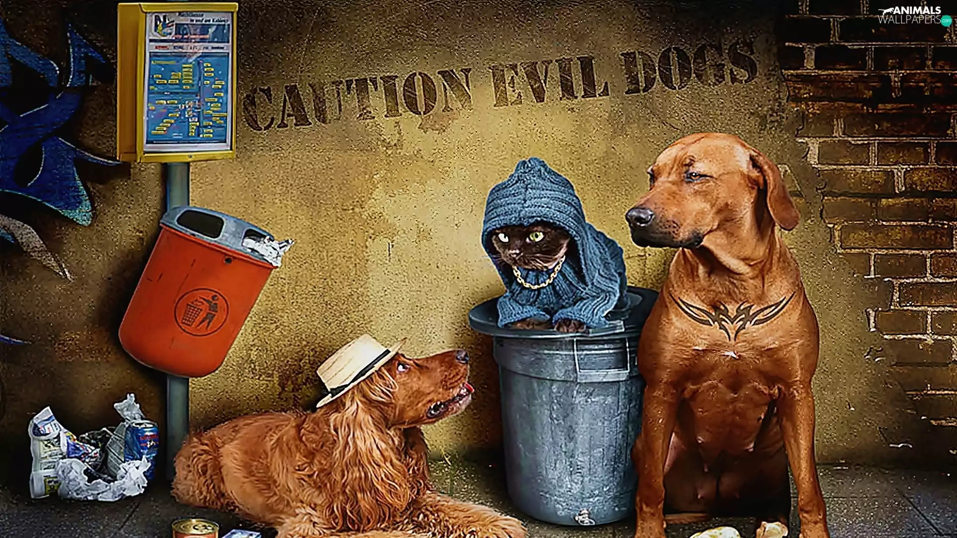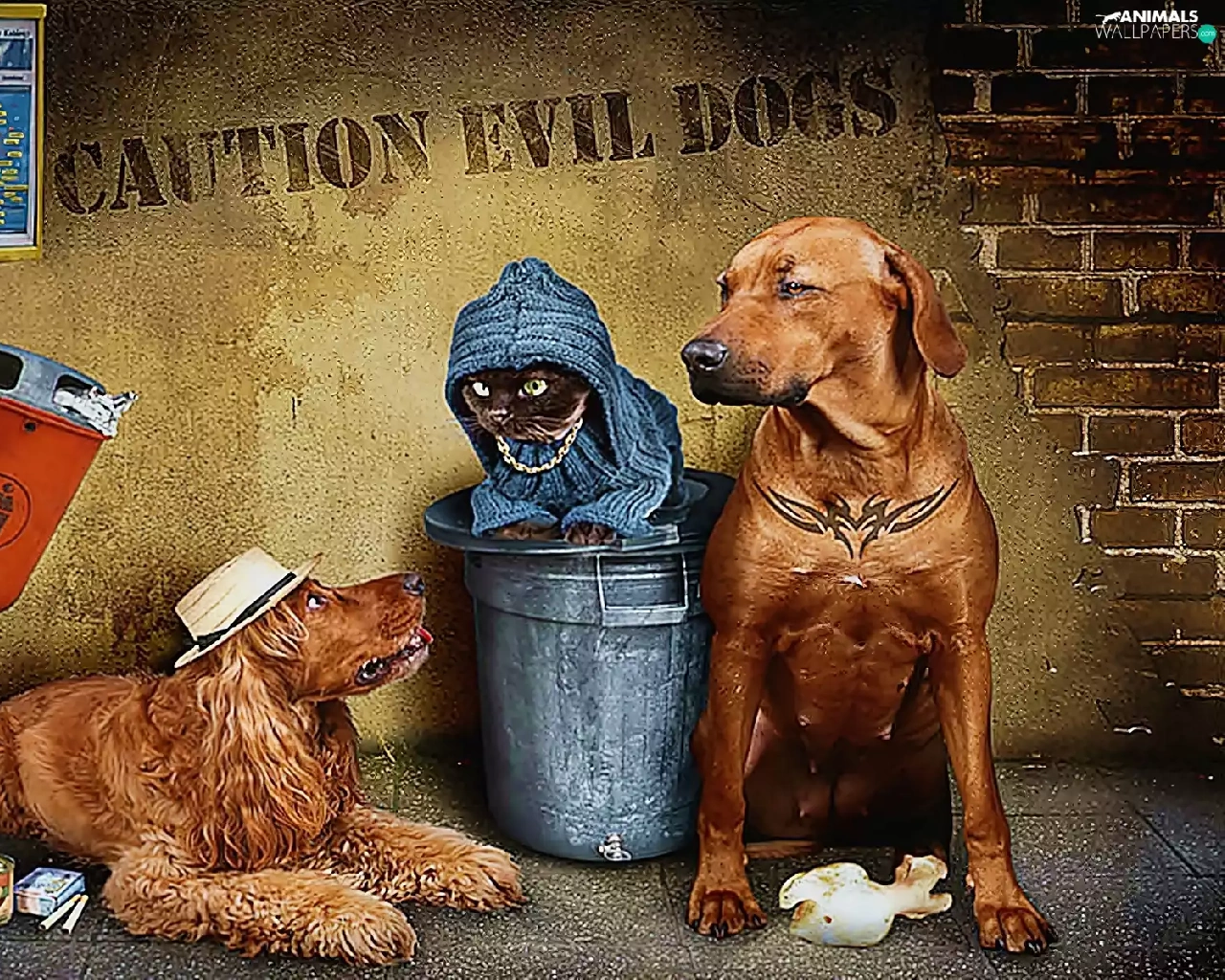 cat, basket, stop, Dogs