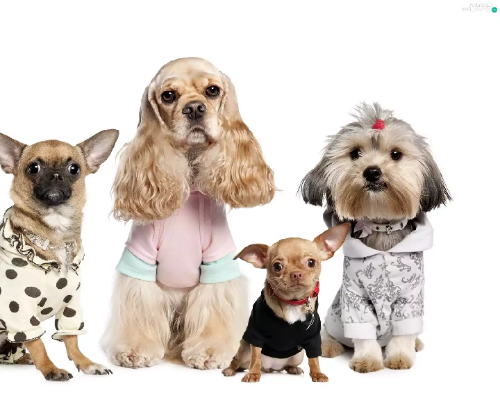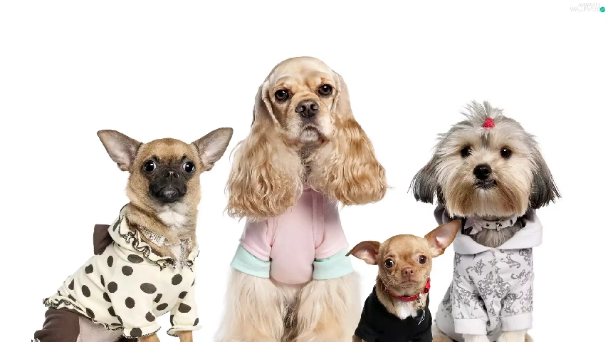 four, different, breed, Dogs