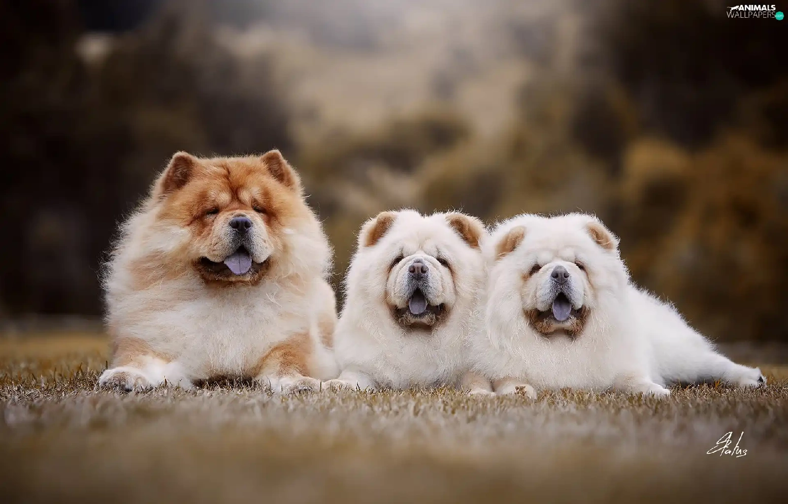 Two cars, puppies, Dogs, Chow chow, Three