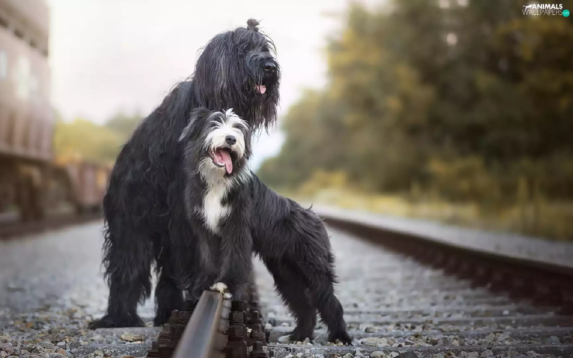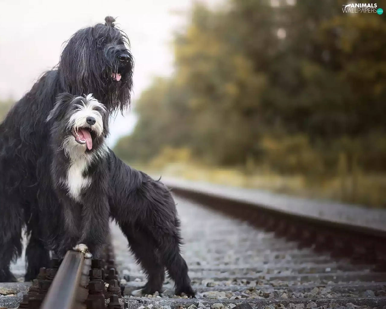 ##, railway, Shepherd French Briard, Bearded collie, Dogs