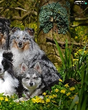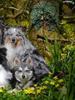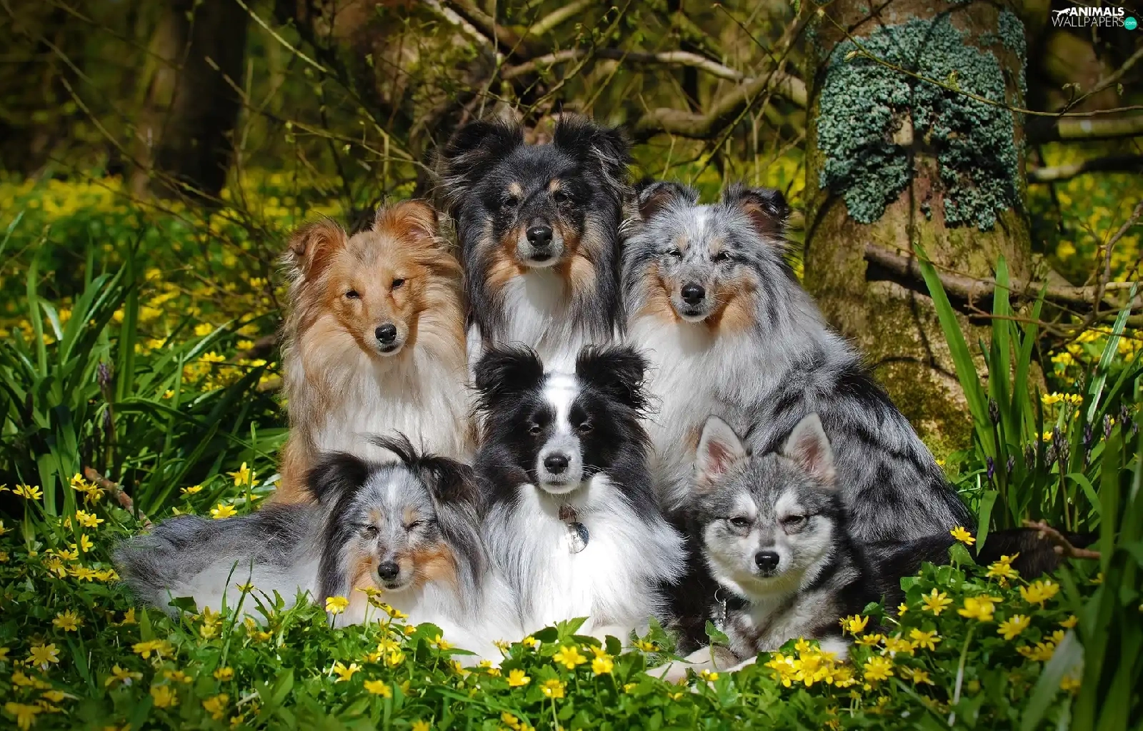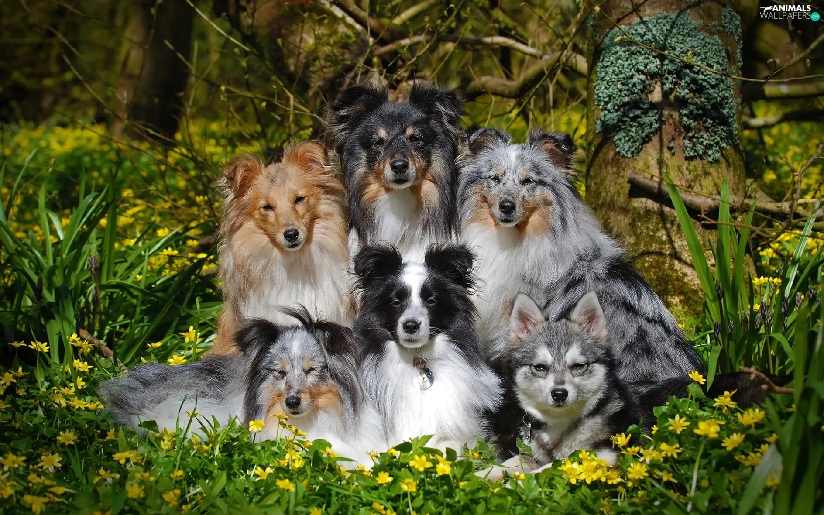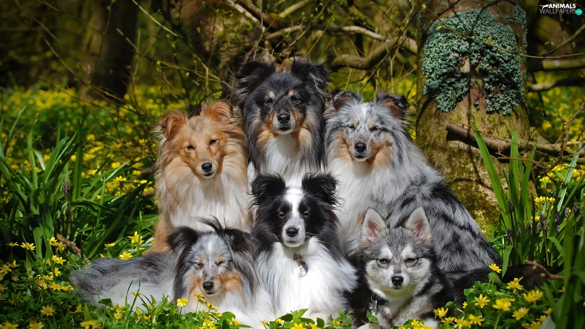 Shetland Sheepdogs, Flowers, dogs, mongrel, six