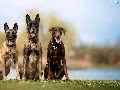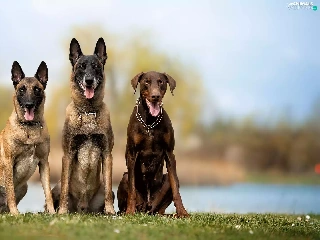 Brown, Doberman, Two cars, Belgian Shepherd Malinois, Dogs