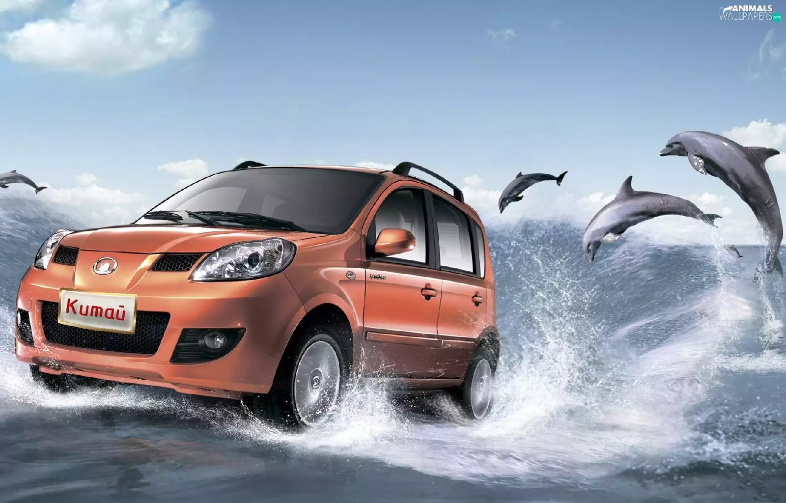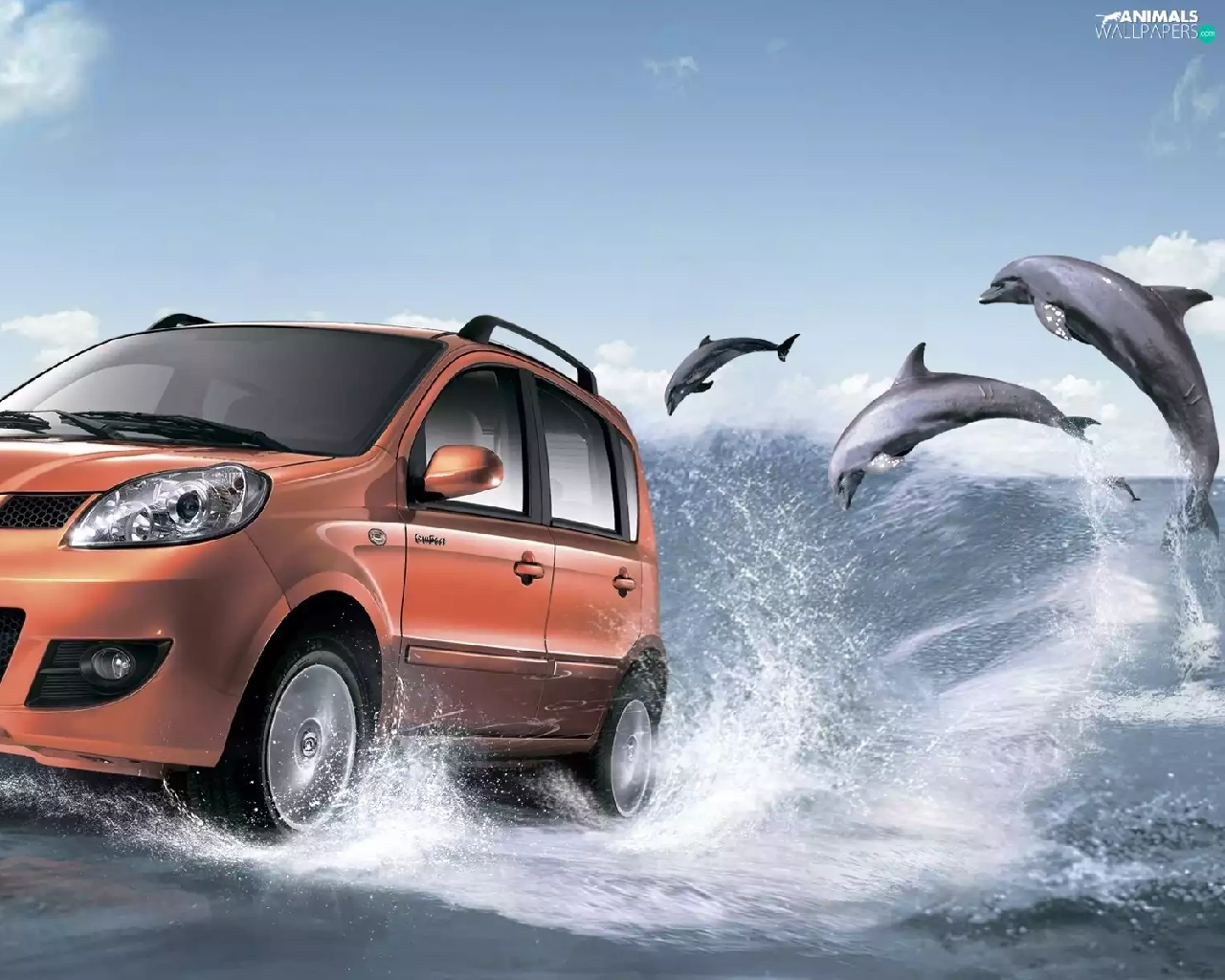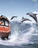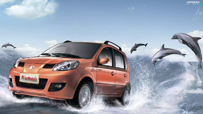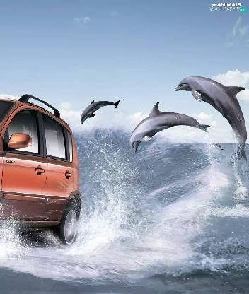 dolphins, sea, Automobile