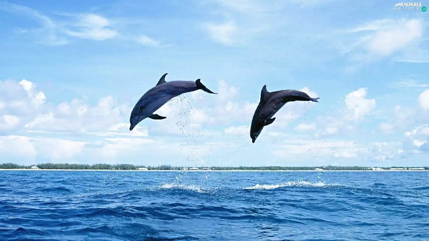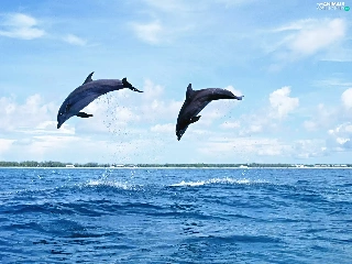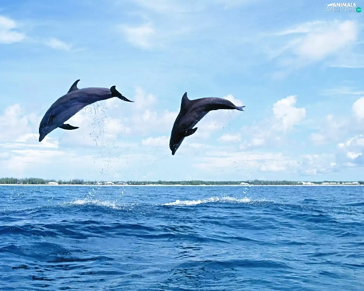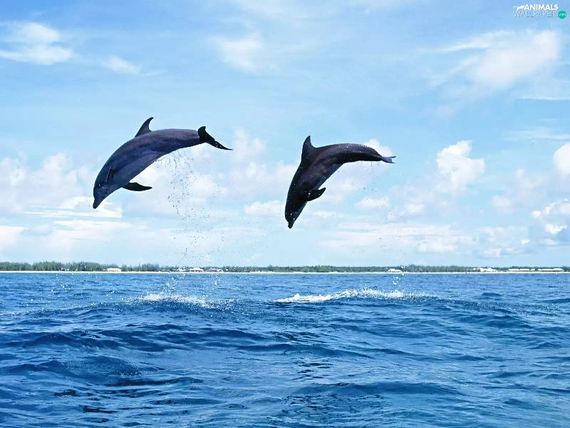 sea, Two cars, dolphins