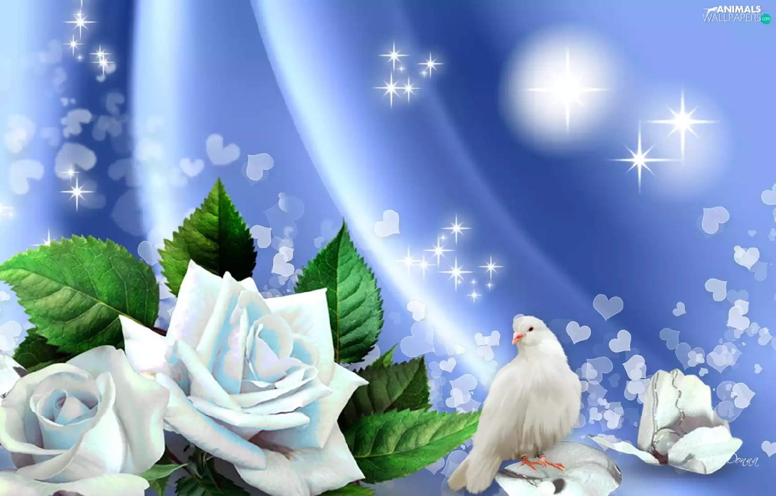 White, roses, graphics, dove