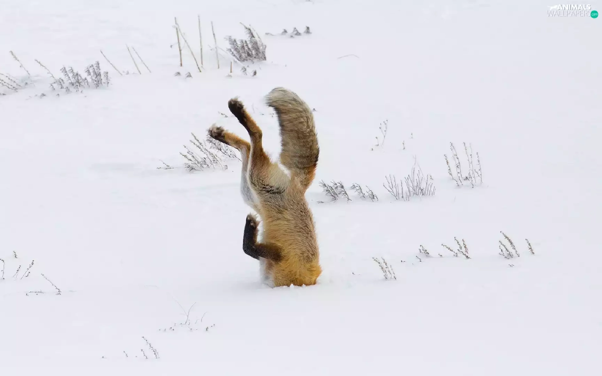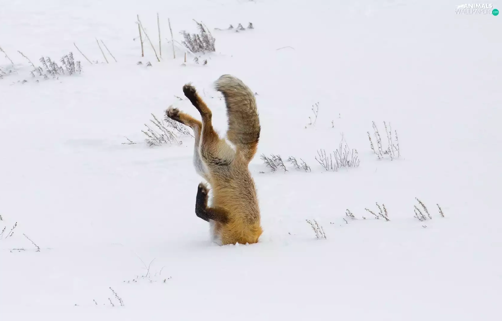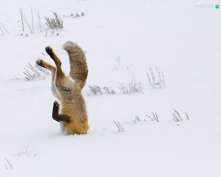 winter, Fox, snow, Dove