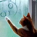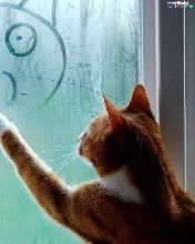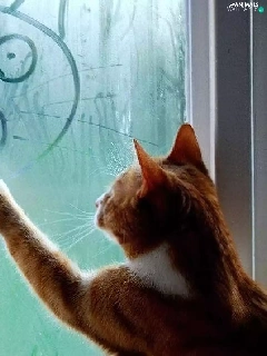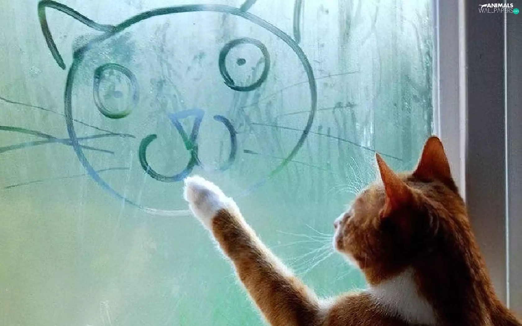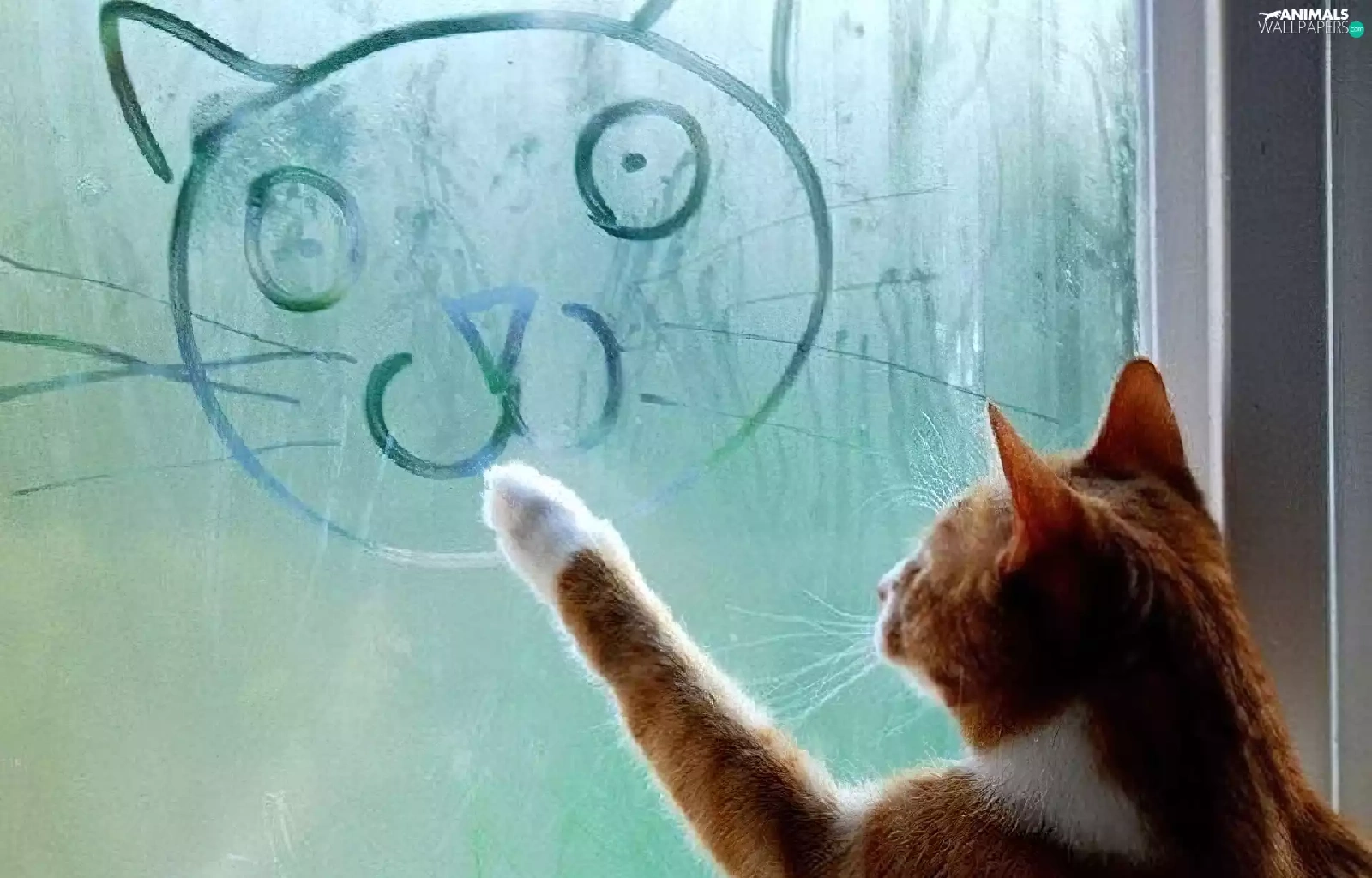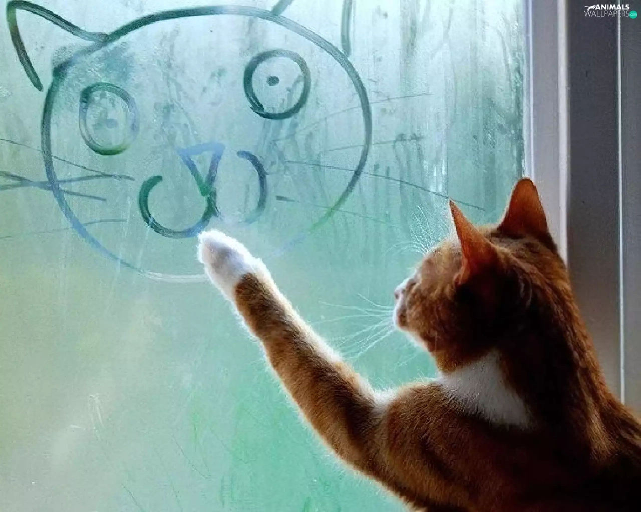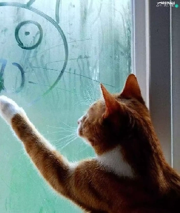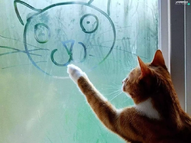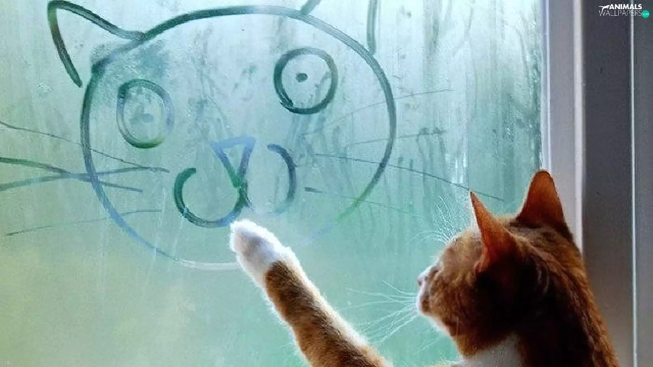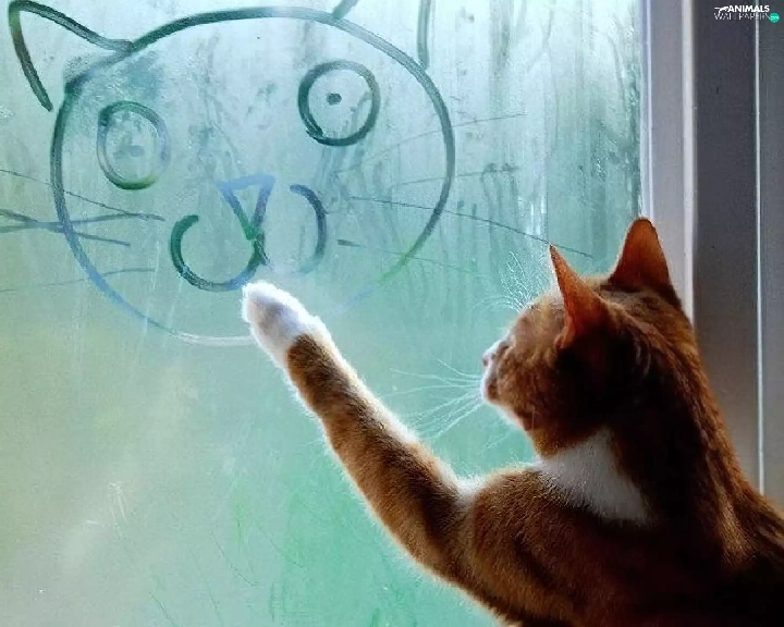 Drawing, cat, Glass