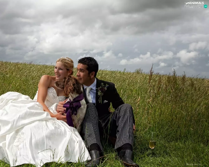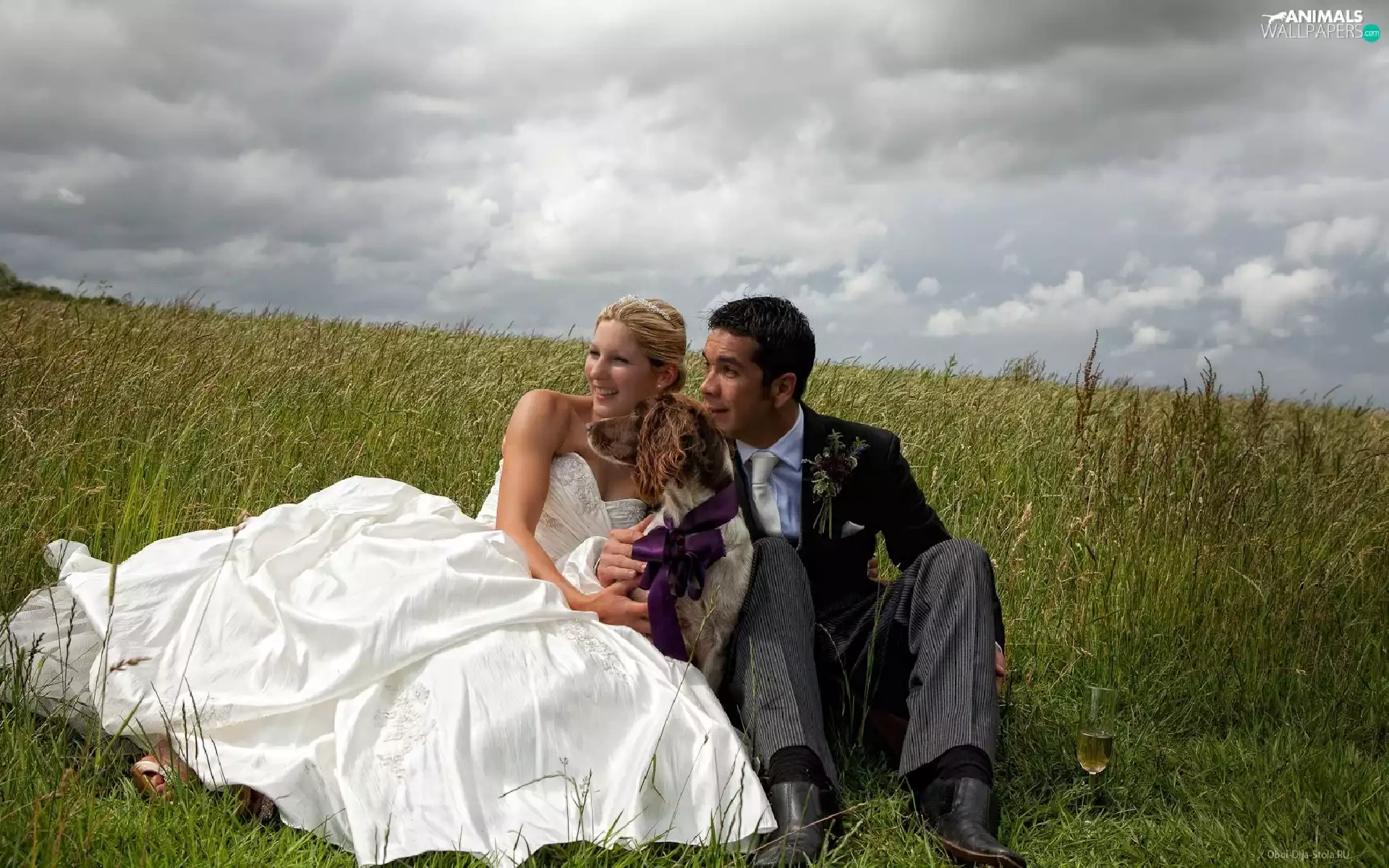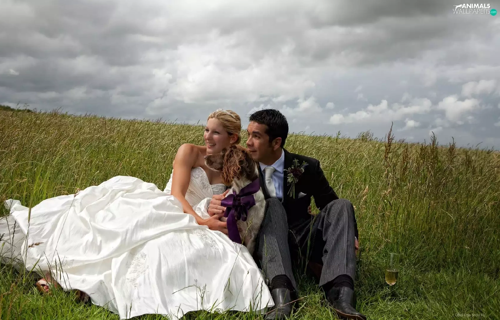 wine glass, young, White, Meadow, Steam, Champagne, Dress