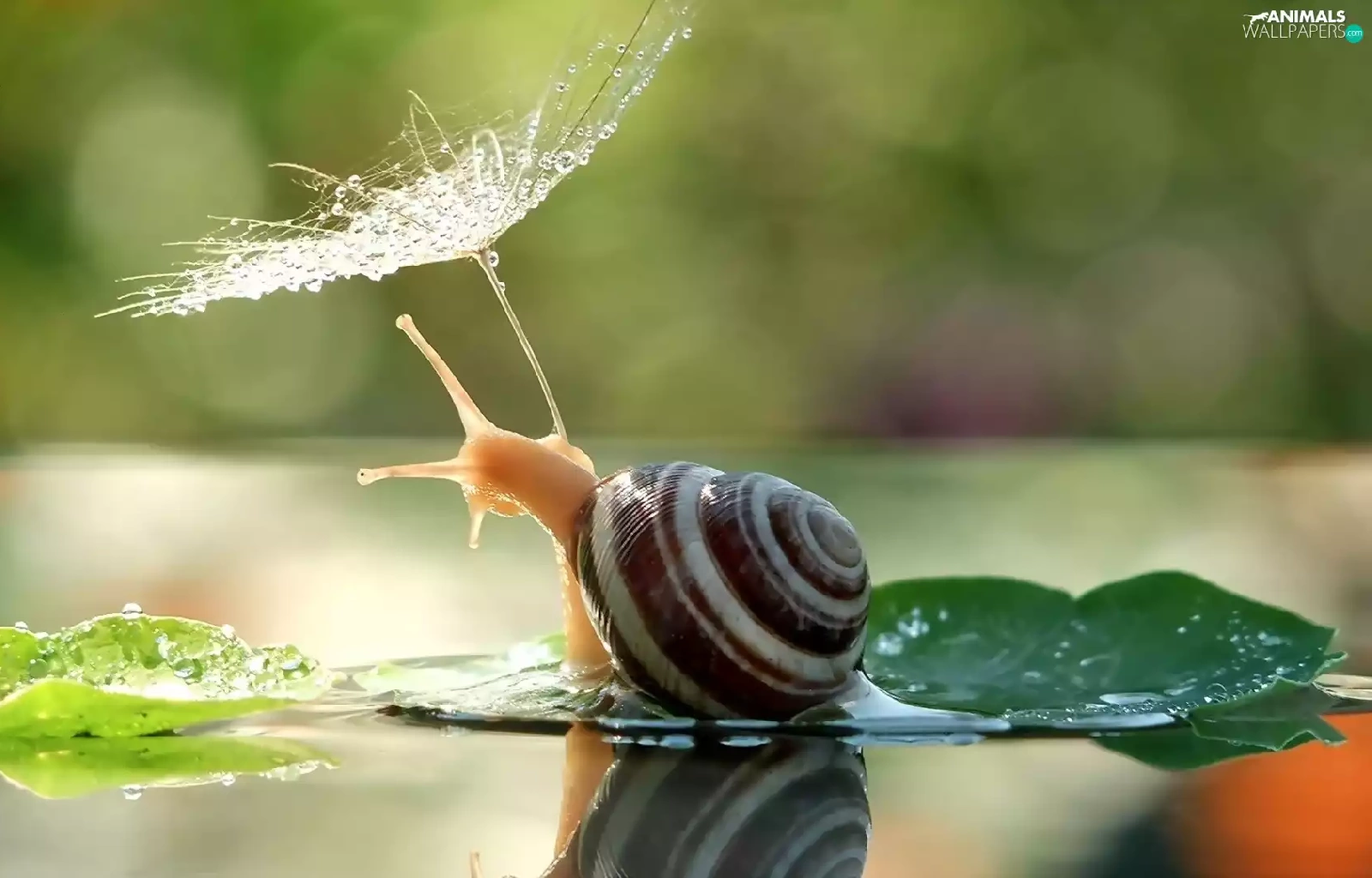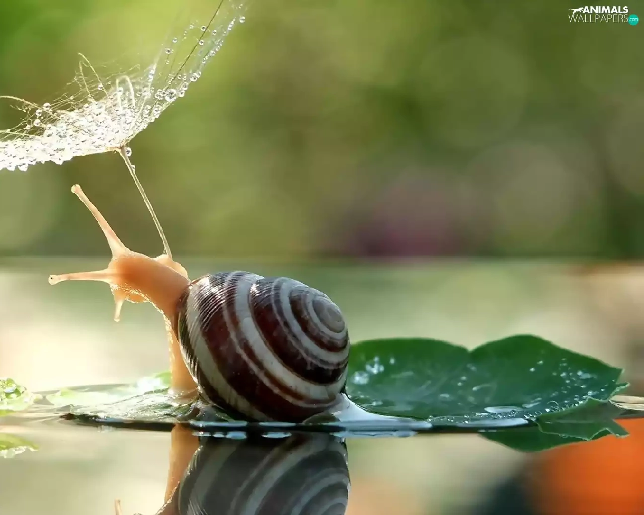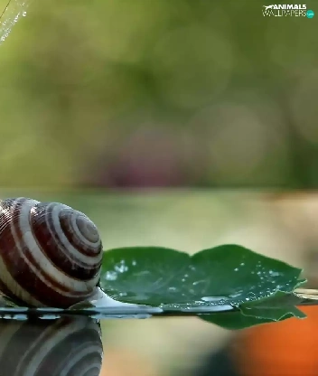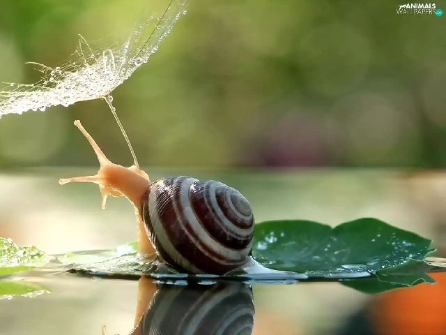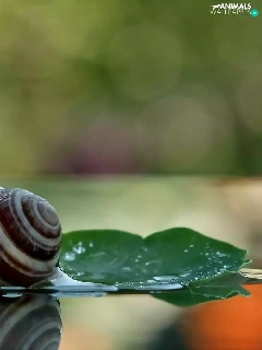 water, snail, dew, droplets, plant, Leaf