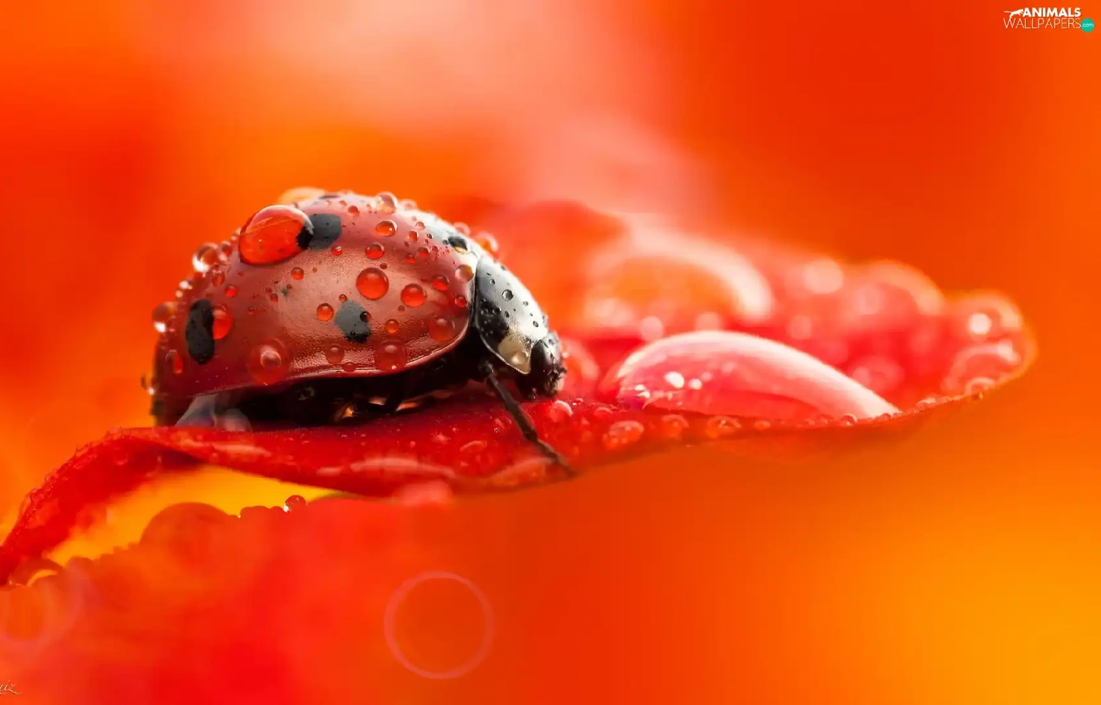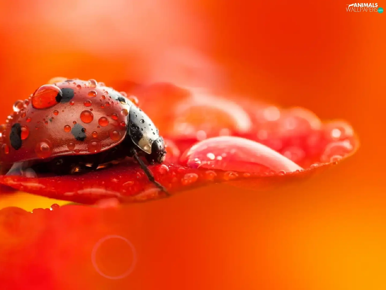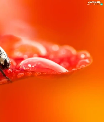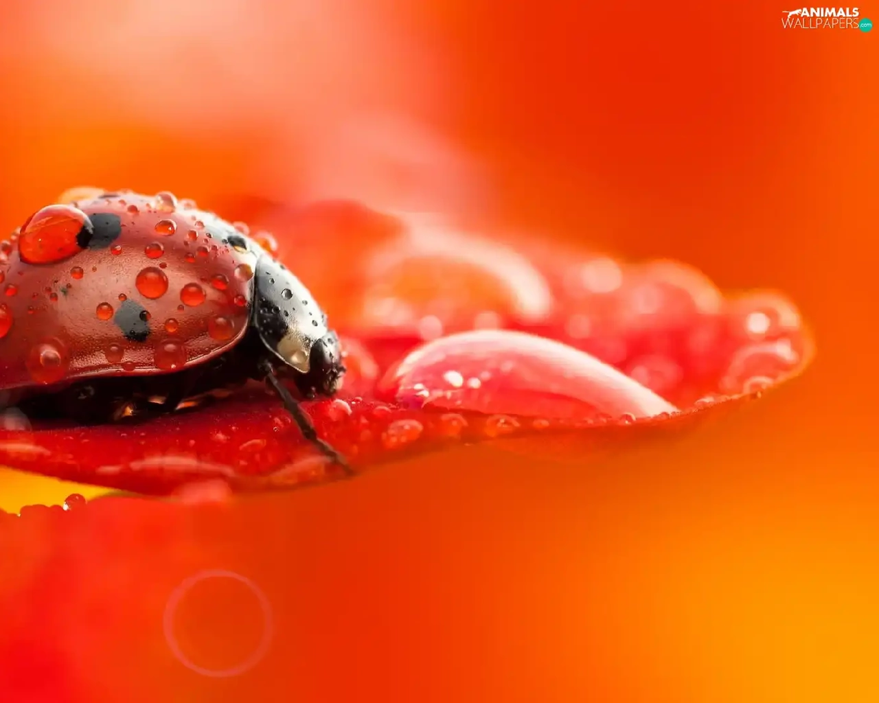 drops, Close, petal, flower, ladybird
