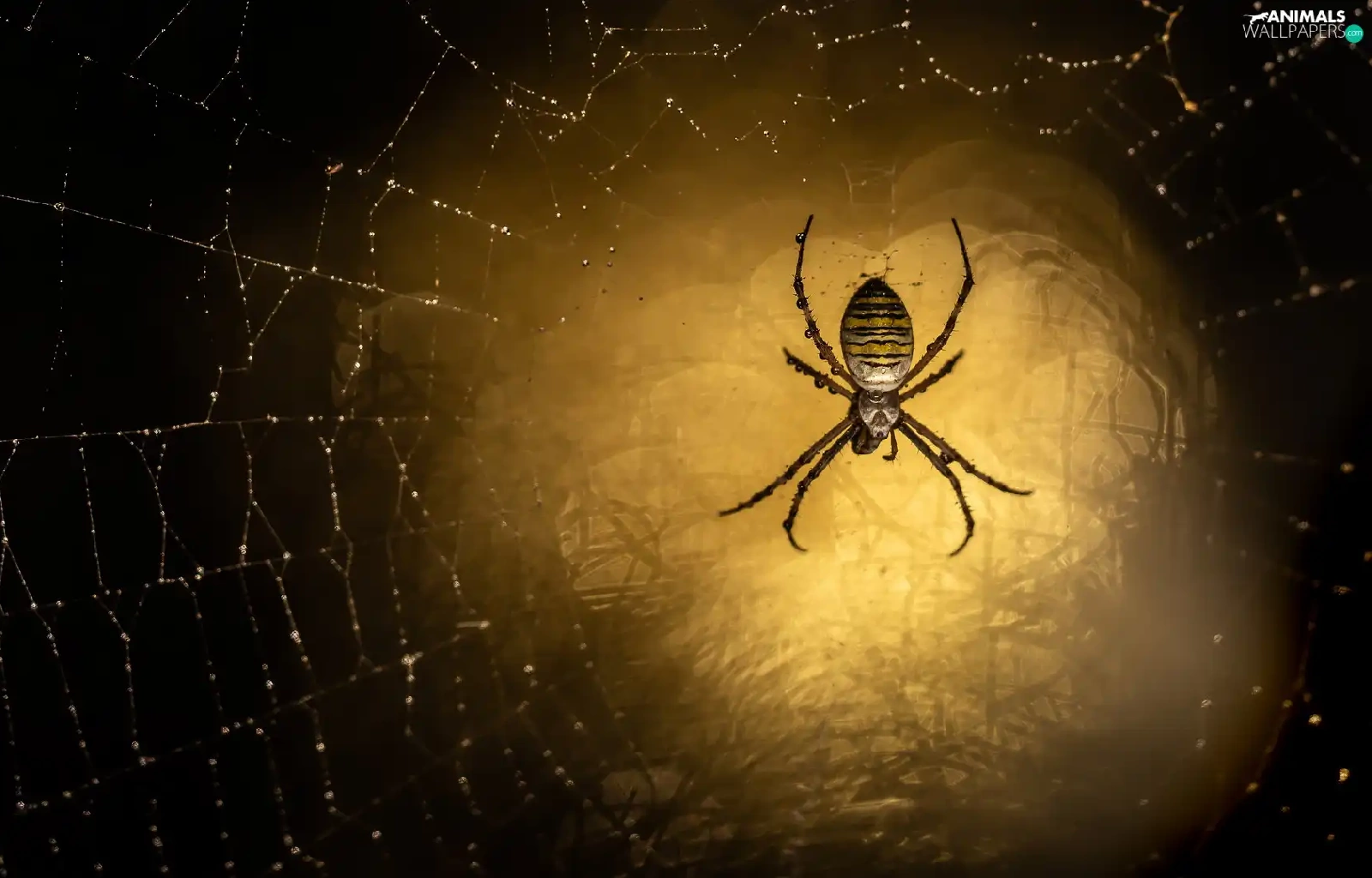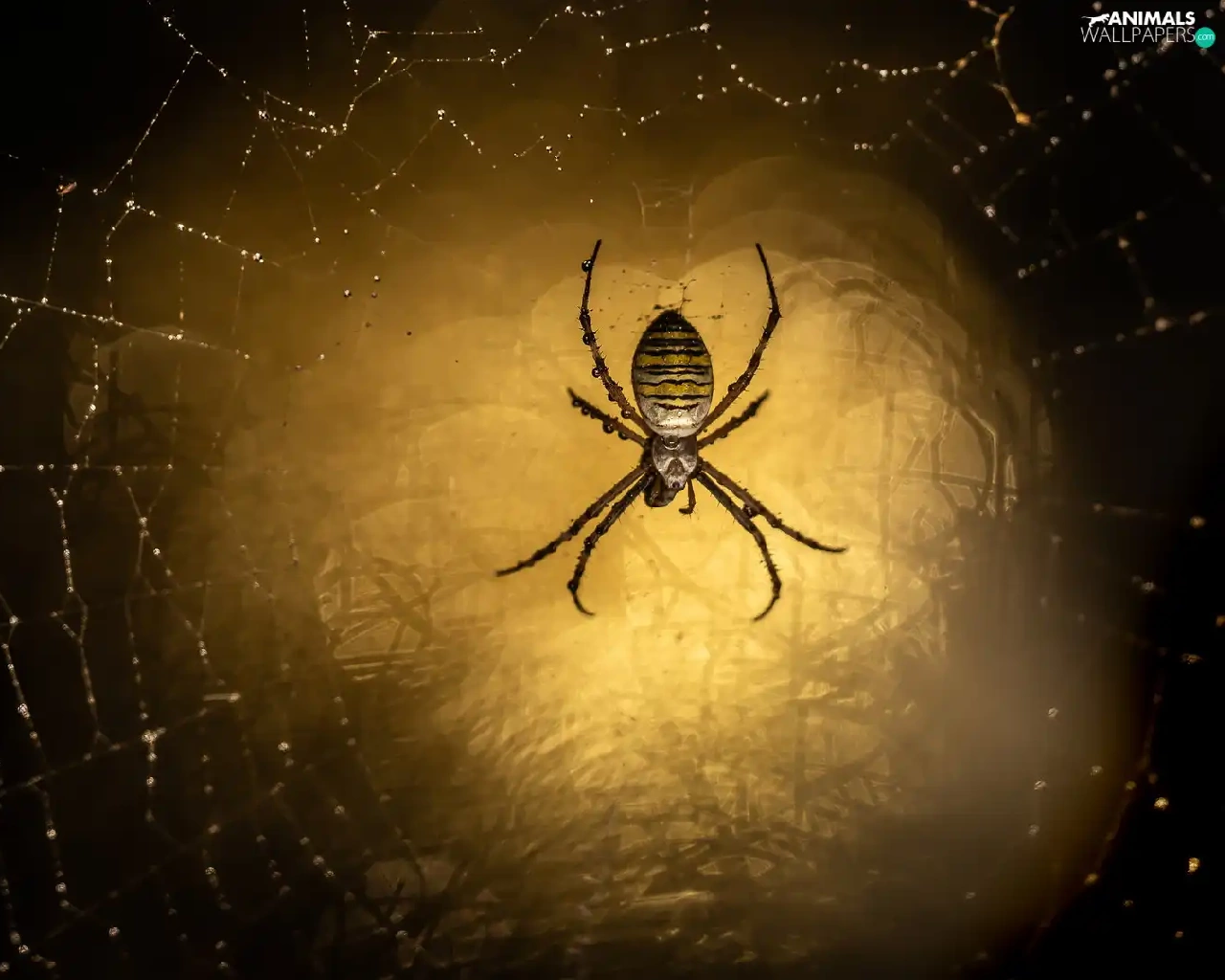 ligh, Web, flash, drops, Spider, sun, luminosity