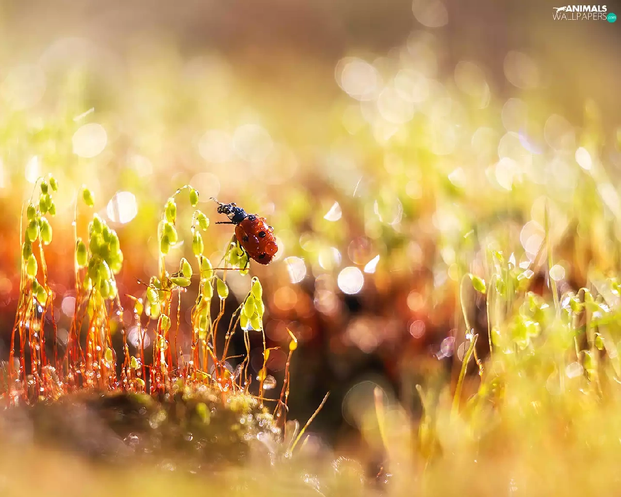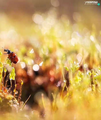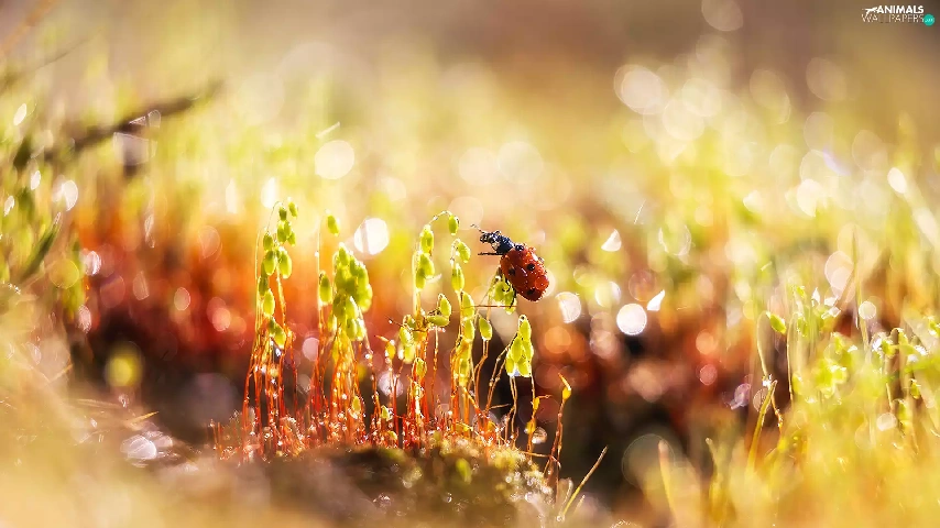 drops, Plants, ladybird