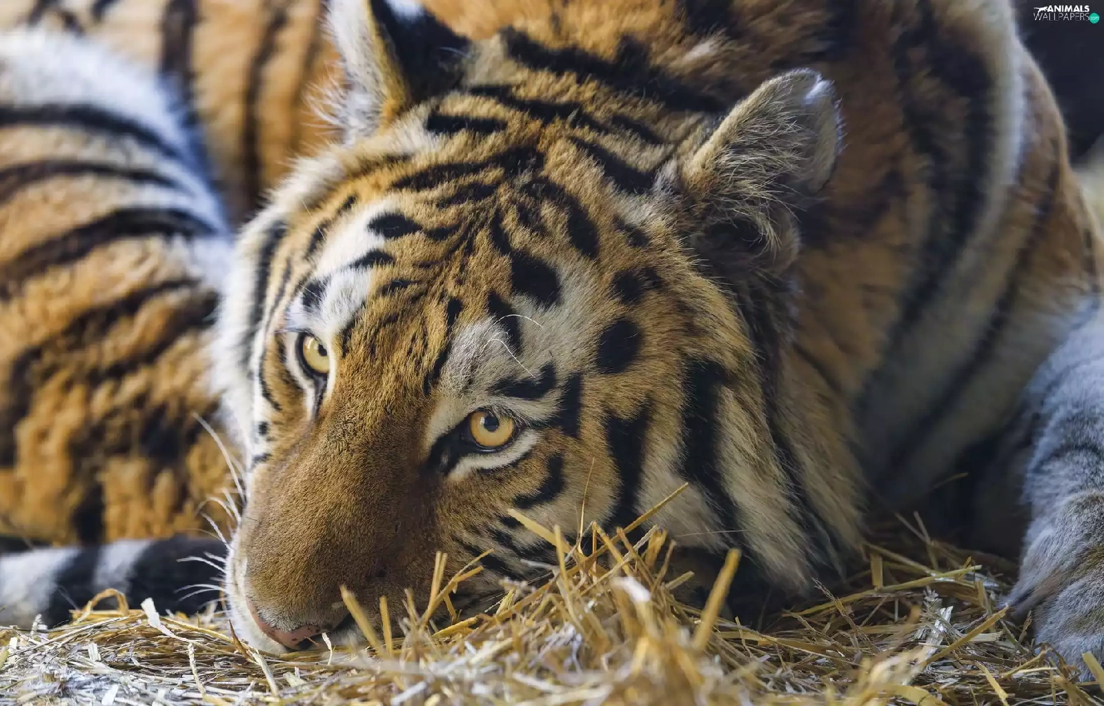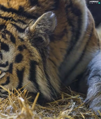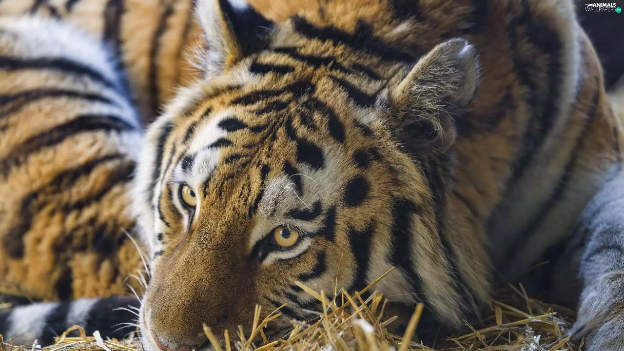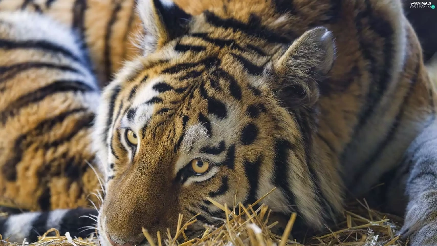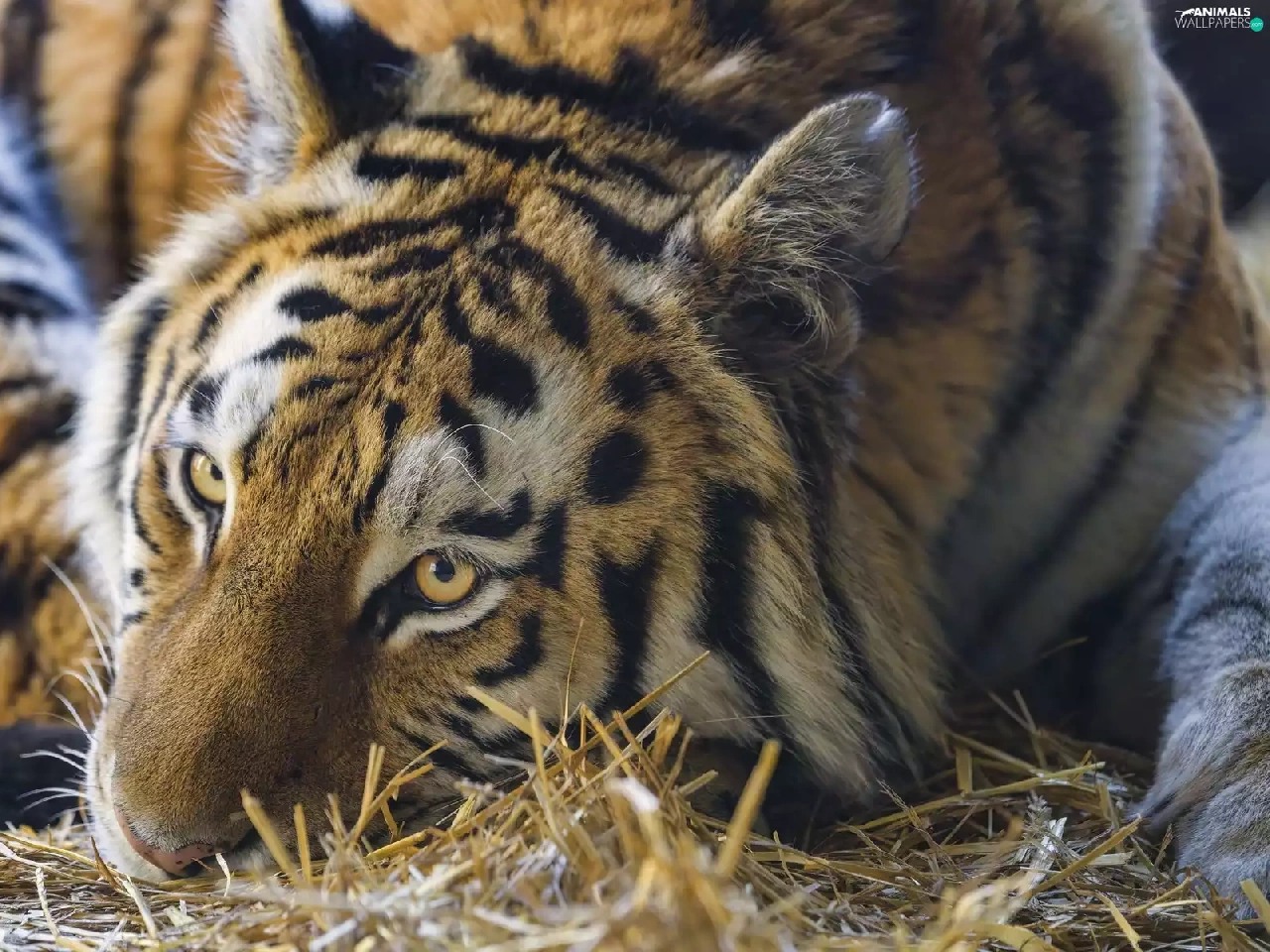 grass, dry, lying, Drapieżnik, tiger