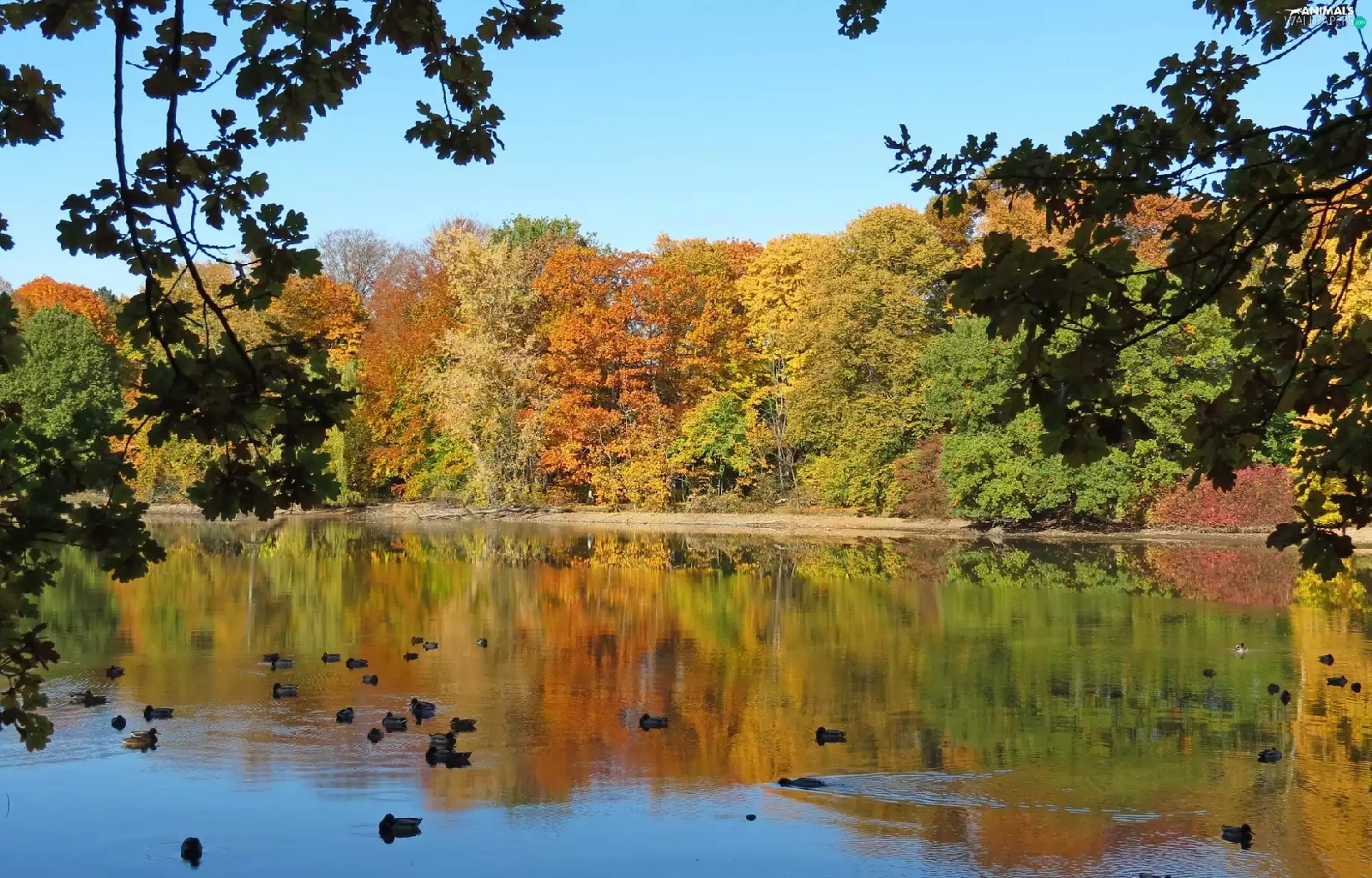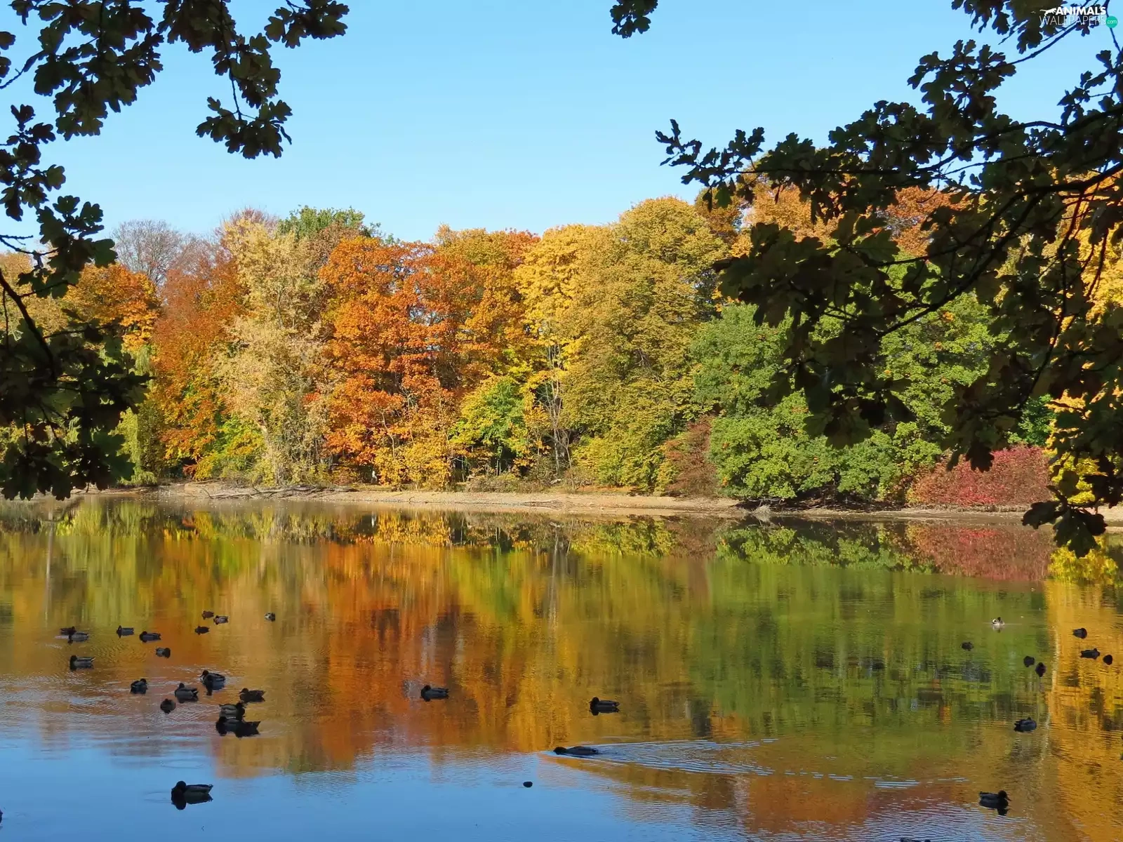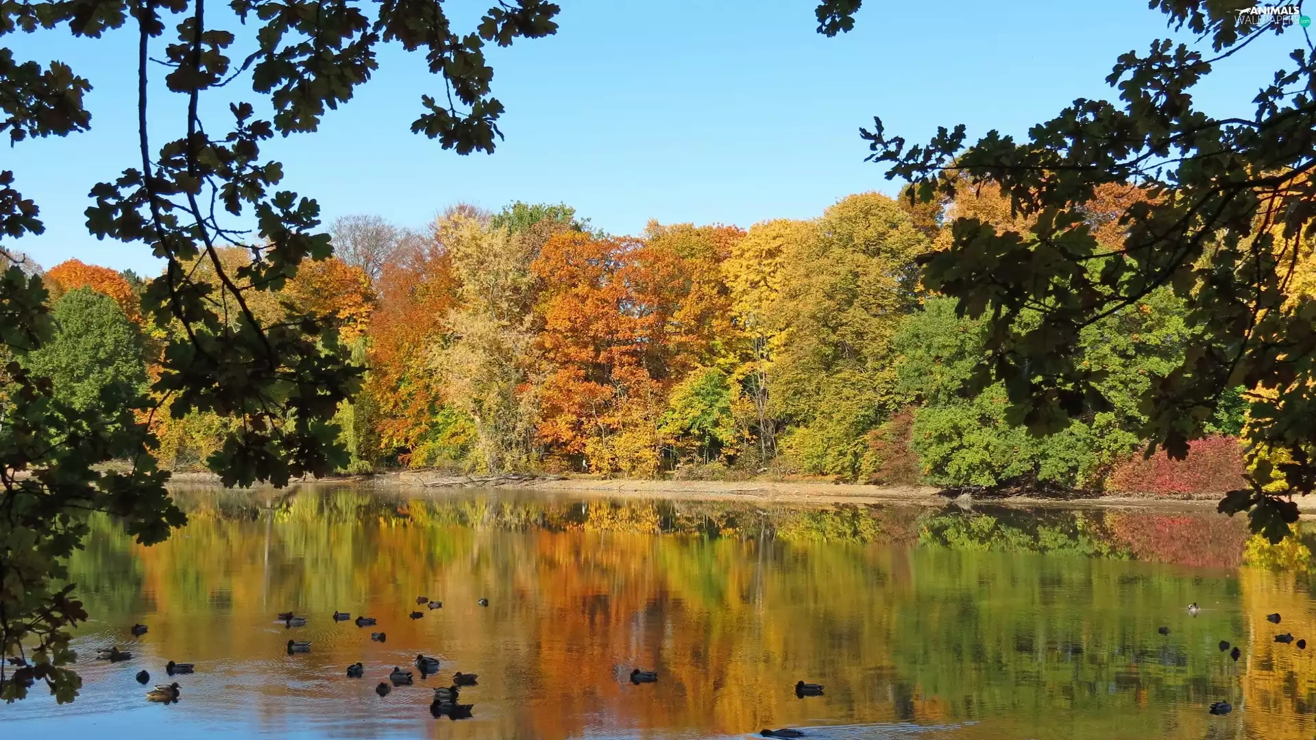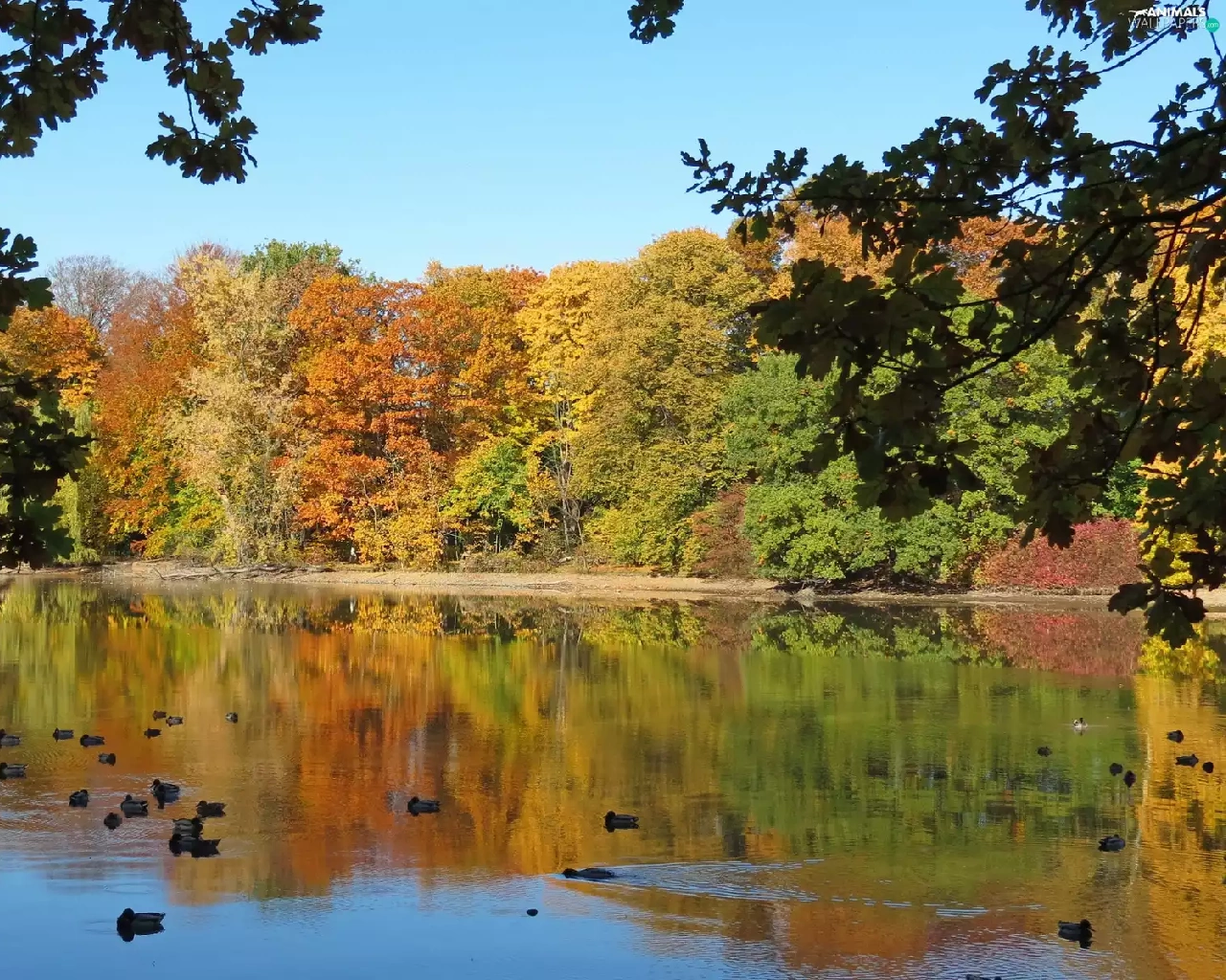 Park, ducks, autumn, Pond - car