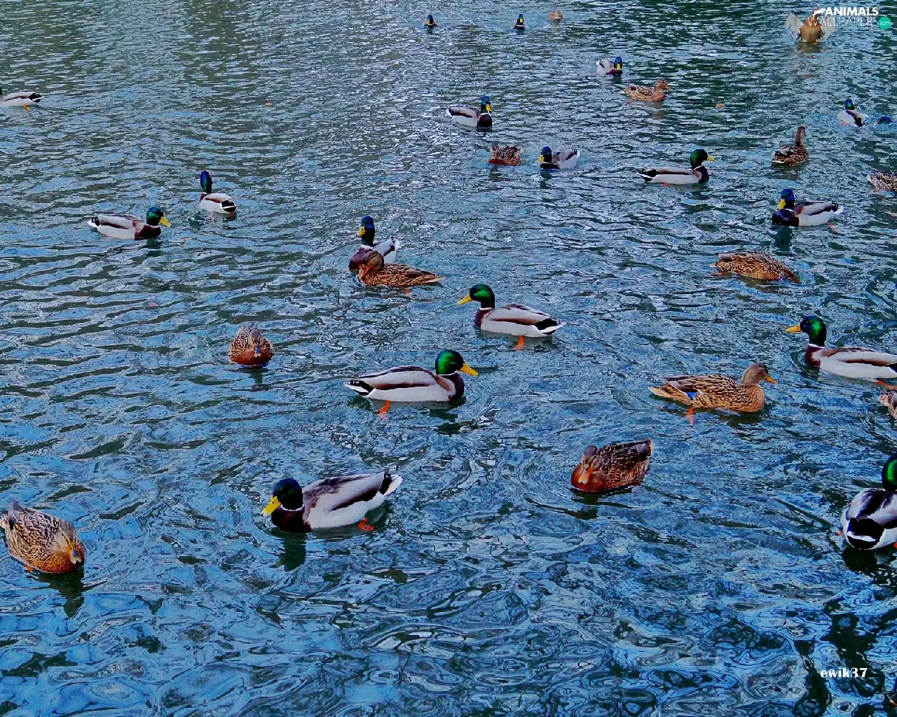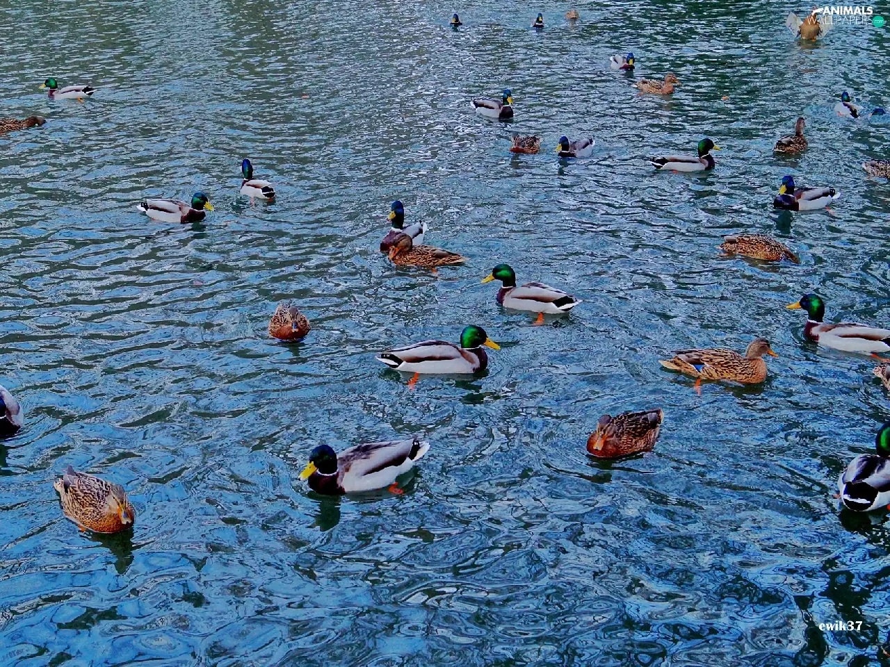 ducks, Pond - car, Ducks