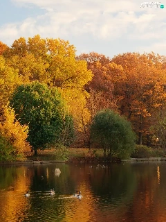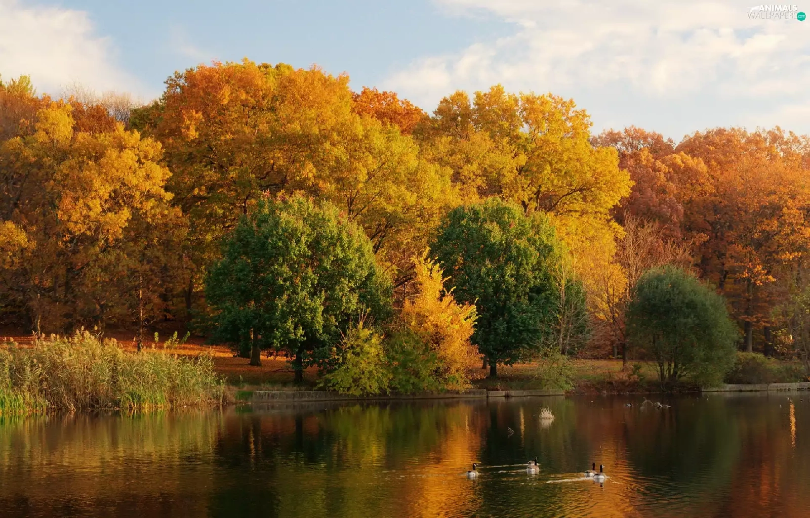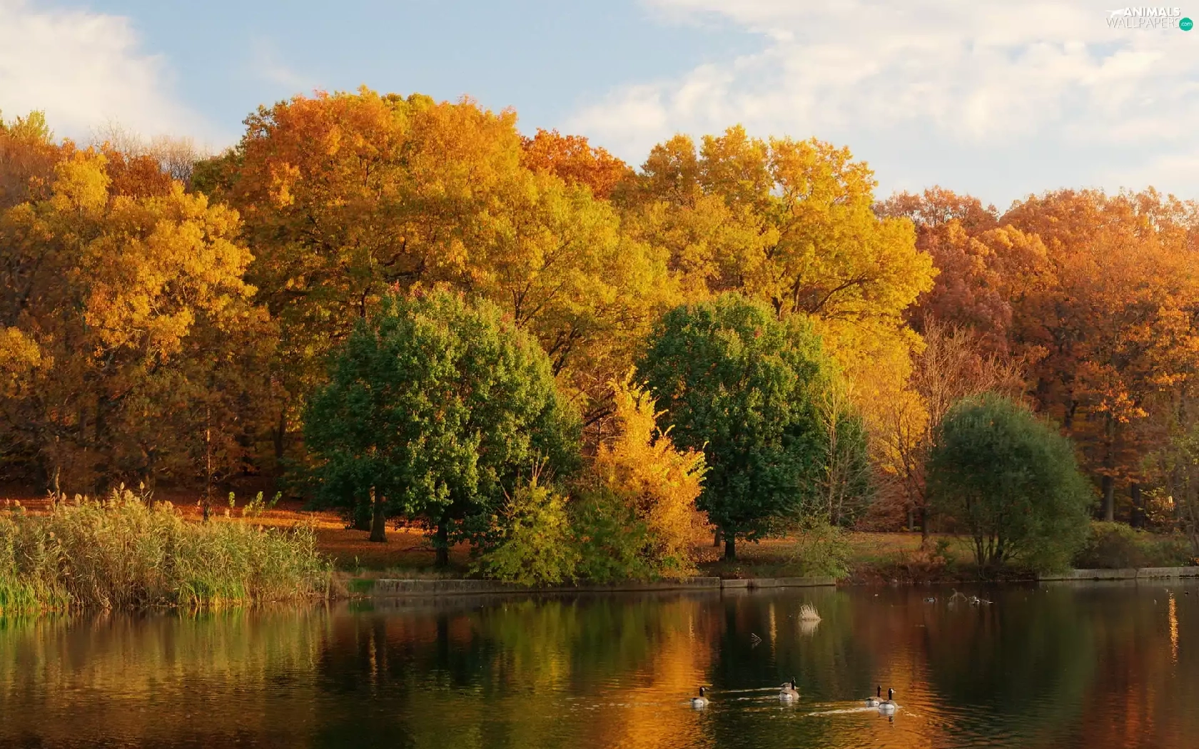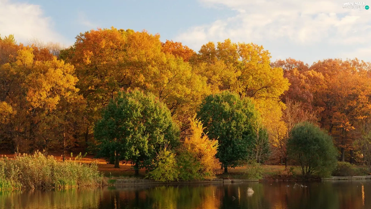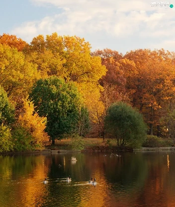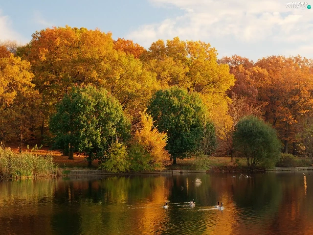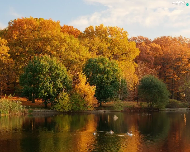 lake, Park, autumn, ducks