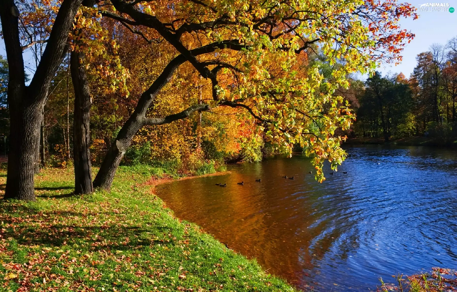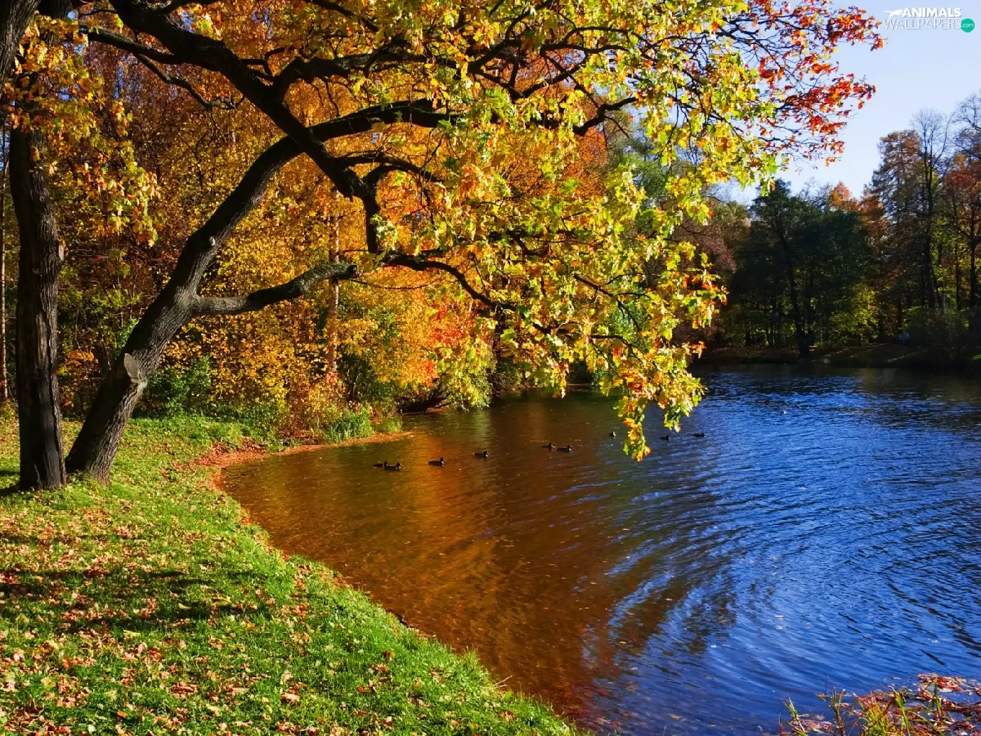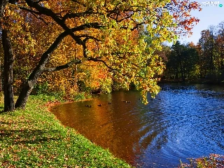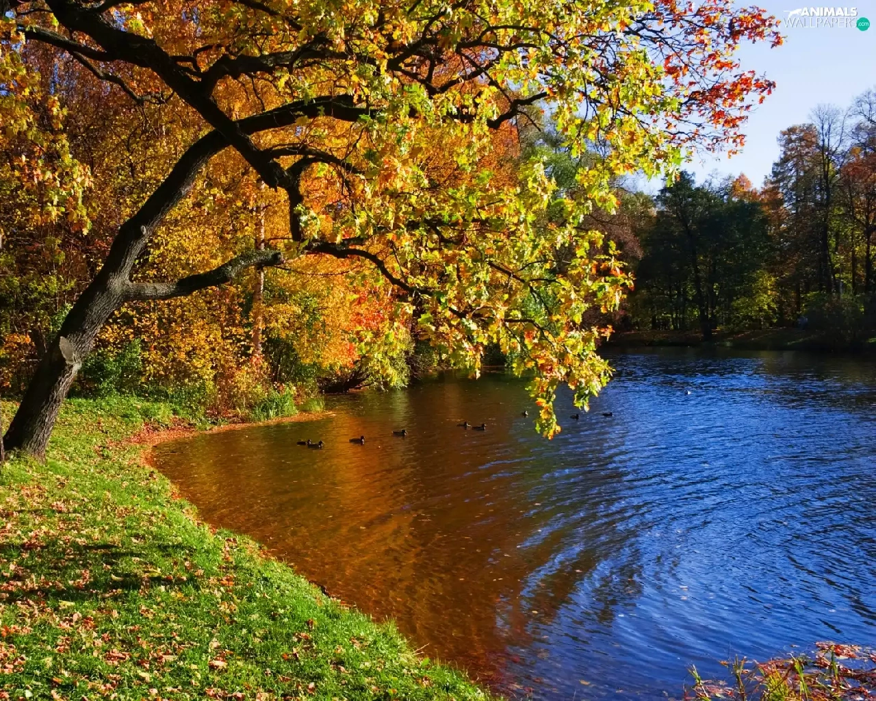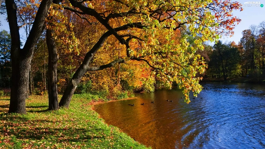 River, Park, autumn, ducks