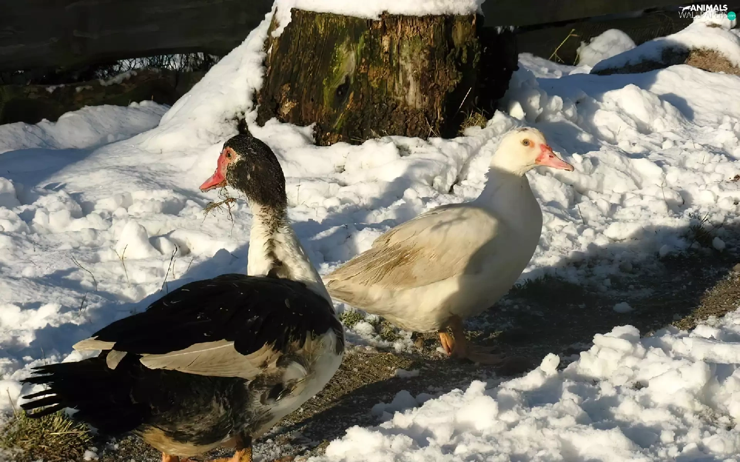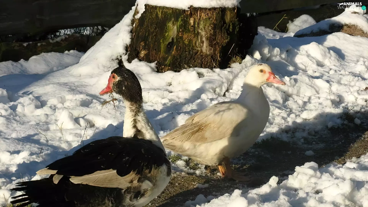 ducks, snow