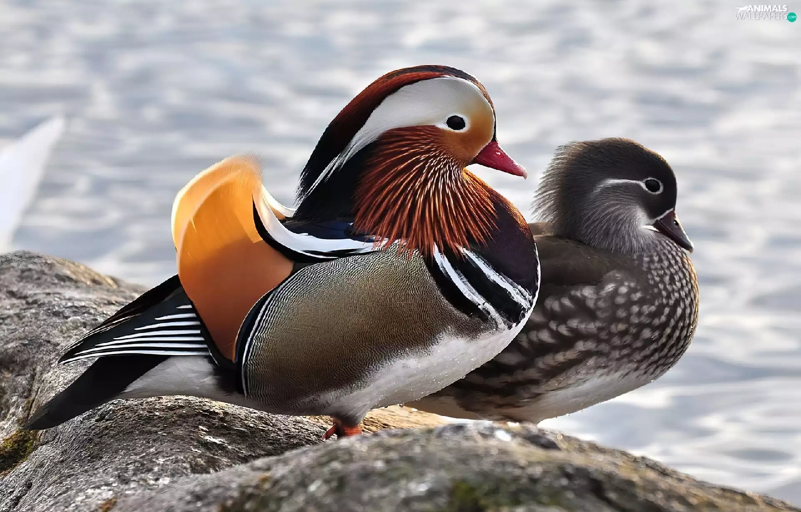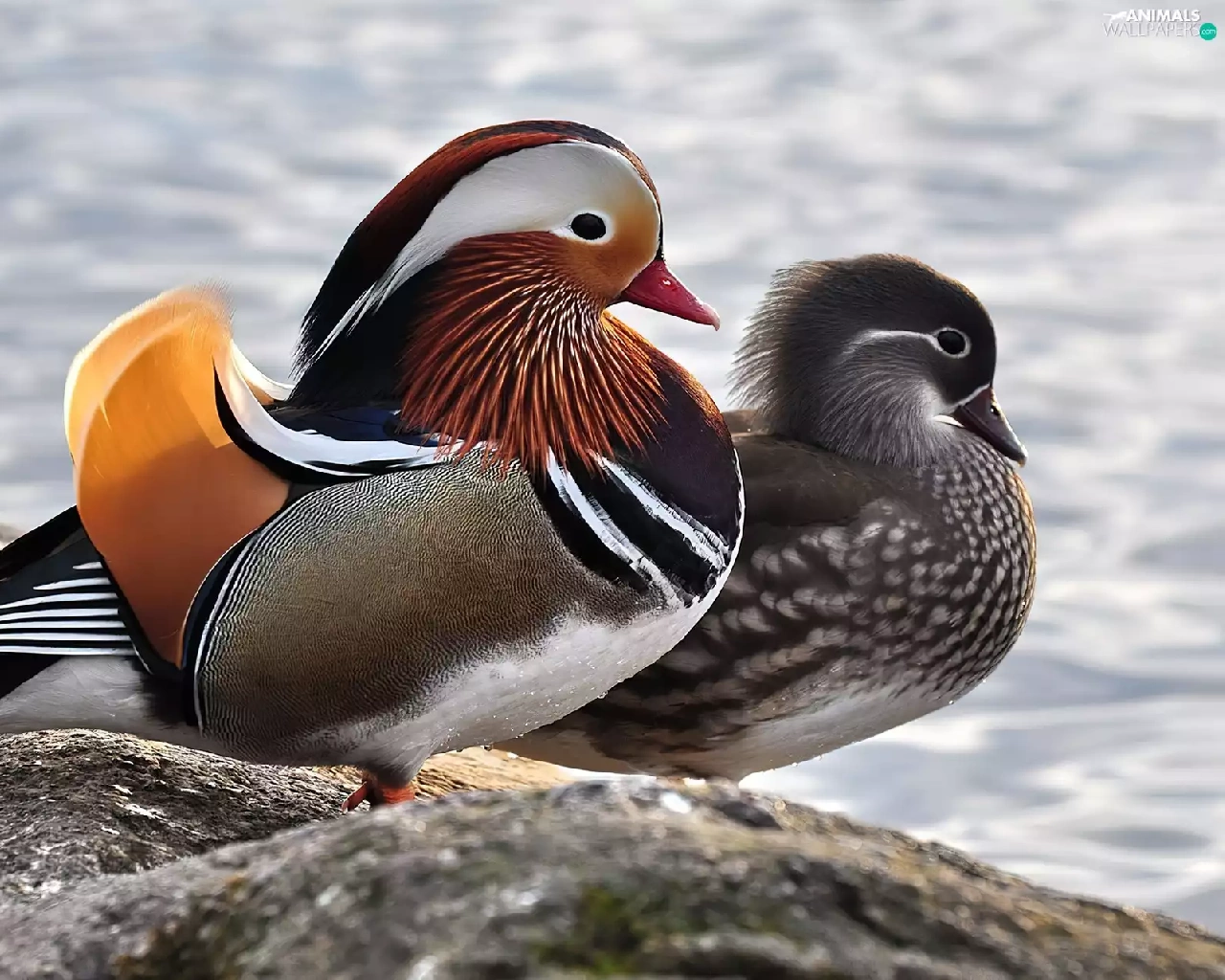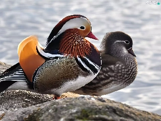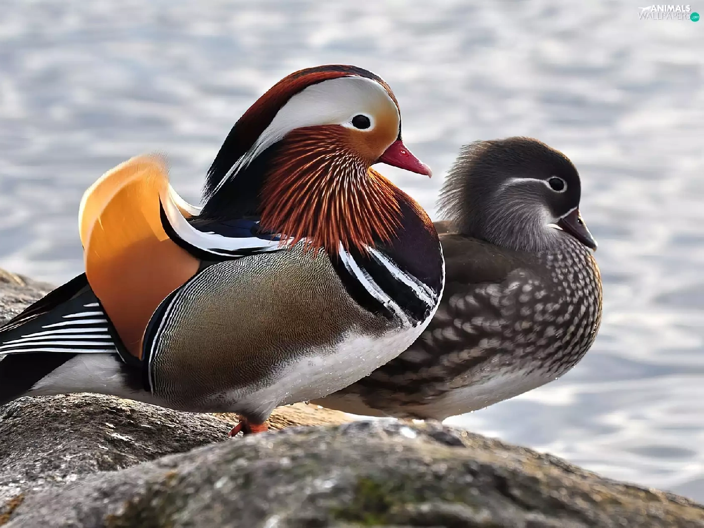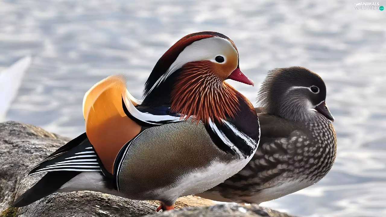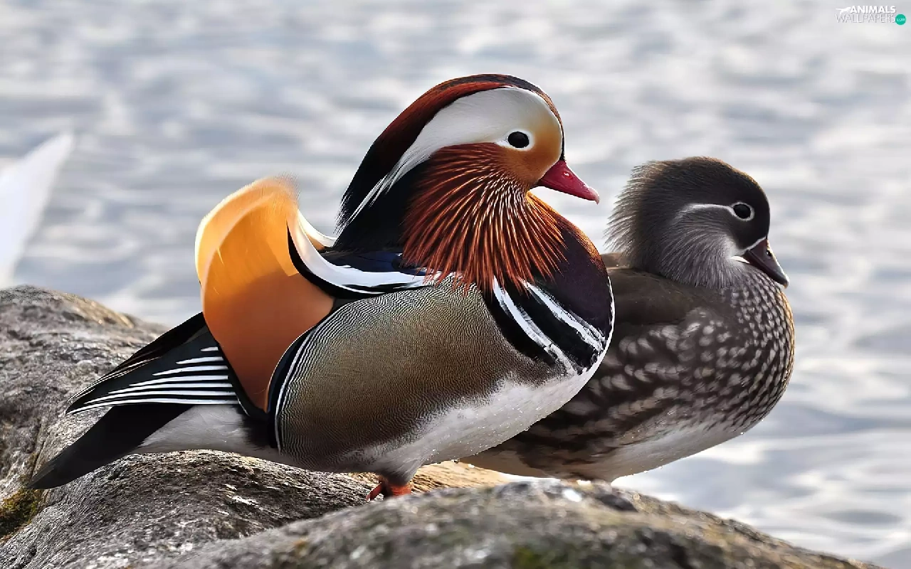 Two, Mandarin, Rocks, ducks