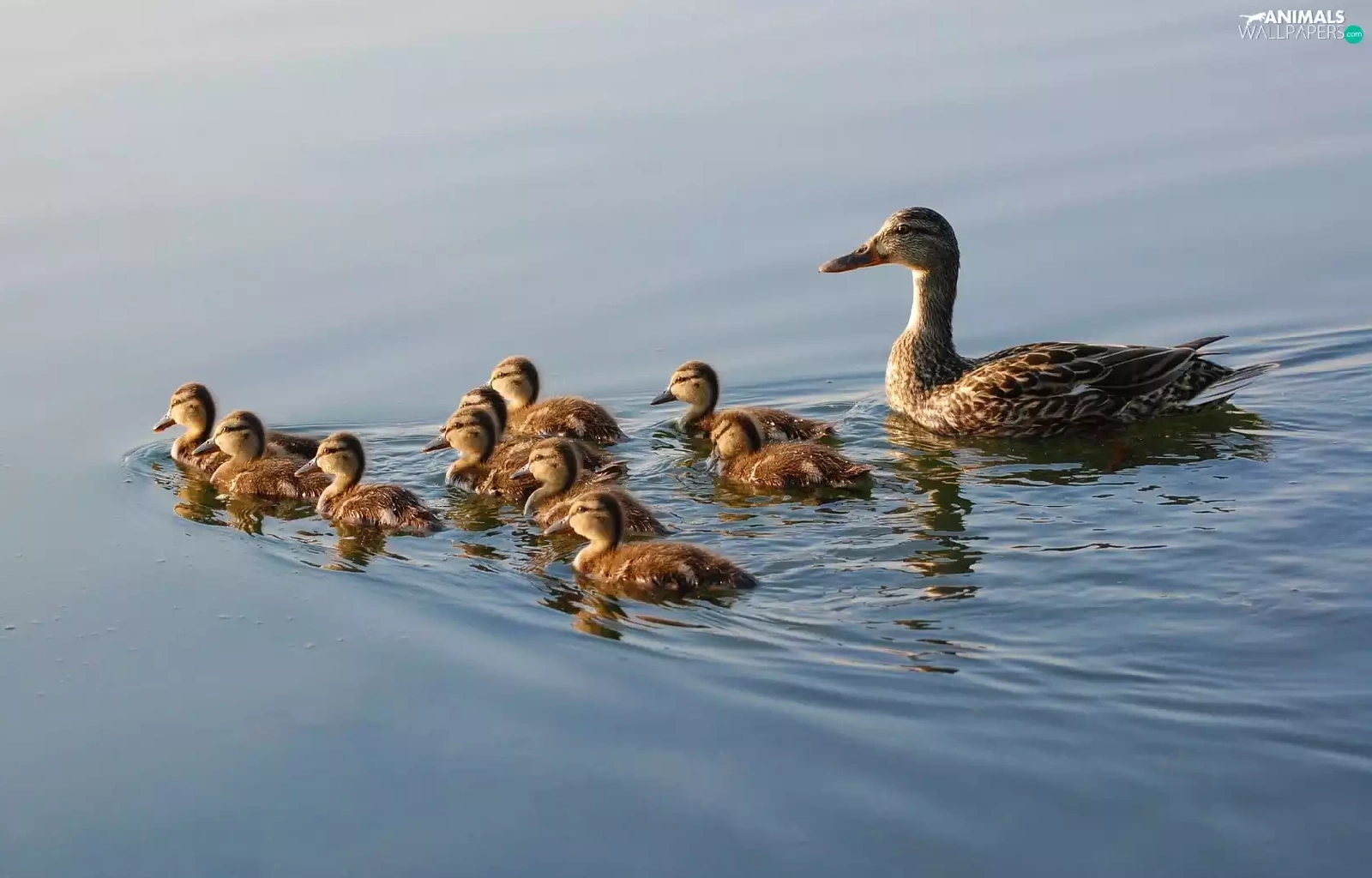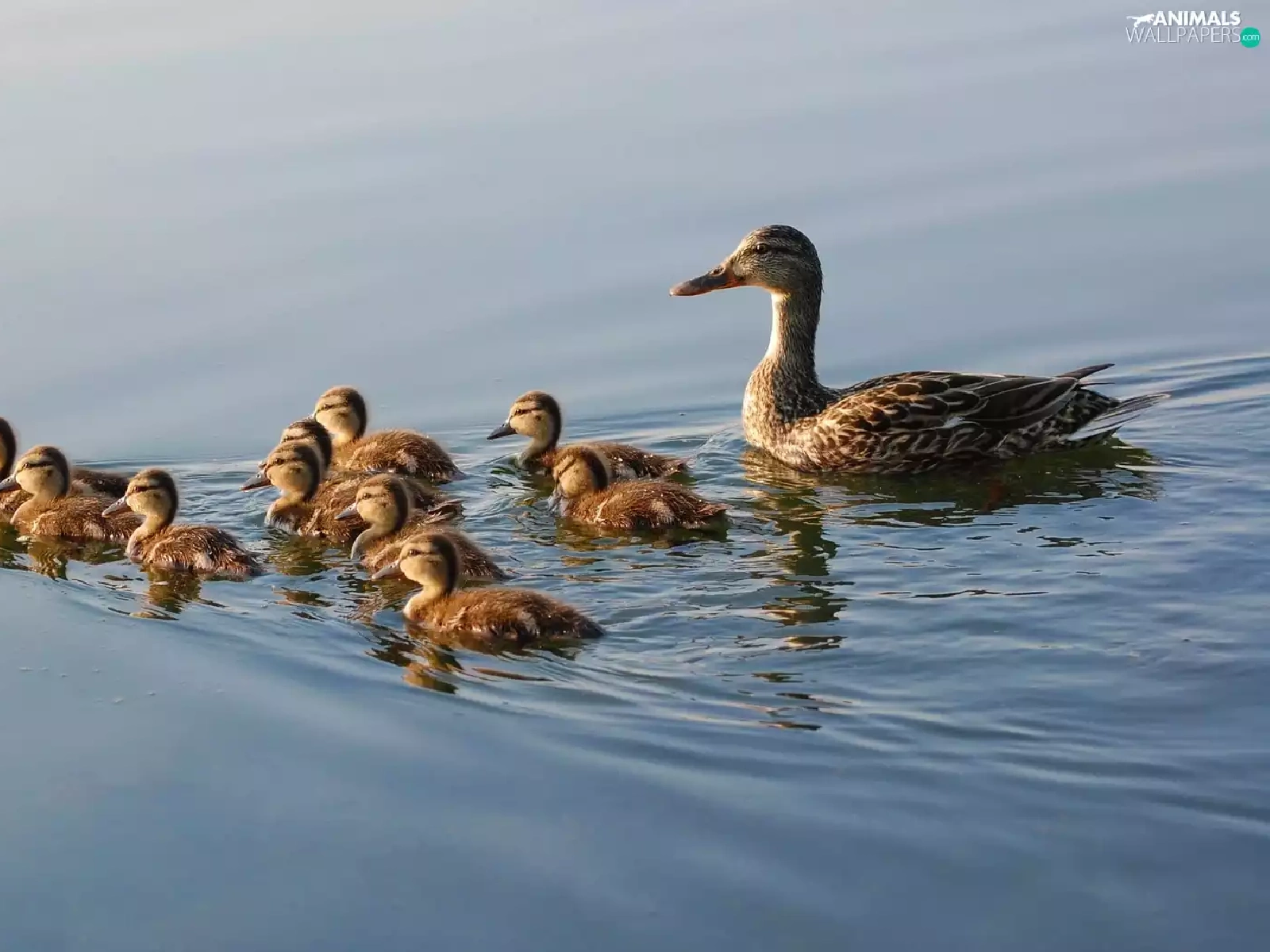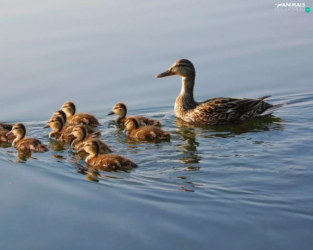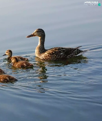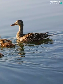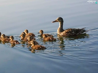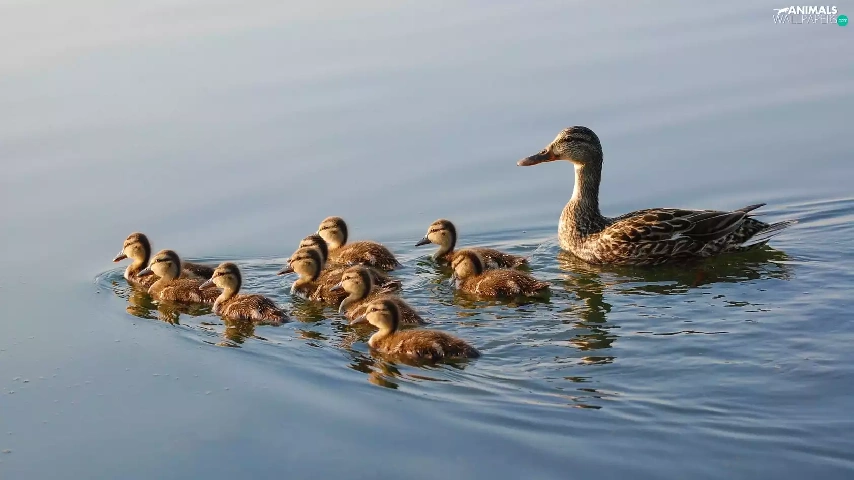 young, mother, water, ducks