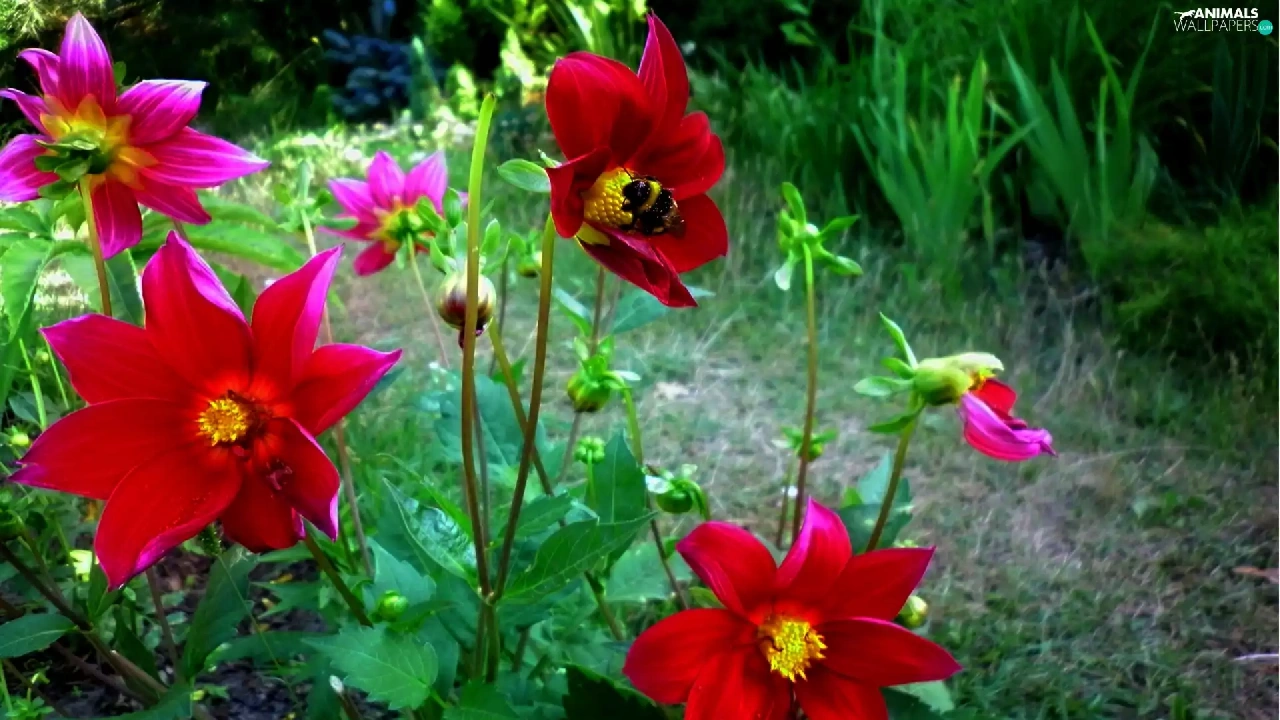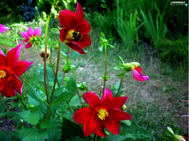 dumbledor, Red, dahlias