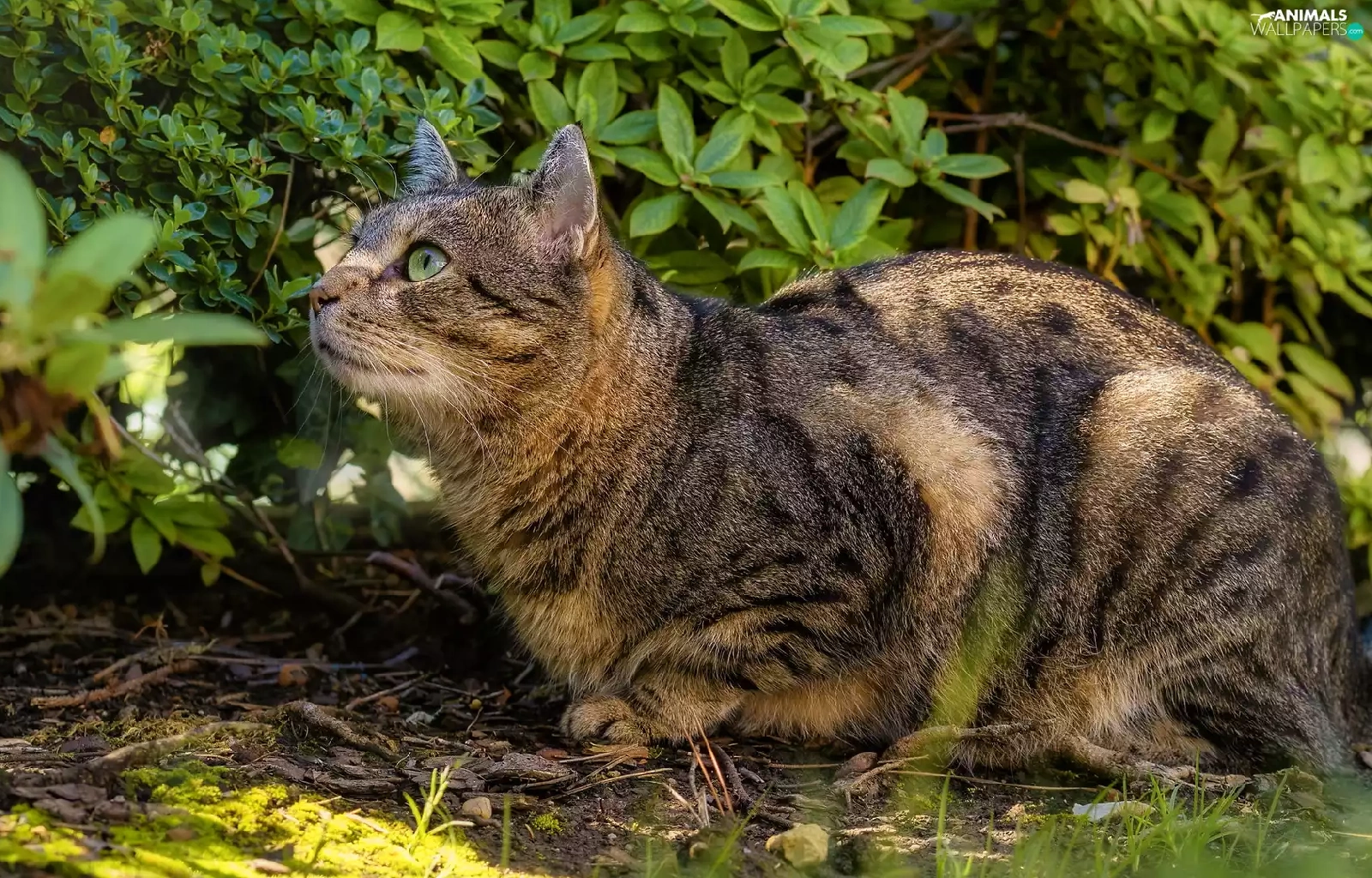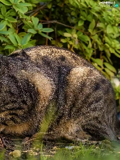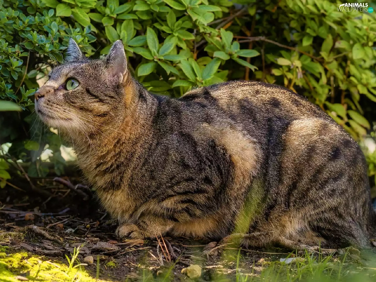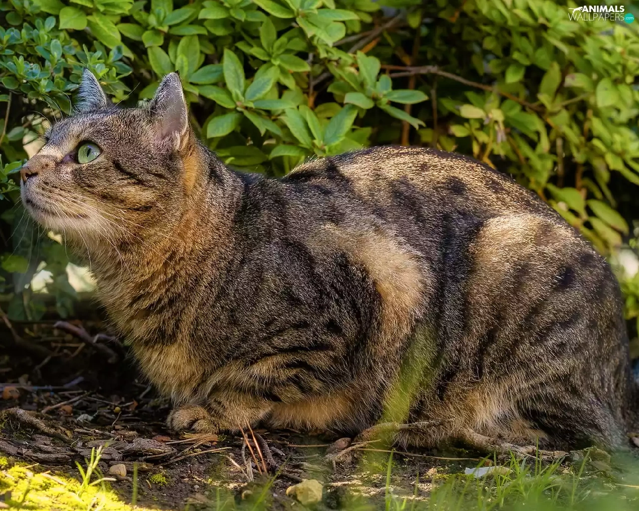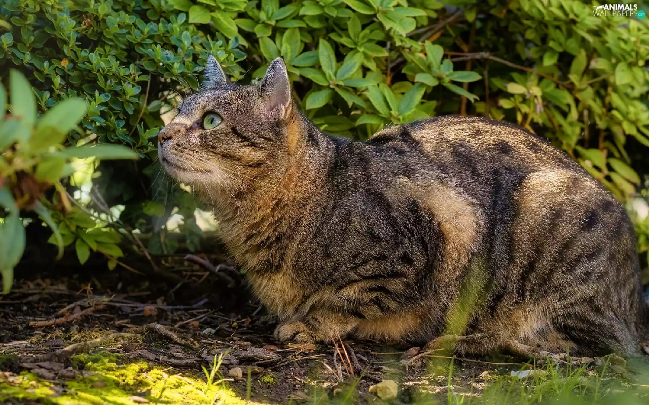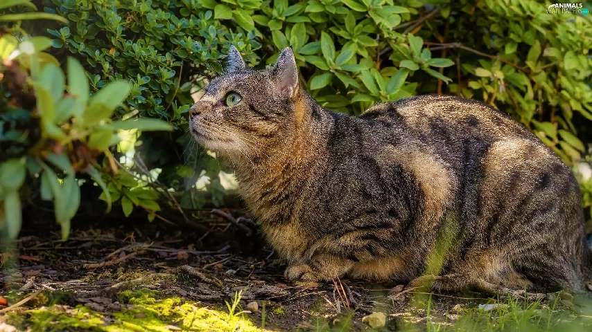 gazing, cat, Bush, dun