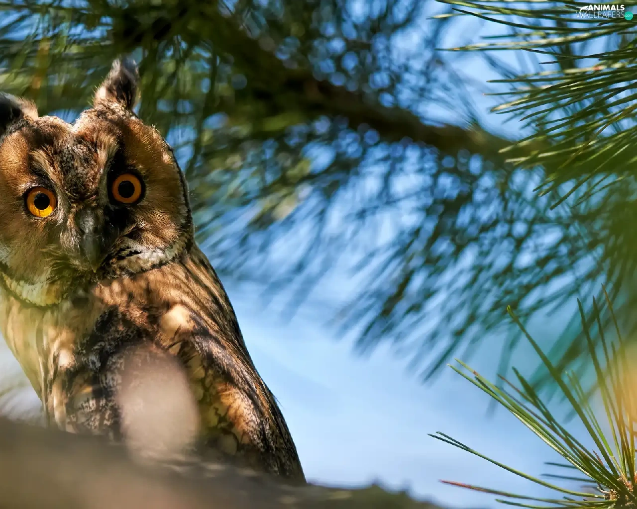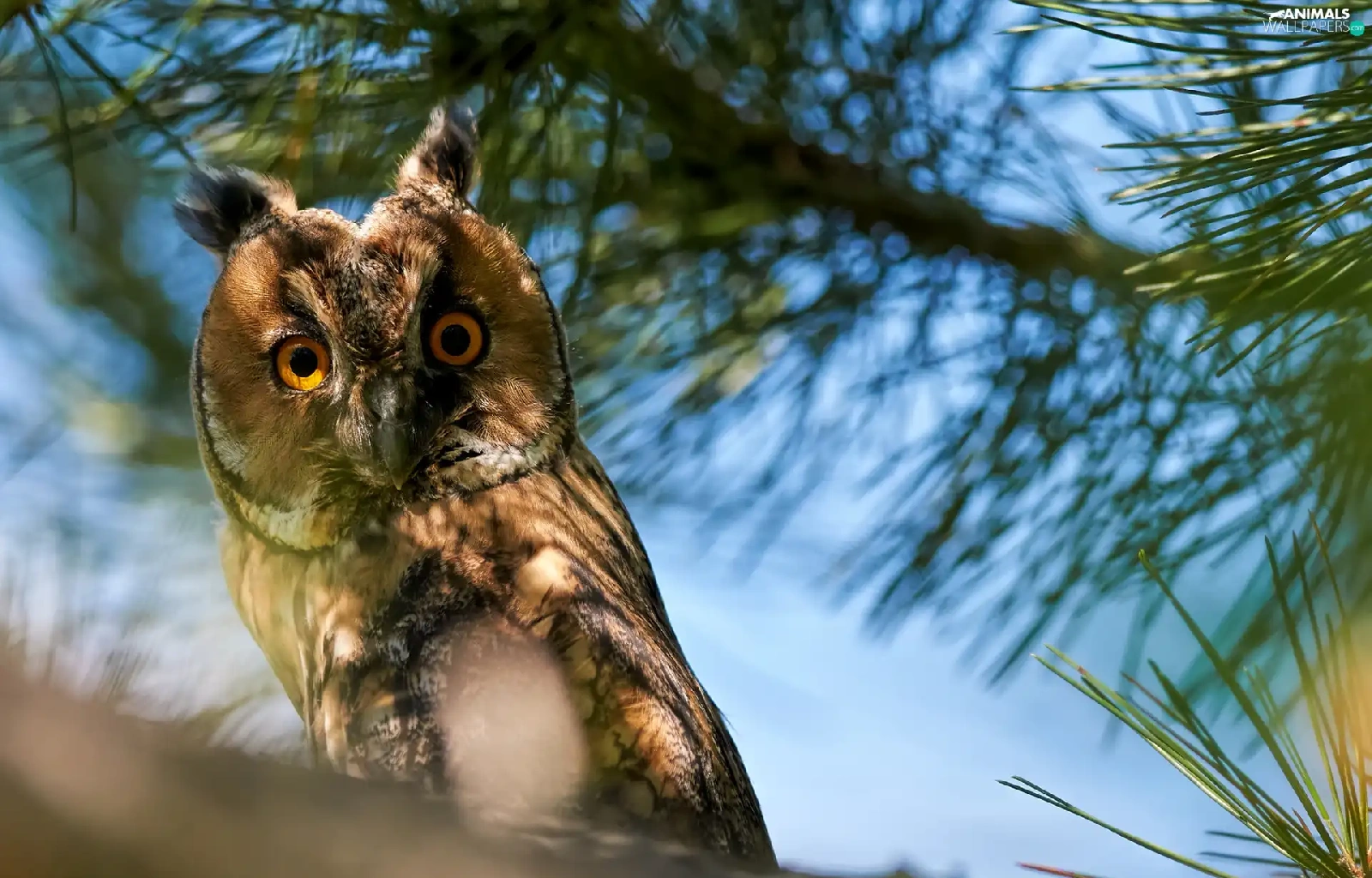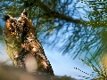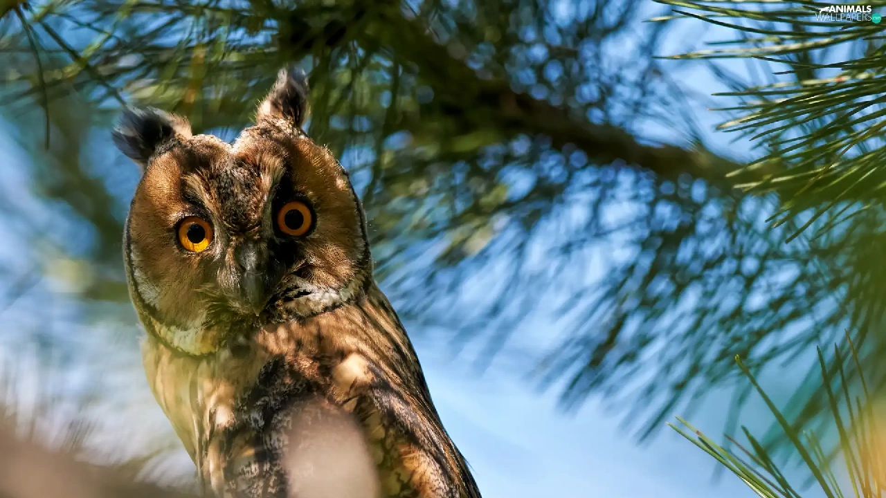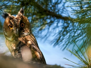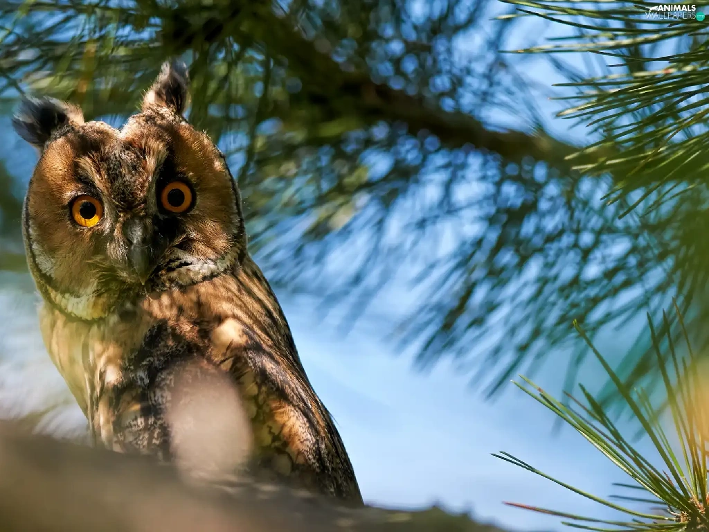 Twigs, pine, owl, eagle-owl, Bird
