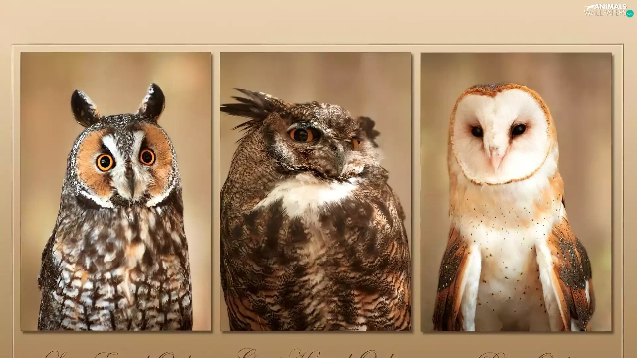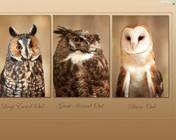 eagle-owl, Barn Owl, Owls, Long-eared Owl, Three