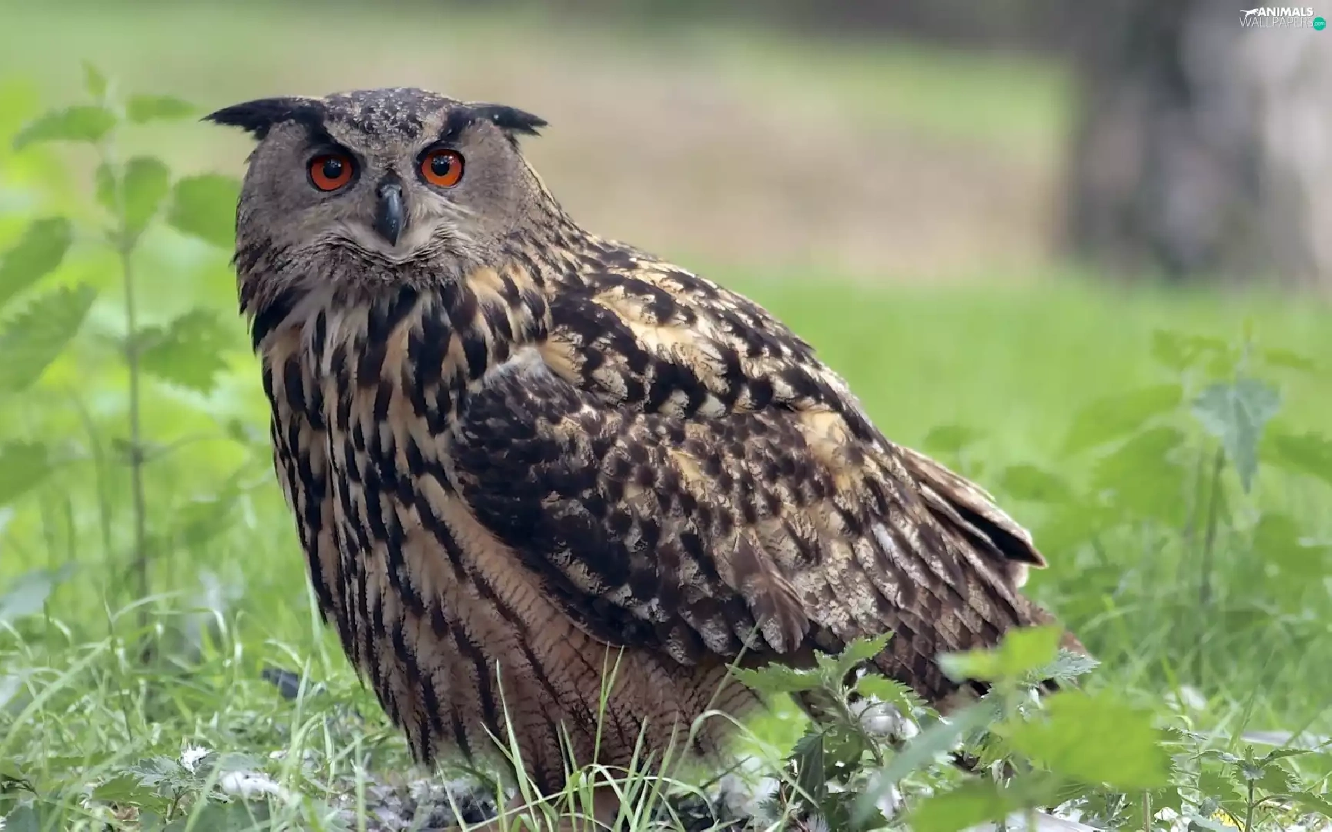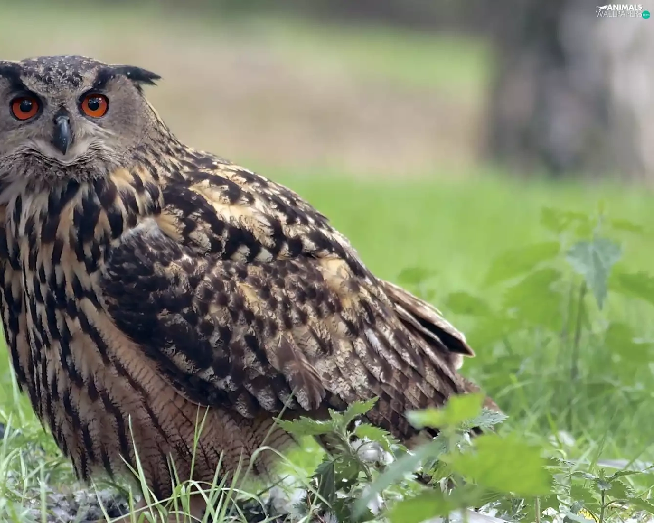 eagle-owl, grass