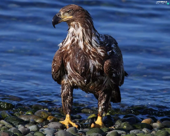wet, water, Stones, eagle