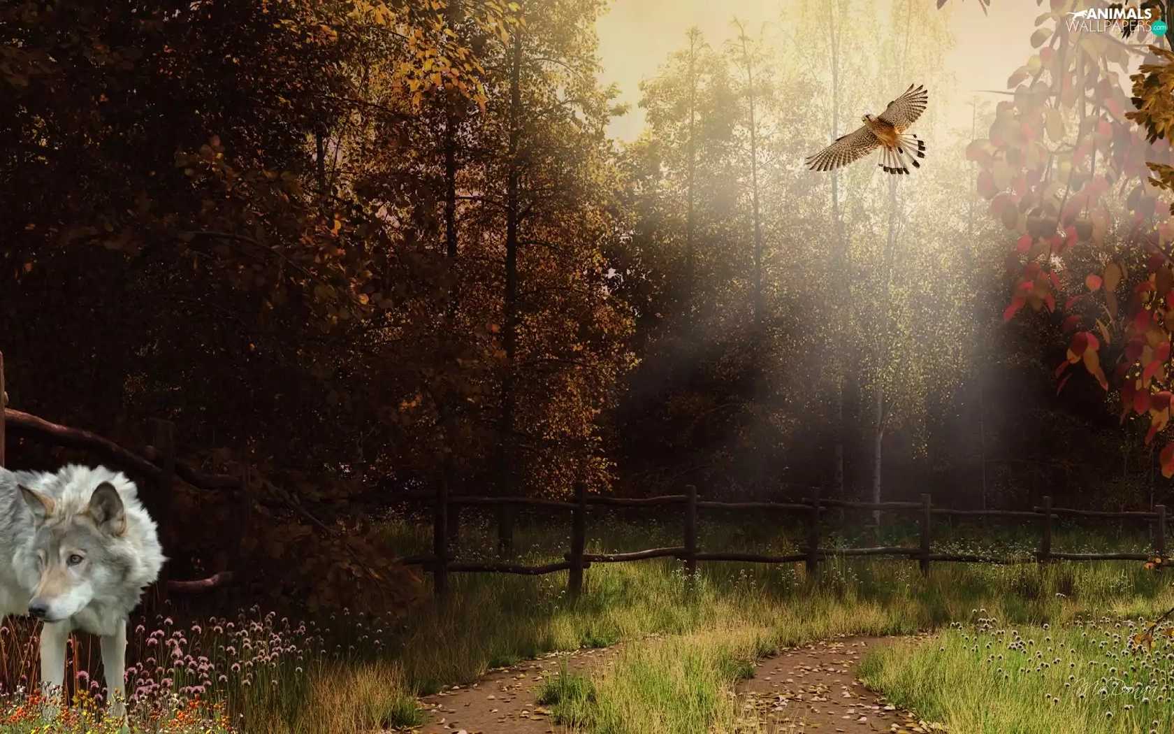 Wolf, trees, viewes, eagle