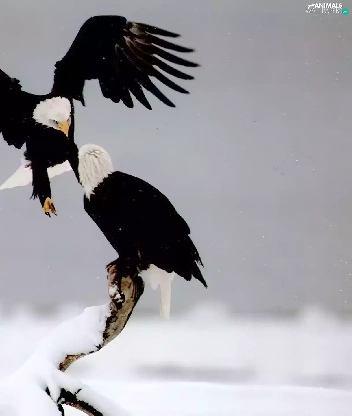 Two cars, Bald Eagles