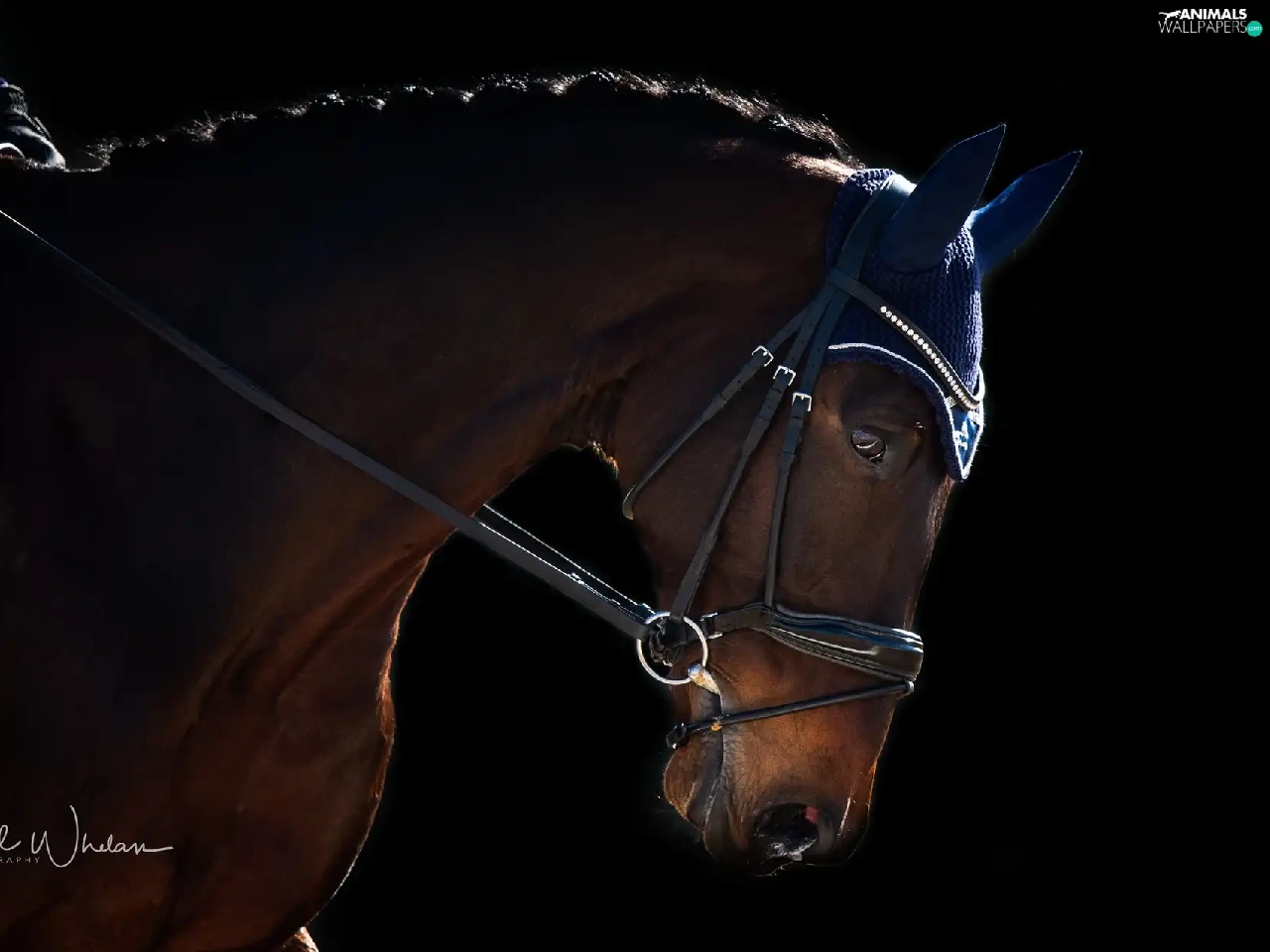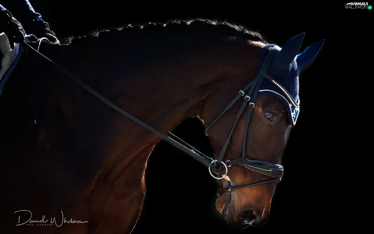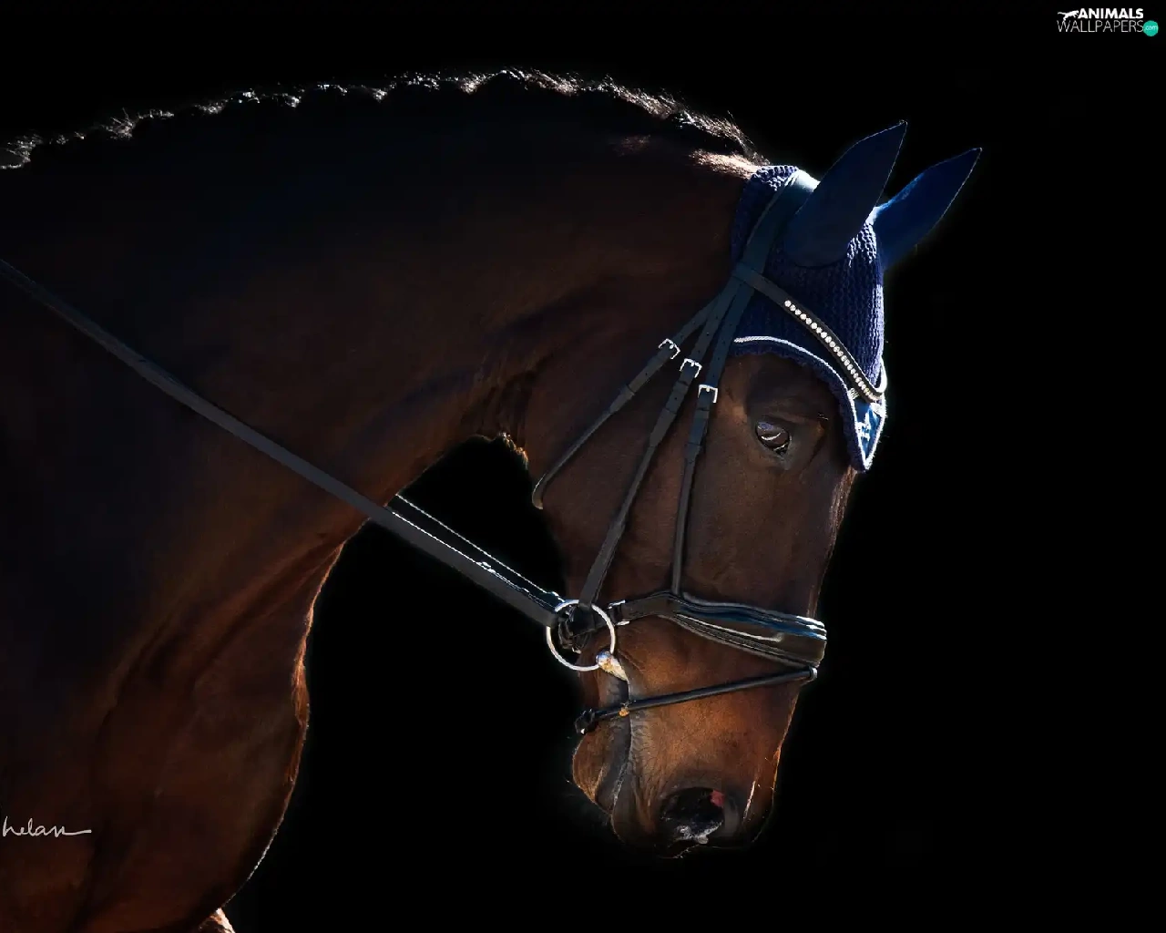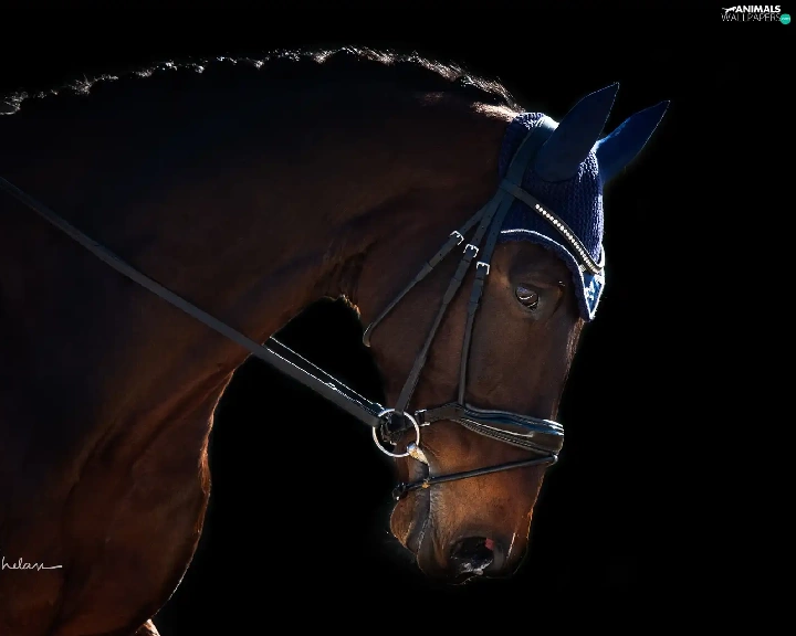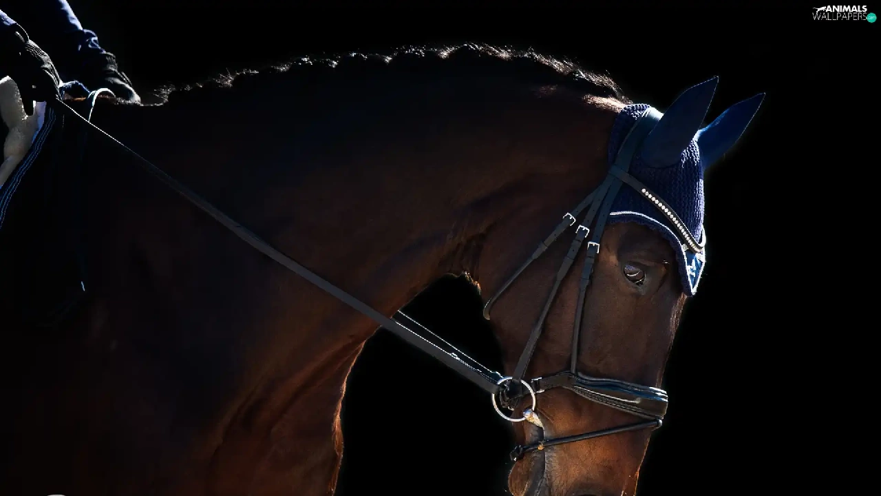 Black, background, gear, ear-piece, Horse
