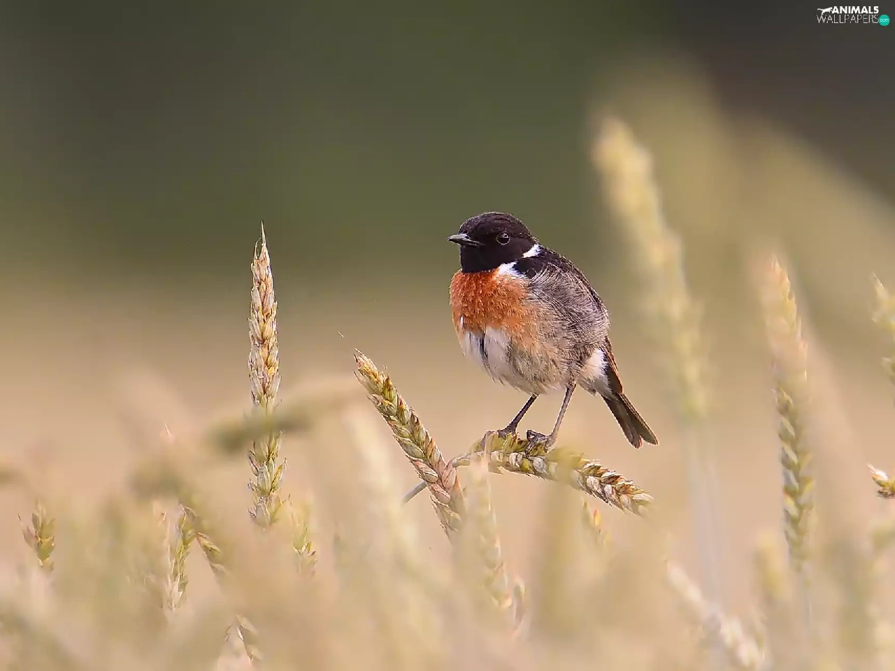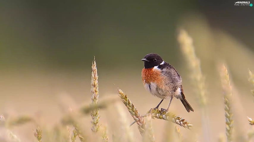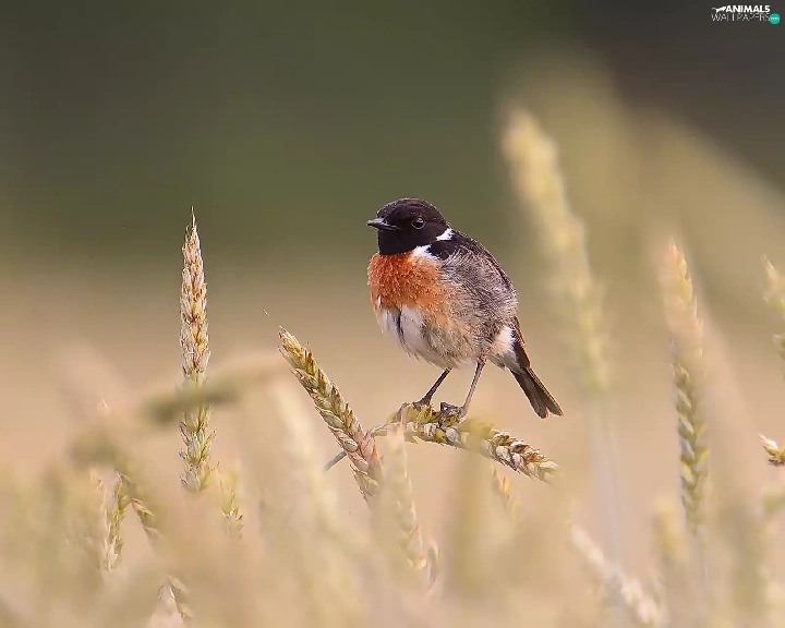 Bird, Ears, cereals, European Stonechat