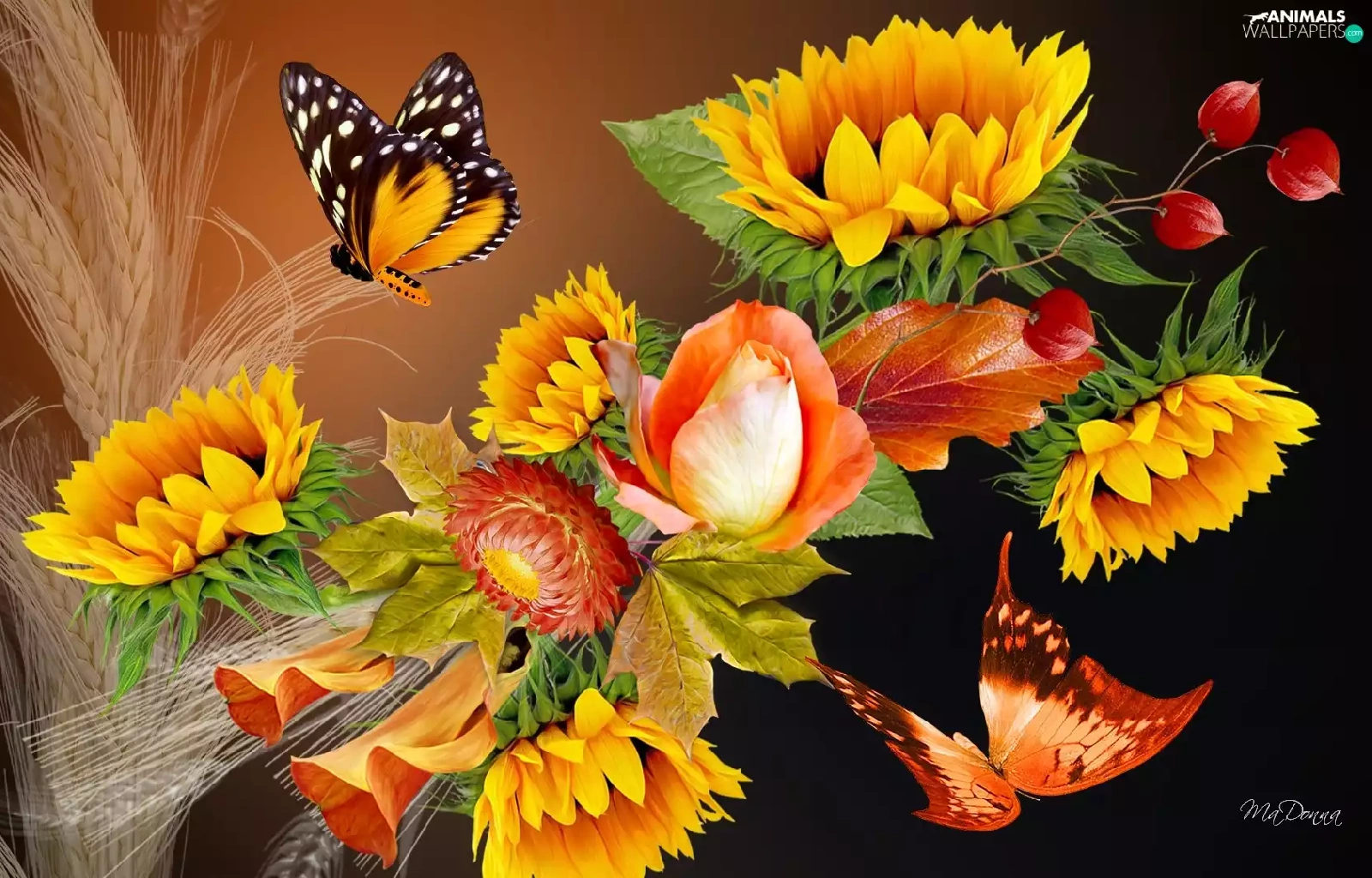Flowers, cereals, butterflies, Ears