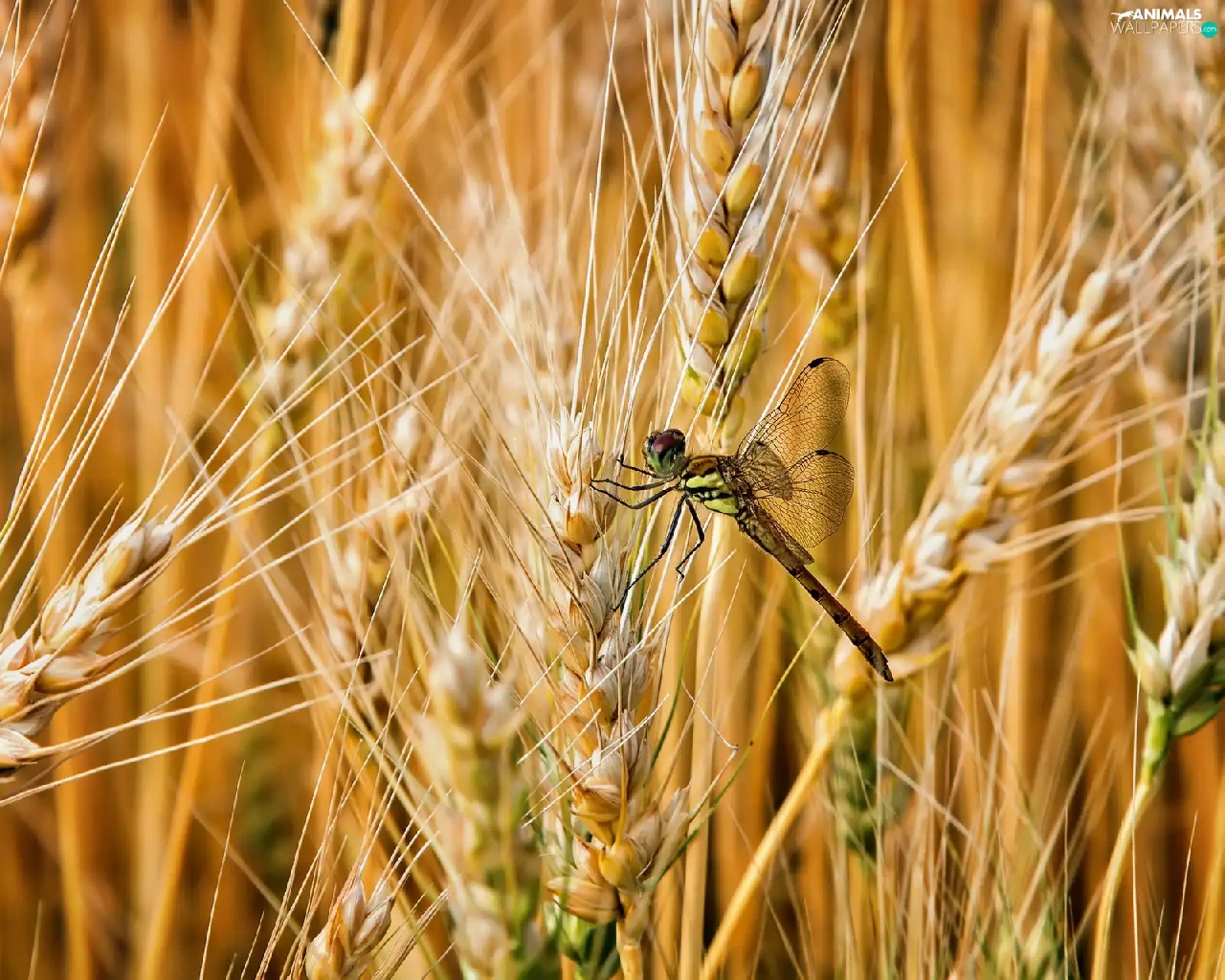 dragon-fly, corn, Ears