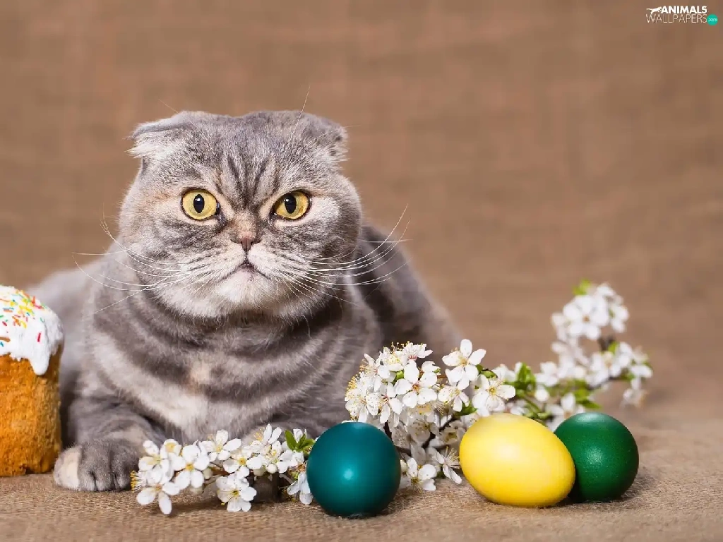 Scottish Fold Cat, Easter Cake, Easter, eggs